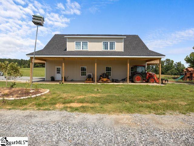 Find your 26.68 ACRES, down a LONG GRAVEL DRIVE, overlooking a POND with DOCK in Campobello - GATED DRIVE for privacy -You willfind yourself enjoying the outdoors, with space enough for horses, cattle, goats or any animals that you choose - Perfect for riding dirt bikes, golfcart, four wheelers - Plenty of room to expand and enjoy - This one of a kind property has space for roaming - The home was designed withfarm life in mind - The BARNDOMINIUM has an almost full UNFINISHED LOWER LEVEL that was built for addition of several horse stalls - Thefinished area downstairs, houses the perfect full bath that is heated/cooled for outdoor enthusiasts to shower - Upstairs you will find tastefullydecorated and well thought out floor plan - The OPEN DEN, KITCHEN, BREAKFAST area has plenty of natural light and views of your oasis -The fireplace, light fixtures, WALK IN PANTRY in the kitchen, LARGE ISLAND ,STAINLESS appliances, backsplash, are all eye catchers -Microwave drawer - Quartz counter tops - Kitchen Aide- FARM SINK - Two spacious spare bedrooms have ample closet space and share a hallbath - Sizeable Primary suite has HIS AND HER walk in closets, private deck, Laundry and a glamorous full bath - Two sink vanity, gold trim,ceramic shower, toilet closet - the Laundry has utility sink - HIGHCEILINGS - WATER FILTRATION - 18X25X10 EQUIPMENT CARPORT forTractor, etc. - Only minutes to I26, to Highway 9 - ALL THIS AND SO MUCH MORE - A MUST SEE TO APPRECIATE!