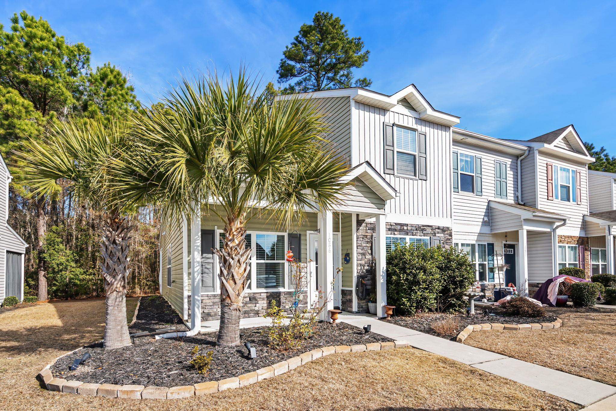 An exceptionally maintained 3-bedroom, 2.5 bath, end unit Townhouse located at The Diamond community in Myrtle Beach. Situated on a quiet cul-de-sac, the heart of the home opens to gleaming hardwood floors in the living room that shine upon entering, into this bright unit which proceed to sliding glass doors to a covered patio (c.8'x22') Creating an airy feel, the vaulted cathedral ceiling in the living room flows to the kitchen, which features pristine granite countertops with Birchwood cabinetry complete with custom ceiling crown moulding; tile flooring and recessed lighting in the kitchen with all S/S appliances conveyed that include the Frigidaire: electric range, microwave, dishwasher, garbage disposal. Notably, the Kenmore refrigerator, washer and dryer will remain. New Berber carpeting installed in the main level primary suite; stairs, hallway and additional bedrooms, including closets and storage areas. This home also boasts a laundry first floor storage closet and Green Energy Efficient windows with 2020 custom protective hurricane storm shutters. This home is located in the St. James School District. Your comfort and coastal living dream come true.