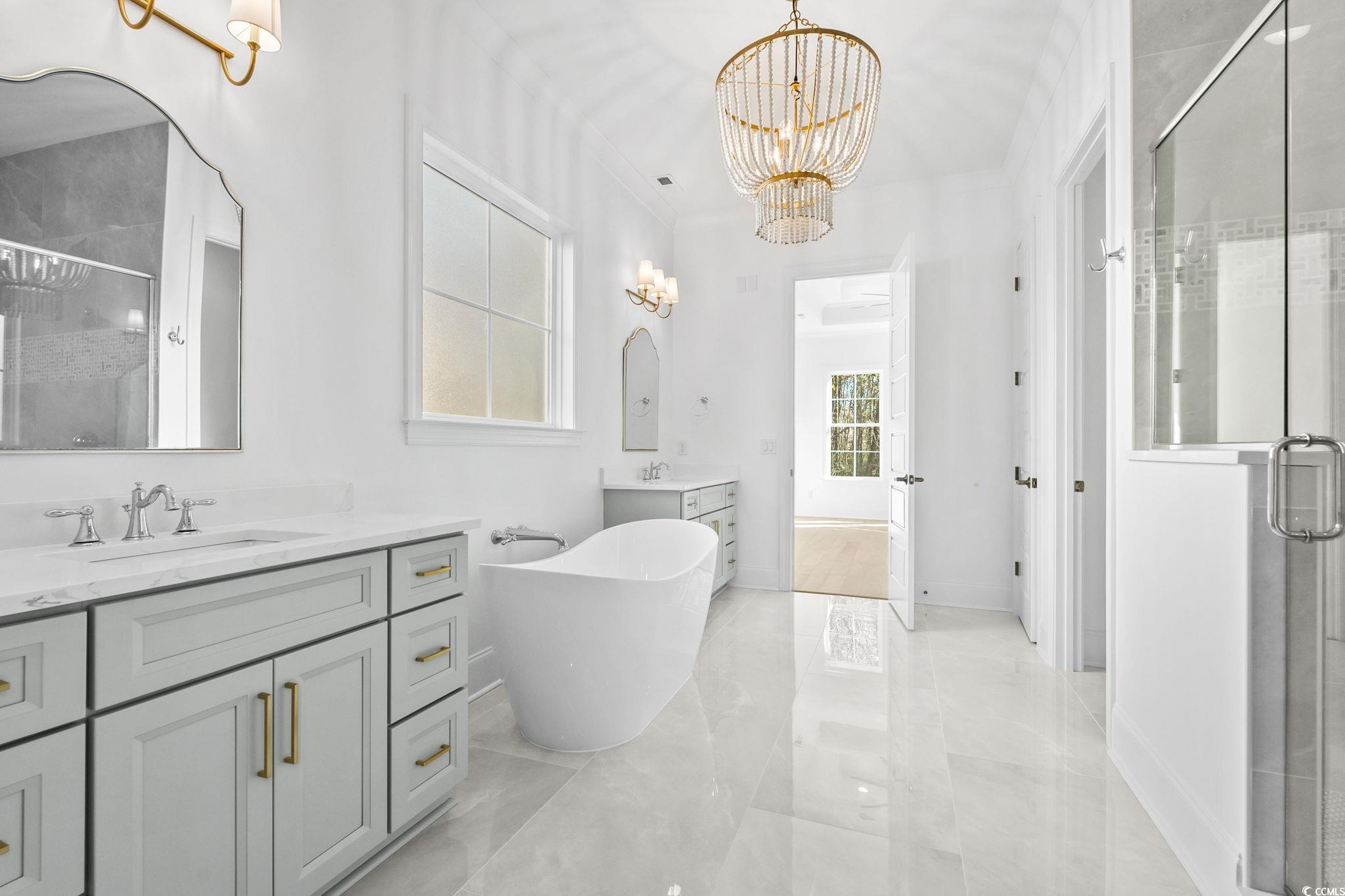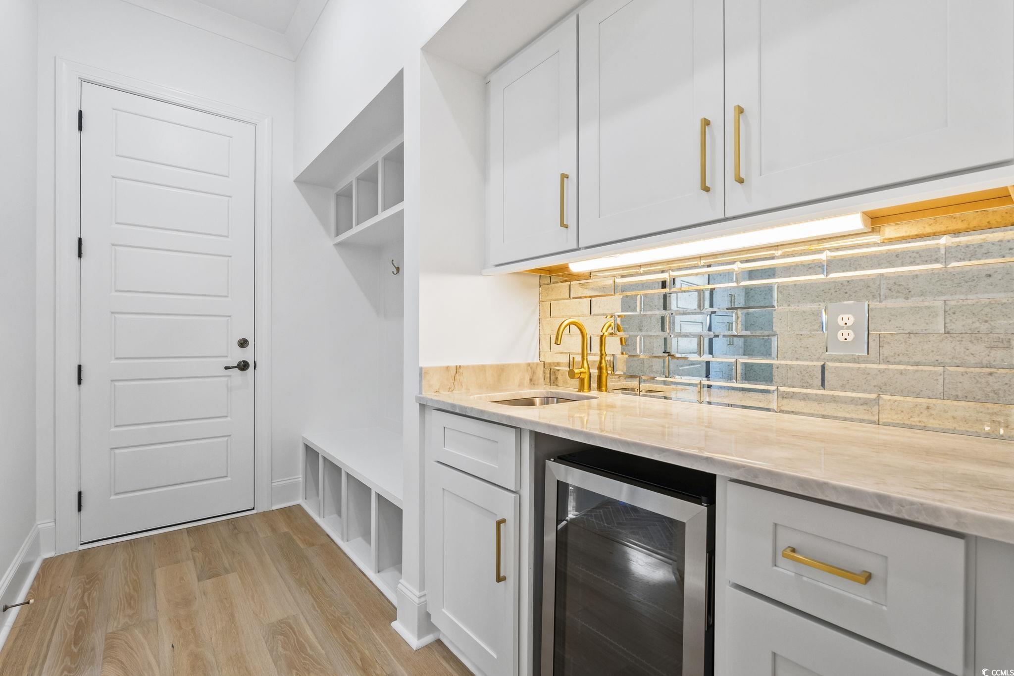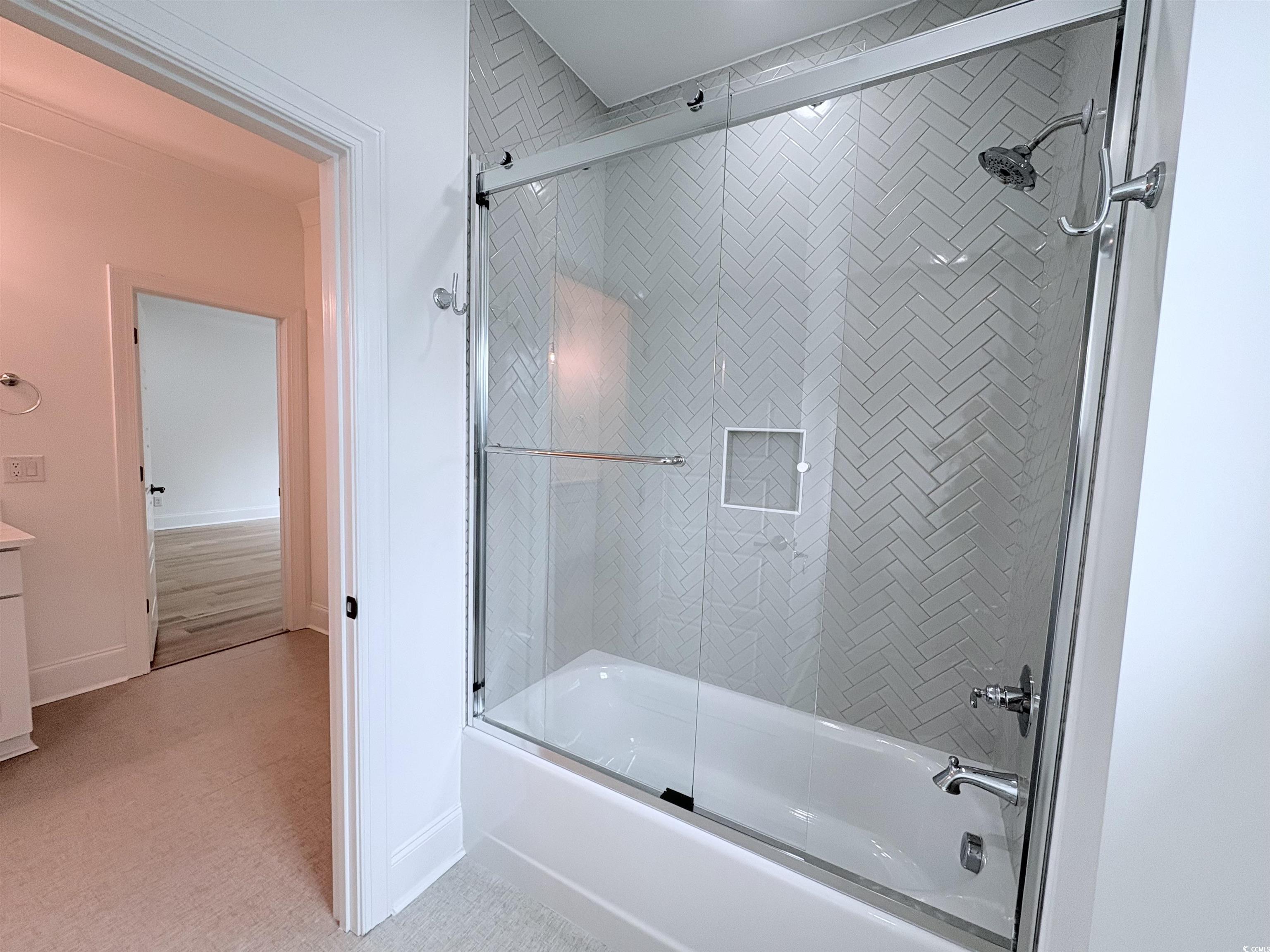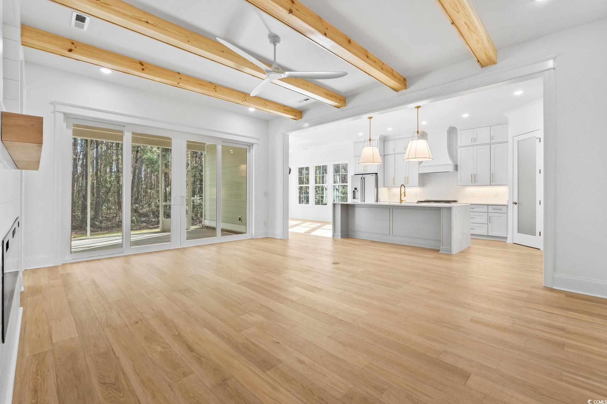 Welcome Home to this stunning 6 bedroom and 4 full bathroom home in the prestigious community of Waterway Palms Plantation. Take notice of the impeccable craftsmanship and extensive attention to detail as you tour this well thought out floor plan. A large southern porch with wood inlay ceilings greets you as you enter the impressive double wood beam foyer. Head into the family room and see how seamlessly it flows into the kitchen and dining space. Wood beam ceilings, custom built ins, a large electric fireplace and double slider glass doors to the back, create a cozy living space for you to enjoy the views of your private wooded backyard retreat. A true chefs dream awaits in the gourmet kitchen. Featuring an oversized gas range & oven, a 2nd wall mount oven, quartz countertops, large island with waterfall edge, porcelain farmhouse sink, and stainless appliances. Off the family room is an impressive primary suite with a large bedroom, double tray ceilings and giant fan. The bathroom will definitely make you feel as though you stepped into a spa. Dual vanities with sinks are spaced by a beautiful standalone tub, and an enormous fully tiled shower with double heads. Just off the kitchen is a wine bar with sink and mini fridge, along with a wood drop zone with bench & cubbies. Adjacent is the laundry with brick tiled floor, extensive cabinetry, a sink, and one more full refrigerator. There is an additional first floor bedroom and full bath with walk in tiled shower. Upstairs you will find four additional bedrooms, two full bathrooms with double sinks and a dedicated office with French doors. There is also a walk-in unfinished storage room, and a closet set up for an upstairs laundry. Out back is large screen room with wood inlaid ceilings, a custom outdoor kitchen & bar. Upgraded zoysia grass was installed, and there is room to add a pool if desired. Additional features of the home include; Engineered hardwoods throughout all living areas and bedrooms, crown molding, wood closet systems, high end light and plumbing fixtures, epoxy floored garage, tankless propane water heater, and ceiling fans in all bedrooms. Waterway Palms is a fully gated community with an amenities center unlike any in the area. Featuring resort style pool, hot tub, tennis/pickleball courts, basketball court, gym, bocce, cornhole, boat launch, day docks, and massive two-story amenity building. Waterway Palms allows quick access to Hwy 31, and just a short drive to shopping, restaurants and the beach.