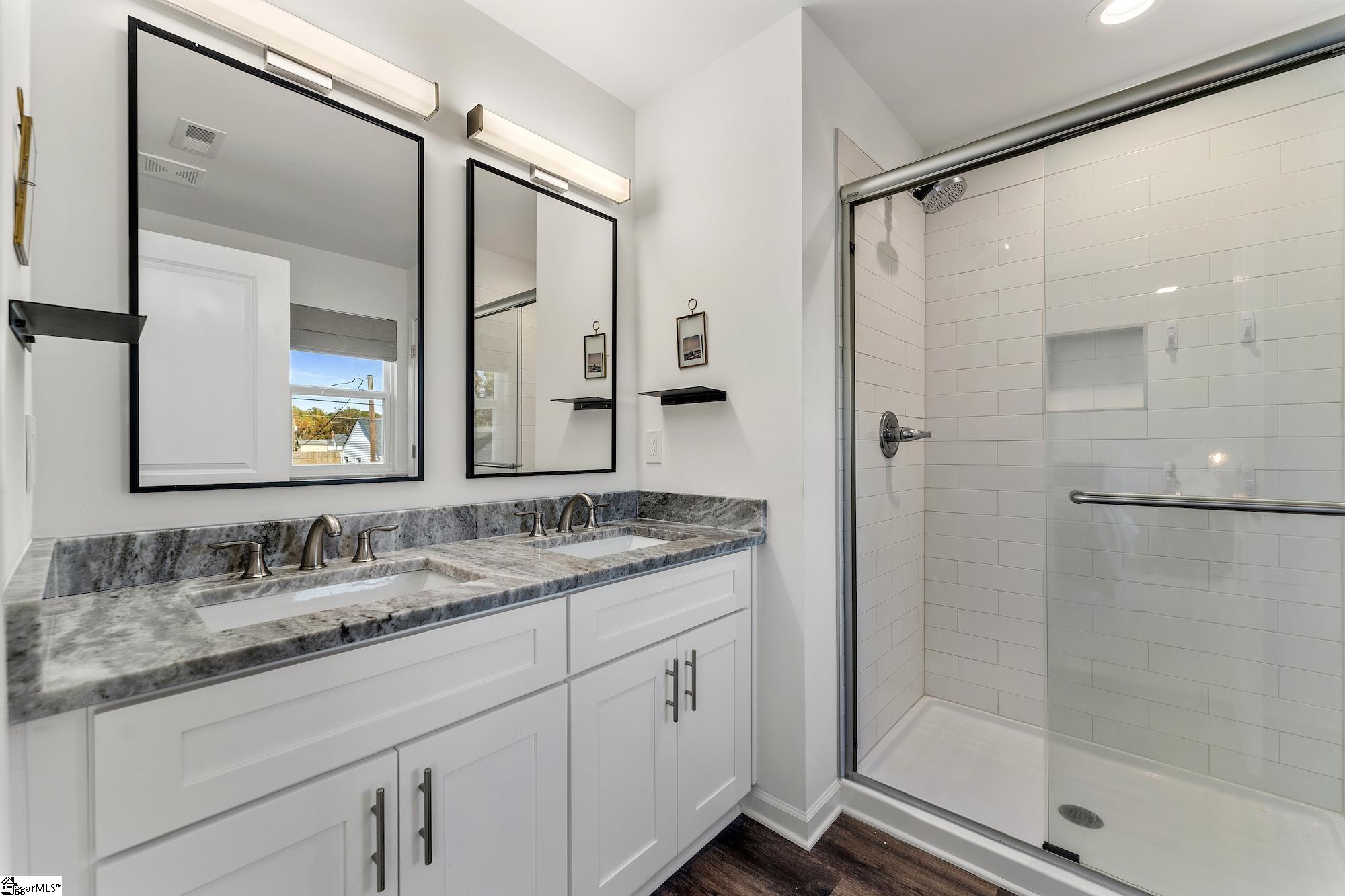 Downtown Greenville Living in a one year old new home, at a run don't walk great price. Located in West Greenville. Beautiful open floorplan, bright light colors with lots of windows. The kitchen comes with frigidaire stainless appliances, upgraded luxury vinyl plank flooring on the main level the granite countertop in the kitchen are a white, light gray mix granite , the kitchen island with counter seating, makes a great place to hang out when prepping meals while hosting friends and family. Extend your living space by opening the door just off the dining room on to the deck and for a little unexpected garden treat... find the checkerboard style paver patio. Such a fun spot to grill out and enjoy your new back yard. Nice privacy fencing on this level lot. The home includes a storage building. Upstairs is where the bedrooms are located, Master has a walk in closet, luxurious master ensuite double sink and shower with a linen closet, two additional bedrooms and another full bathroom. Downstairs there is a half bathroom, a walk in pantry and a closet style laundry room with storage shelving. Such a nice home located just 2 miles to downtown Greenville with so many activities and restaurants too many to mention and .5 miles to West Greenville's (main Street )