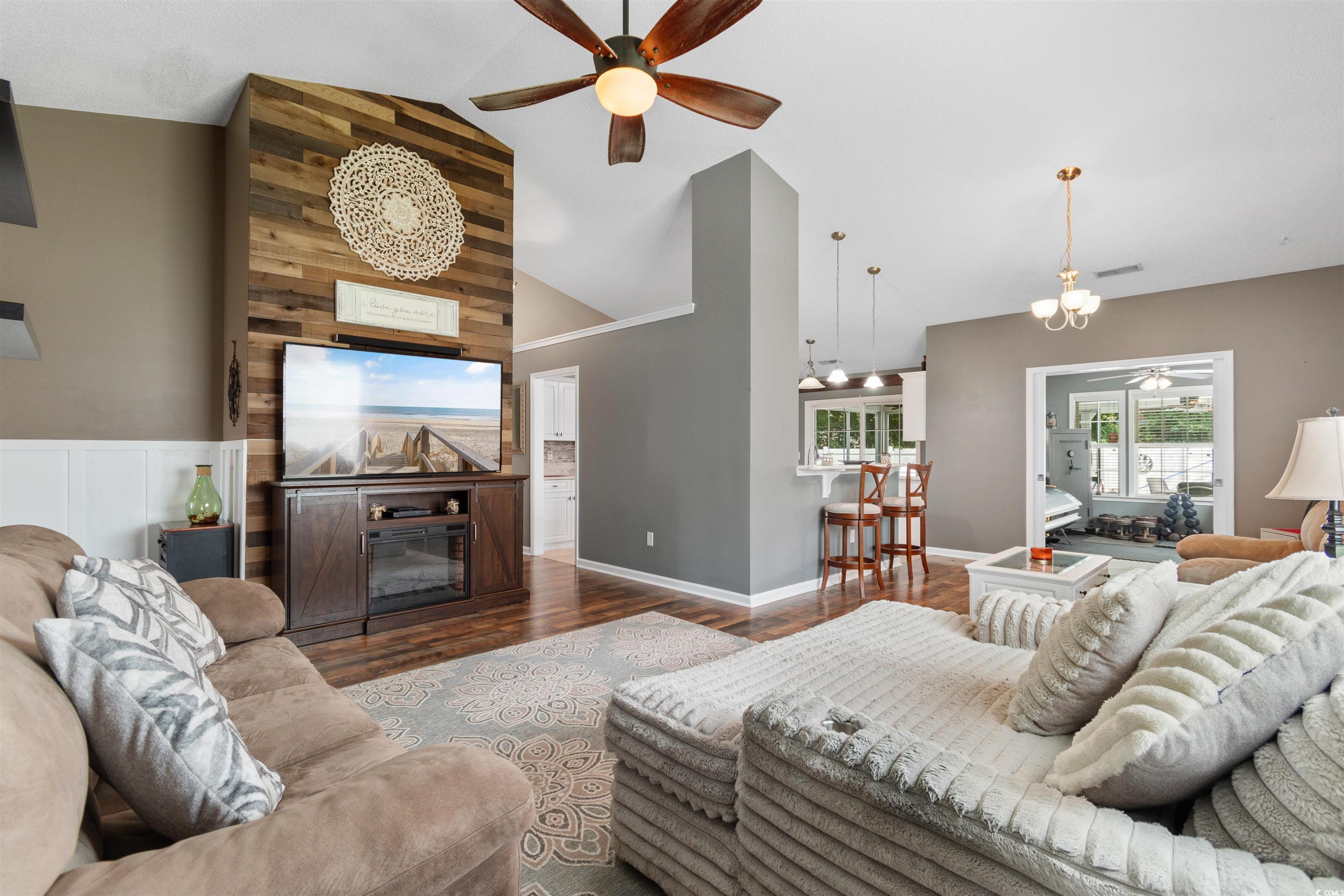 Three Bedrooms, Two Baths, Heated and Cooled Pool, Hot Tub, AND Legally drive a Golf Cart to the Beach, SIGN ME UP!! Nestled in a quiet, established neighborhood with a Seafood Capital of South Carolina zip code, this Murrell's Inlet home will not disappoint. Large, updated kitchen, open concept living area, sizeable king-sized bed ready primary bedroom with walk in closet and step in shower, barn door covered washer and dryer, and ceiling fans throughout are some of this fantastic home's features. Additional attributes include the "Trifecta" with the heated and cooled All-Seasons room, a screened porch and a covered patio! Fencing, curb scaping, lawn sprinkler system, and a private tree lined backyard with no rear neighbors complete this attractive home. Stop procrastinating and get off the sidelines and come live the dream! The dream you deserve of nice weather, nice people and a laid-back coastal lifestyle! Contact the Listing Realtor or Realtor of your choice and schedule today!