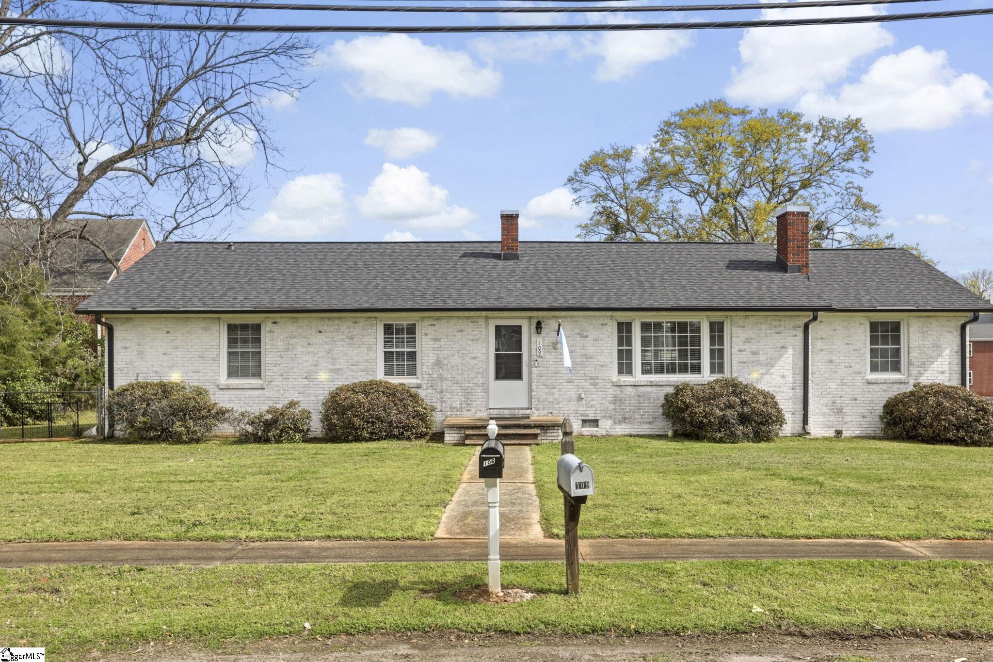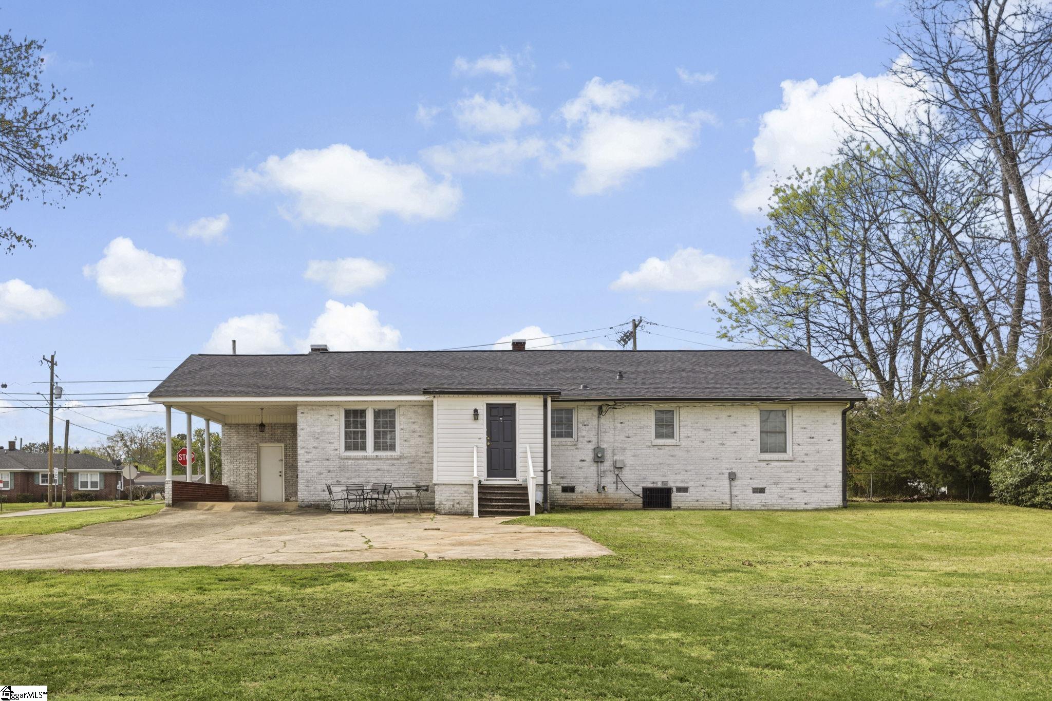 Charming Limewashed Brick Home in the Heart of Cowpens! Beautifully renovated 3-bedroom, 2-bath all-brick home offering 1,649 sq ft of living space, perfectly situated on a spacious 0.44-acre lot with NO HOA. This limewashed exterior adds timeless character and curb appeal, while the interior blends classic charm with modern updates. Step inside to find original hardwood floors throughout, a large kitchen with ample space for cooking and entertaining, and a generous dining area. The inviting living room features a cozy fireplace, creating the perfect gathering space. Outside, enjoy a large fenced backyard, attached carport, and additional parking pads for added convenience. Located in the quaint town of Cowpens, this home is within walking distance to local shopping and dining, and just a short 10-minute drive to downtown Spartanburg. Move-in ready and full of charm—schedule your showing today!