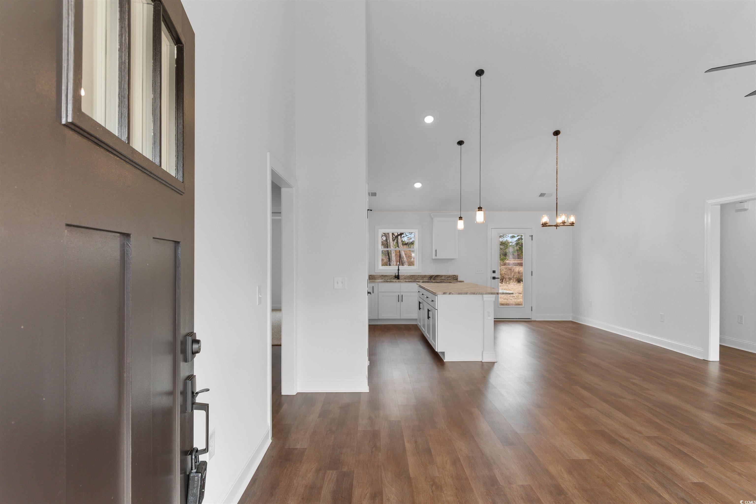 Move-in ready new construction offering peaceful country living just minutes from Downtown Conway. Situated on a full 1.00 acre with no HOA, this thoughtfully designed home provides space, flexibility, and convenience. The open split-bedroom floor plan features three bedrooms plus a dedicated flex room ideal for a home office, nursery, craft room, or optional fourth bedroom (non-conforming—no closet). A welcoming Lowcountry front porch sets the tone for relaxed living, while the interior showcases a spacious living room with a cathedral ceiling and ceiling fan, an open dining area with access to the rear patio, and a well-appointed kitchen. The kitchen offers abundant cabinetry, granite countertops, a breakfast bar, pantry closet, and stainless steel appliances including microwave, dishwasher, and range. The private owner’s suite features a tray ceiling with fan, walk-in closet, double vanity sinks, walk-in shower, and a garden tub. Additional highlights include a finished and painted 2-car garage with electric opener and pull-down attic storage, waterproof wood-look luxury vinyl plank flooring throughout the main living areas, carpeted bedrooms, smooth ceilings, and 30-year architectural shingles. Enjoy quiet, friendly small-town living with an easy commute to Myrtle Beach and coastal attractions.