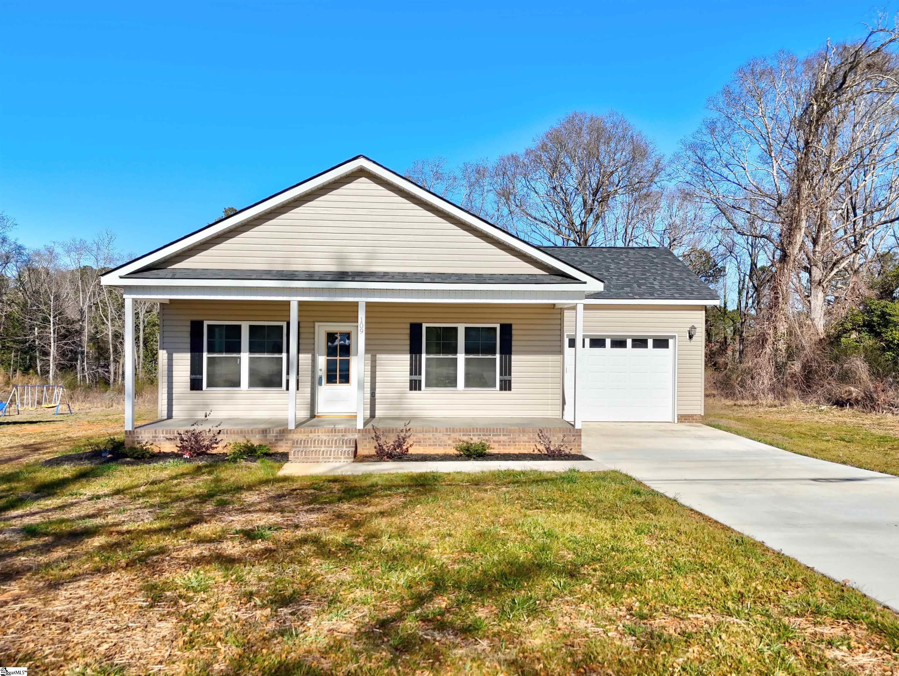 Welcome to 109 Simpson Street — a brand-new 3 bedroom, 2 bath home located in the quaint town of Iva, SC. This thoughtfully designed residence offers a bright, open floor plan with modern finishes and low-maintenance living. The main living areas feature durable luxury vinyl plank flooring and abundant natural light. The kitchen is beautifully appointed with white shaker cabinetry, grannite countertops, stainless appliances, and ample prep space, seamlessly flowing into the dining and living areas — ideal for both everyday living and entertaining. The spacious primary suite includes a private bath with a double vanity and contemporary fixtures. Two additional bedrooms provide flexibility for guests, home office space, or growing needs. A centrally located hall bath and dedicated laundry area add convenience. Enjoy the welcoming covered front porch, attached garage, and a manageable lot that offers easy upkeep. With brand-new construction throughout, this home provides peace of mind and modern efficiency in a charming small-town setting. Move-in ready and waiting for its first owners.