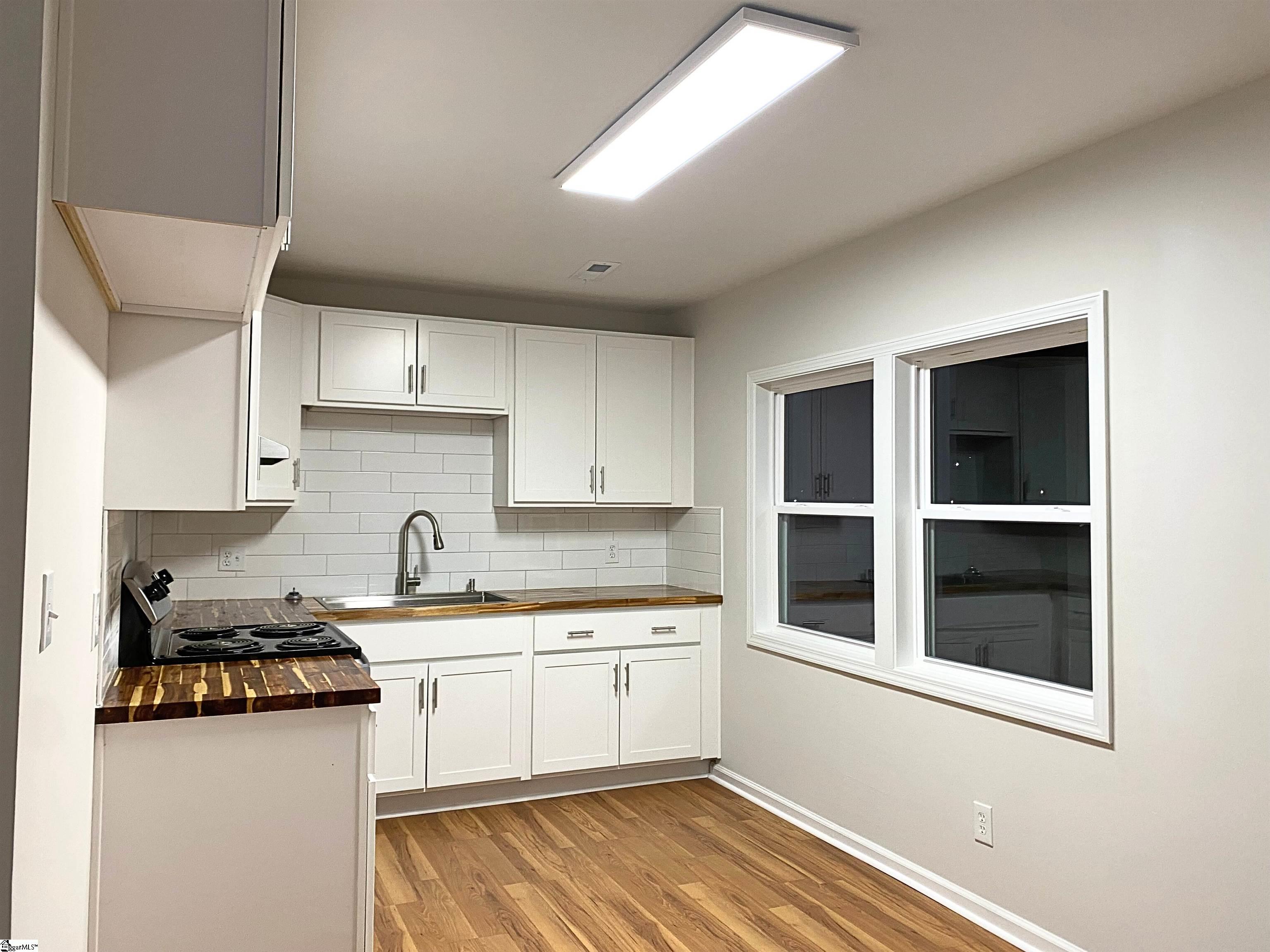 Stunningly Renovated Tri-Level Gem with Designer Finishes! Welcome to 109 Wintergreen, where modern style meets classic brick durability. This fully reimagined 4-bedroom home in Moore, SC. Step into a bright, semi-open main level featuring a brand-new kitchen equipped with premium butcher block countertops, sleek white cabinetry, and stainless steel appliances. Large windows flood the space with light and offer views of your expansive outdoor area. Bedrooms & Baths: Retreat to bedrooms featuring plush new carpeting and fresh paint. Both bathrooms have been elegantly updated with modern vanities, gold-accented mirrors, and custom-look tile flooring. The lower level boasts a walk-out design, providing a private entrance to two bedrooms and a full bath?ideal for a home office, guest wing.