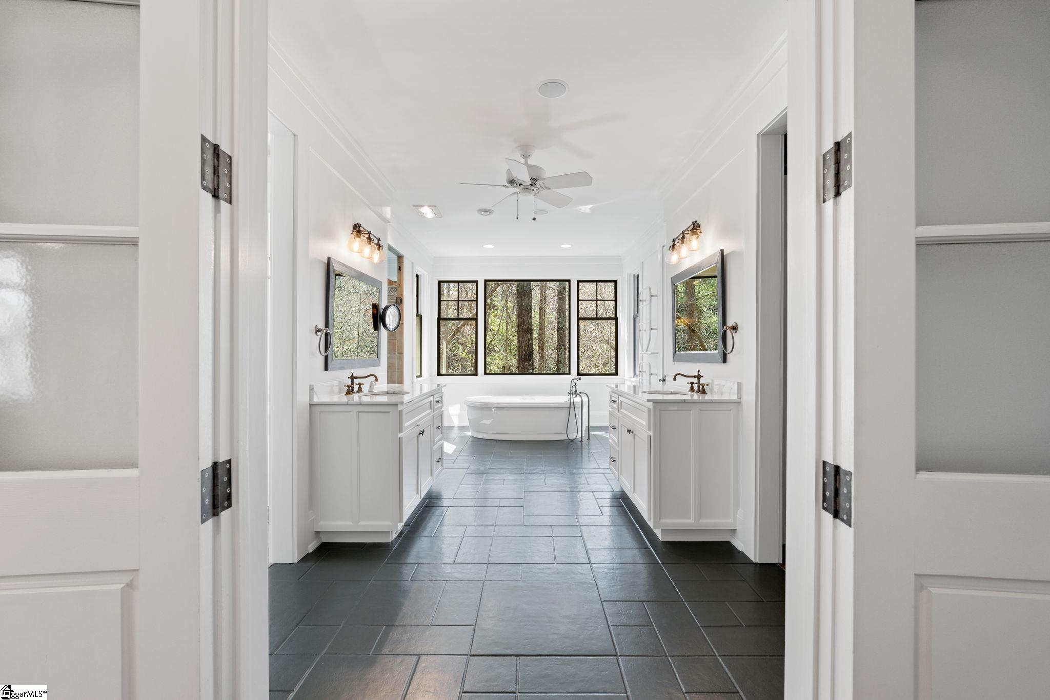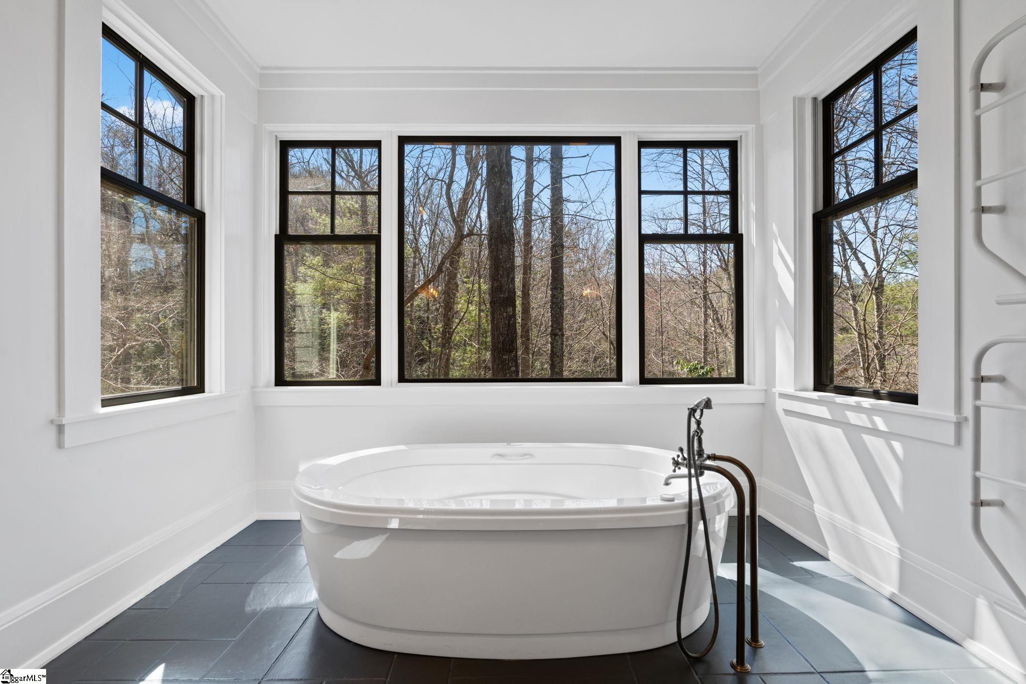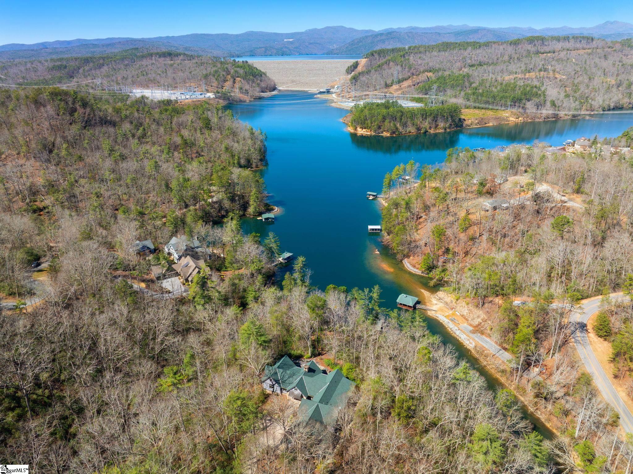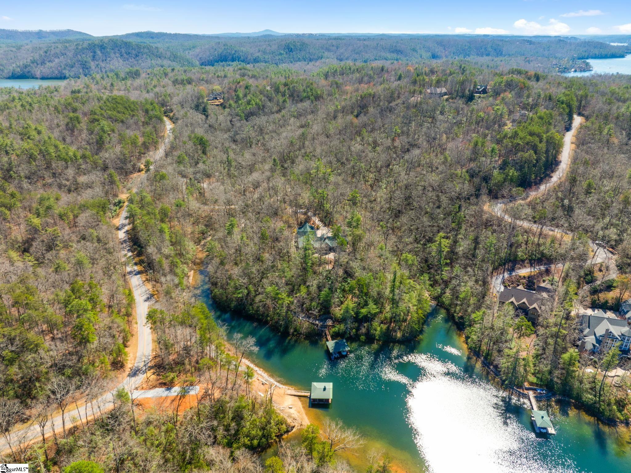 This most unique Cliffs at keowee vineyards offering is a gated estate of over 10 acres, set on a perfectly private point with 1,100’ of deep water Lake Keowee shoreline. A mile of custom-designed trails meander through mature mixed woodland, underpinned by flowering rhododendron and mountain laurel. The single-level 3,800 SF custom built residence by acclaimed architect Con Damron is brimming with custom designed and crafted attributes, including true gourmet kitchen with Wolf and Sub Zero appliances, two magnificent twin flue stone fireplaces (one on the screened porch), stone grotto outdoor shower, expansive, 1,200 SF screened porch and two home offices. The meticulously maintained, low-maintenance residence comprises 4 bedrooms with 4.5 bathrooms, including two guest suites and a bunkroom built by an HGTV carpenter. Flooring is of antique Strongbow oak, with countertops of granite and marble. Cabinetry includes a unique pass-through pantry with wormy oak doors to echo the media cabinet and custom-crafted hutch at the end of the 10’ long wet bar with wine fridge and refrigerator drawers. Carefully selected details include Charleston gas lanterns, a splendid, 2,000 pound natural stone mantelpiece, extensive lighting and fans, an oversized, pebble-floored shower and 2+ gar garage, reconditioned twin slip covered boat dock with internet, solar lighting, fans, lift, TV, storage box with pressure washer, sound speakers, water, and numerous further practical and aesthetic elements. This estate has received preliminary ARB approval for the addition of a second cottage/residence. Family compound possibilities exist. A sanctuary of peace in a natural setting, this home gracefully balances casual indoor and outdoor lake living in its own oasis within the Cliffs at keowee vineyards community.