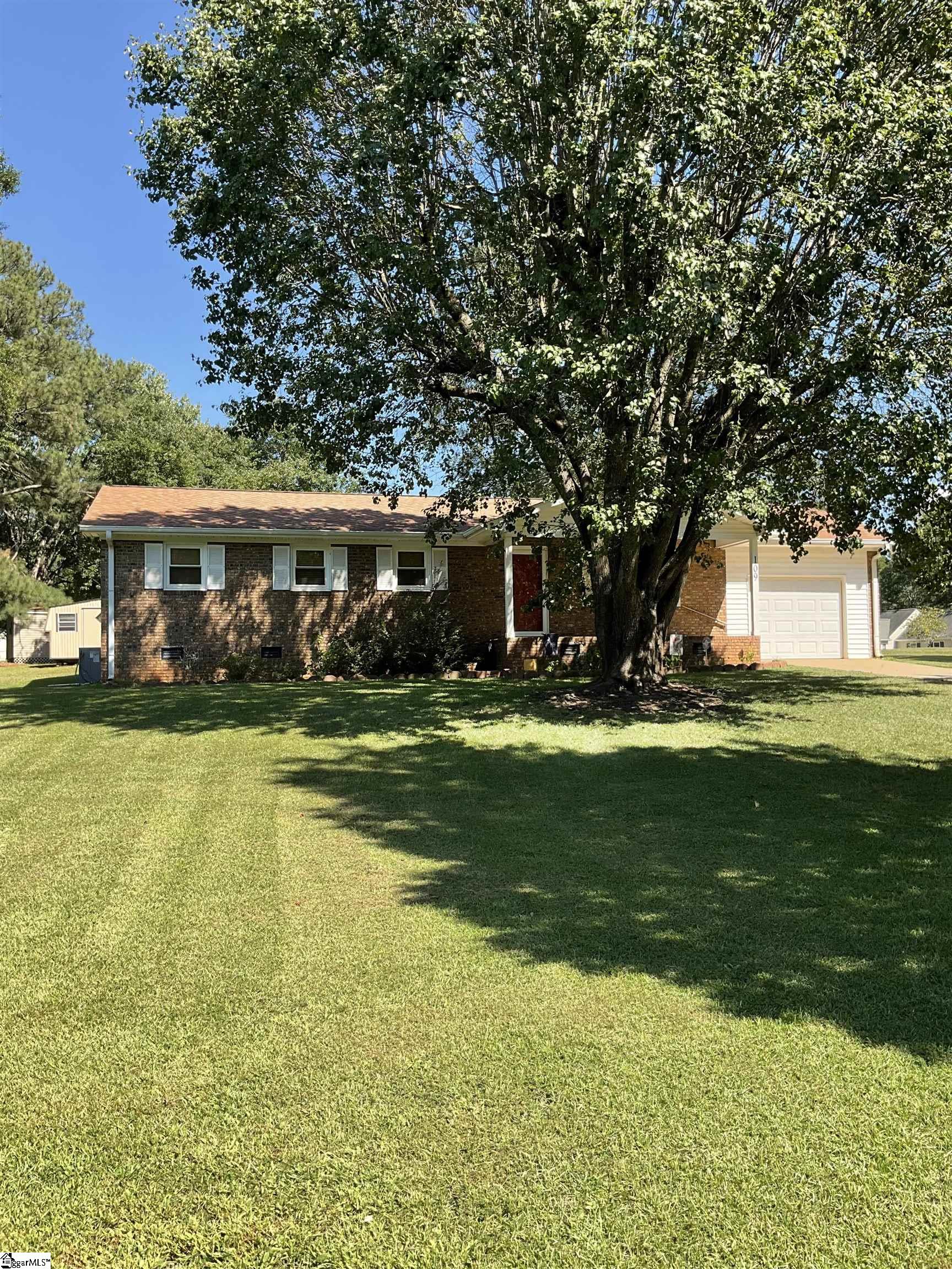 Brick, 2 bd, 1 1/2 bath, perfect as a starter or downsize home. Rocking chair front porch, wood floors, build in bookcase, all appliances, newer walk-in shower , 1 car garage, 1 car carport, almost 1 acre corner lot. Some easy updates could make this a showplace. No city taxes and no HOA. Call today.