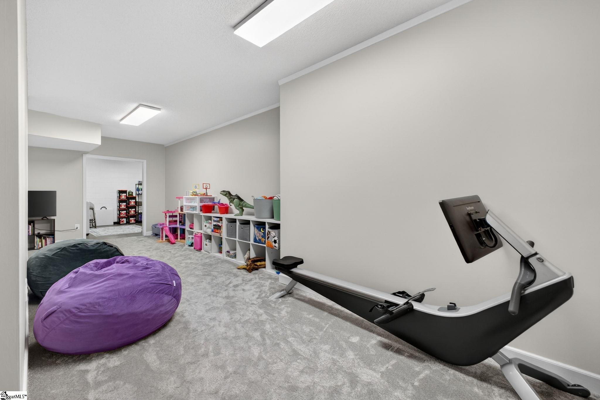 Just what you have been waiting on to hit the market! This 4 bedroom 3.5 bath, 1 level home with full finished basement is renovated and ready to move in! First you will notice the natural light that floods the home through all the replaced windows. Next you will notice the beautiful hardwood floors throughout the main level. The eat in kitchen boasts granite counters and newer stainless appliances. Don't miss the grilling deck right off the kitchen. Large living room and den offer plenty of space for entertaining. Large primary bedroom showcases his and hers walk in closets, dual vanities and large walk in tile shower. 2 more bedrooms finish off the main level with an updated jack and Jill bathroom. Lovely powder room on the hallway prevents guests from having to enter the bedrooms. Downstairs enjoy the large media room, bonus room, bedroom with full bath. So much space for everyone! The garage is huge at over 1000 sq ft offering plenty of space for 2 cars, golf cart, extra refrigerator and even a workshop. Enjoy the half acre lot from your beautiful new deck. All of this with a beautiful freshly landscaped lot in one of Greenville's most sought after neighborhoods. Only a short walk to the pool, multiple neighborhood ponds, and tennis and pickle ball courts. Make your appointment today.