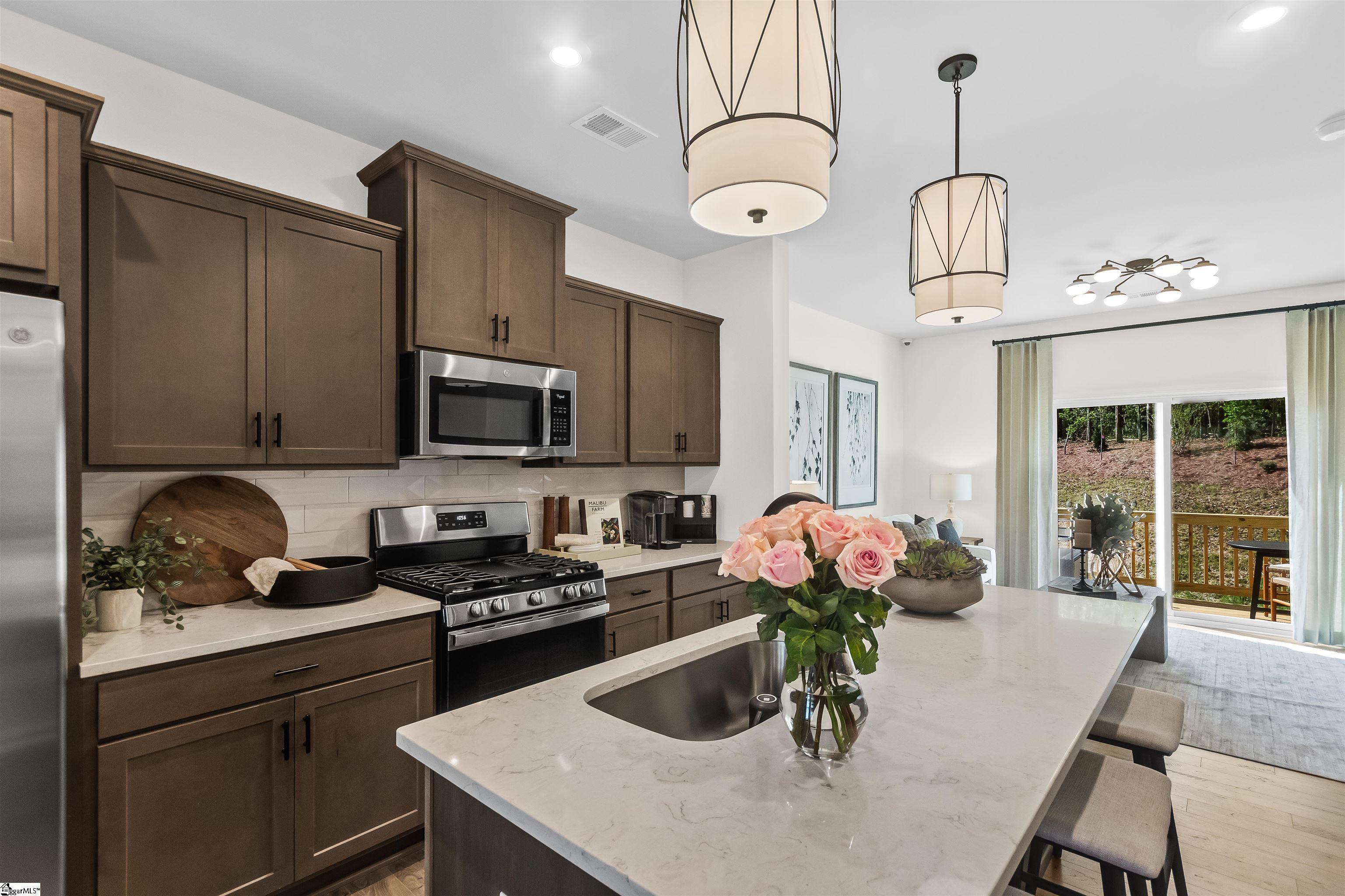 Your chance to own in Bridgeport starts NOW! Located just off Laurens Road, Bridgeport puts you minutes from downtown Greenville’s best restaurants, shopping, and entertainment. Future amenities—including a pool, clubhouse, and direct Swamp Rabbit Trail access—bring the lifestyle you’ve been looking for right to your doorstep. Introducing the Lennox plan, a fan favorite! This end unit 3-bedroom, 3.5-bath, three-story townhome includes a bedroom on the main level, perfect for guests or a home office. Enjoy open-concept living, all appliances included, a fireplace, and low-maintenance convenience. The kitchen steals the show with a stunning quartz island made for entertaining. Relax in your spacious living room or step onto your deck and unwind or host with ease. Upstairs, each bedroom features its own private bath—giving everyone their own space complete with stunningly refined finishes. With quality craftsmanship, modern design, and an incredible location, this home offers the perfect balance of style and function. Don’t miss your opportunity to call Bridgeport home!