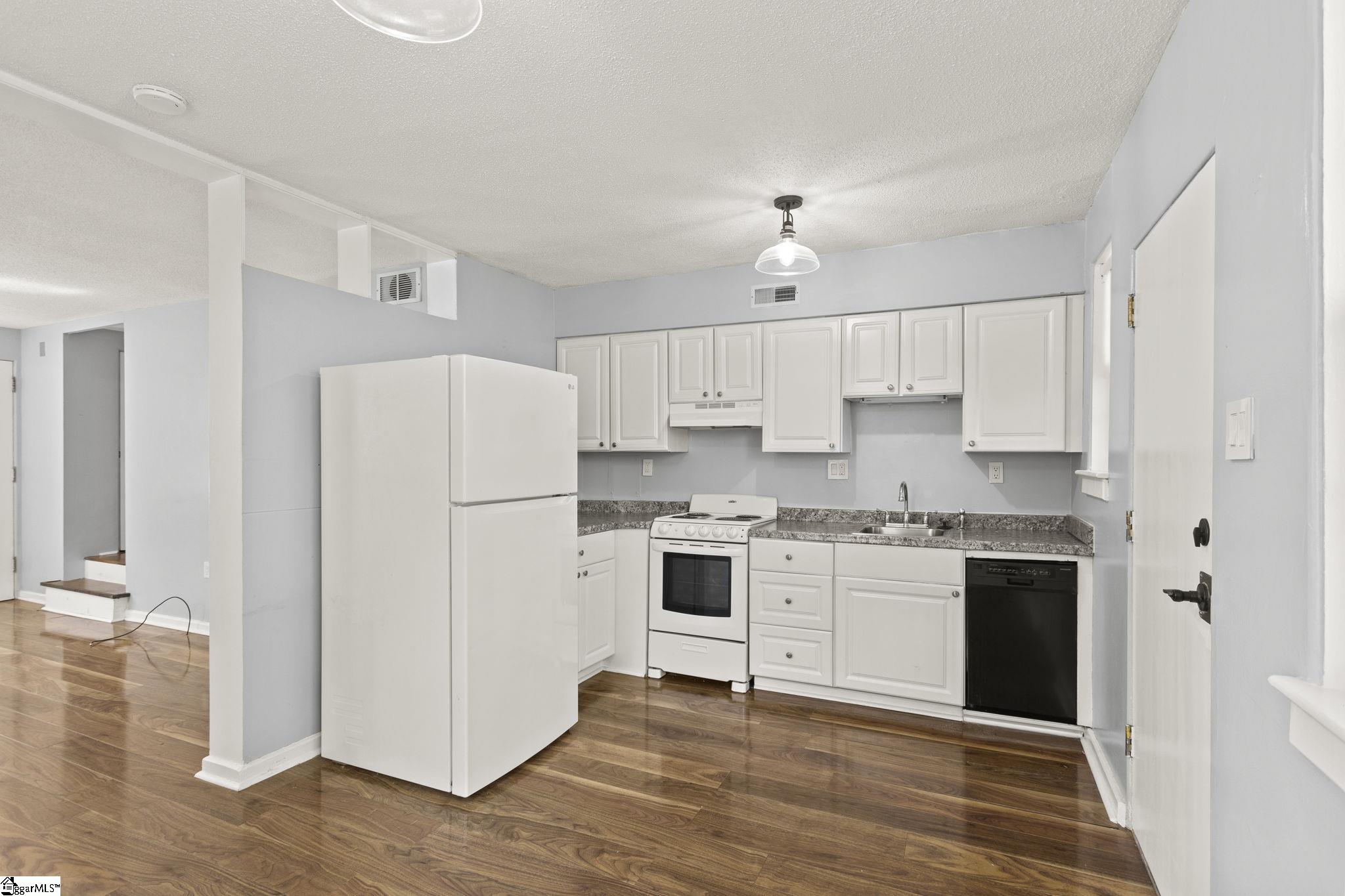 Charming two-story townhome in the established Faris Ridge community, just minutes from downtown Greenville. This 2-bedroom, 1-bath home offers a functional layout with all bedrooms and full bath upstairs. The main level features a comfortable living area with book shelves, dedicated dining space, and a well-equipped kitchen with all the appliances you need included. Low-maintenance living is enhanced by exterior upkeep covered through the HOA, making this an easy option for both homeowners and investors. Enjoy one of the most convenient locations in Greenville. Close to Augusta Road shopping and dining with quick access to downtown. Outdoor enthusiasts will appreciate nearby access to parks and green spaces, including easy proximity to the Swamp Rabbit Trail and Cleveland Park, offering miles of walking, running, and biking trails. Whether you're looking for a primary residence or a solid investment property, this townhome delivers affordability, location, and simplicity in one package.