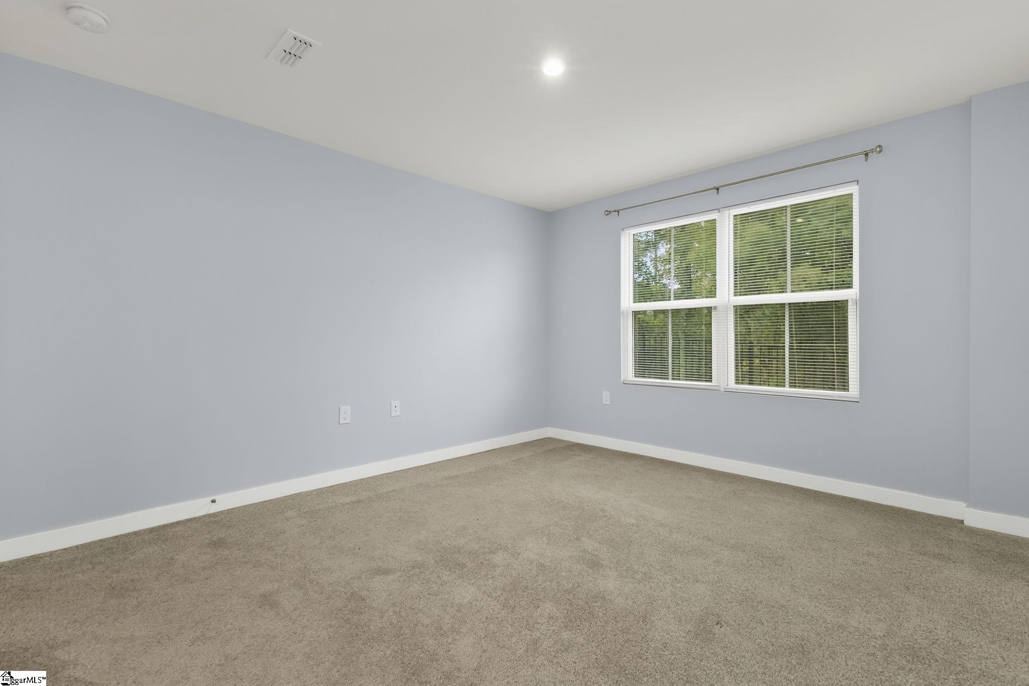 This better than new townhome is in an absolutely perfect location just steps from the Swamp Rabbit Trail. Situated between Downtown Greenville and Travelers Rest and just minutes from Furman University. Shopping, medical services, dining and activities are all just right around the corner. The home itself was once the model home for the community and has the extra bells and whistles including a heated and cooled garage and privacy beyond your rear covered porch. This end unit home comes with a spacious kitchen and large island with quartz counter tops, beautiful flooring and fresh paint making it feel barely lived in. The primary bedroom is on the main level and features a walk in closet, dual vanity and tiled walk in shower with seating bench. The large laundry room leads to the garage. Head upstairs and enjoy the flexibility of two additional bedrooms and full bath. There is no shortage of storage in this home with a pantry, linen closets, additional closet in the laundry room and walk in attic storage upstairs. Make your appointment to see this today before it's gone!