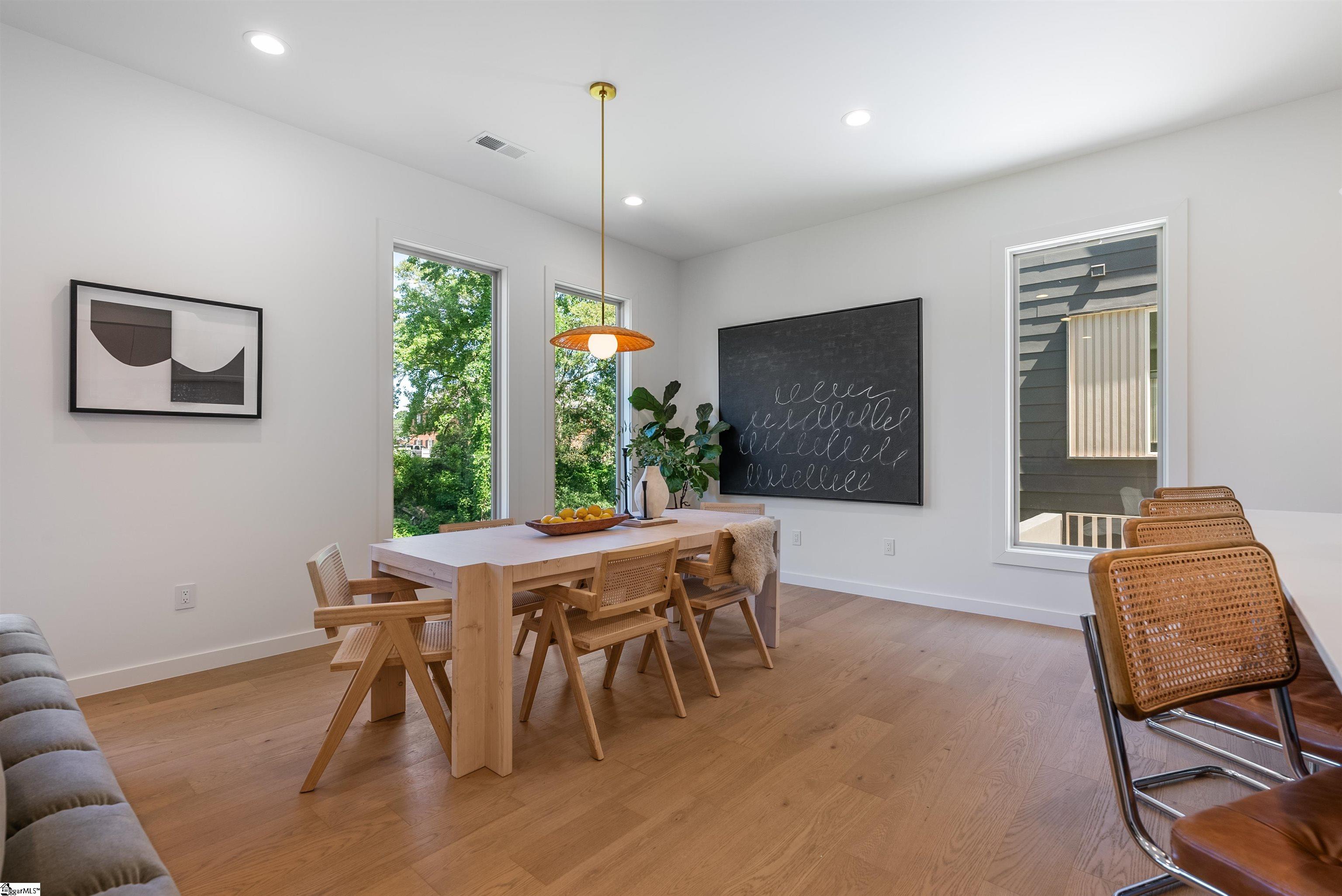 This is no ordinary home, it’s a contemporary showpiece, thoughtfully designed from the ground up to blend style, function, and location. Just minutes from downtown Greenville, this 3-bedroom, 2.5-bath stunner features white oak flooring, an airy open layout, and a kitchen that pulls double duty as both practical and impressive. With sleek quartz countertops and top-of-the-line Bertazzoni appliances, even takeout feels like fine dining here. Storage? You’ll have more than you know what to do with thanks to a massive basement, perfect for bikes, bins, or all the “someday” treasures. The standing seam metal roof not only adds bold curb appeal, but it’s also built for long-lasting peace of mind. Out back, a cantilevered deck hovers over Richland Creek, offering a tranquil spot for morning coffee, evening cocktails, or anything in between. Even better, the city has proposed extending the Swamp Rabbit Trail to run right behind these homes, adding future value, instant fun, and easy access to Greenville’s favorite greenway. With no HOA breathing down your neck and a low-maintenance yard, your weekends are wide open for living, not lawn care. Plus, breweries, restaurants, and shops are just a short stroll away. Modern, peaceful, and perfectly placed. 9 Mt. Zion Ave is where city convenience meets quiet retreat.