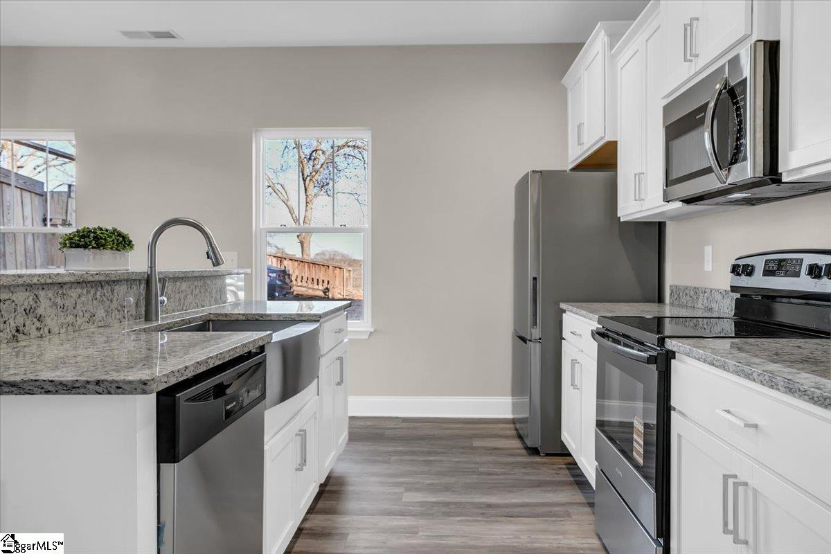 Like new home in Easley! This spacious two-story home offers just under 2,000 sq. ft. of well-appointed living space, featuring 3 bedrooms, 2 and a half bathrooms, and a thoughtful layout ideal for both everyday living and entertaining. Recently updated with new LVP flooring- no carpet here!, windows, doors, and paint, this is essentially a brand-new home! The main level boasts an open floor pan, highlighted by a large living area and a gorgeous kitchen complete with granite countertops, walk-in pantry, large island, stainless steel appliances and abundant cabinetry for maximum storage and function. A half bath and 2 car garage with extra driveway parking makes this home perfect for any buyer! Upstairs, you'll find a flexible loft space, perfect for a home office or hang-out area, along with a convenient walk-in laundry room. The primary suite provides a true retreat with a stand-alone shower, generous walk-in closet and separate water closet with a linen closet. Two other bedrooms share a large bathroom with double sinks. Nestled on a fenced-in quarter of an acre lot, this property offers a grilling patio and private outdoor enjoyment less than 5 blocks from The Silos and Haygood Park! Modern comfort, prime location, everyday convenience—this one truly has it all. Schedule your showing today!