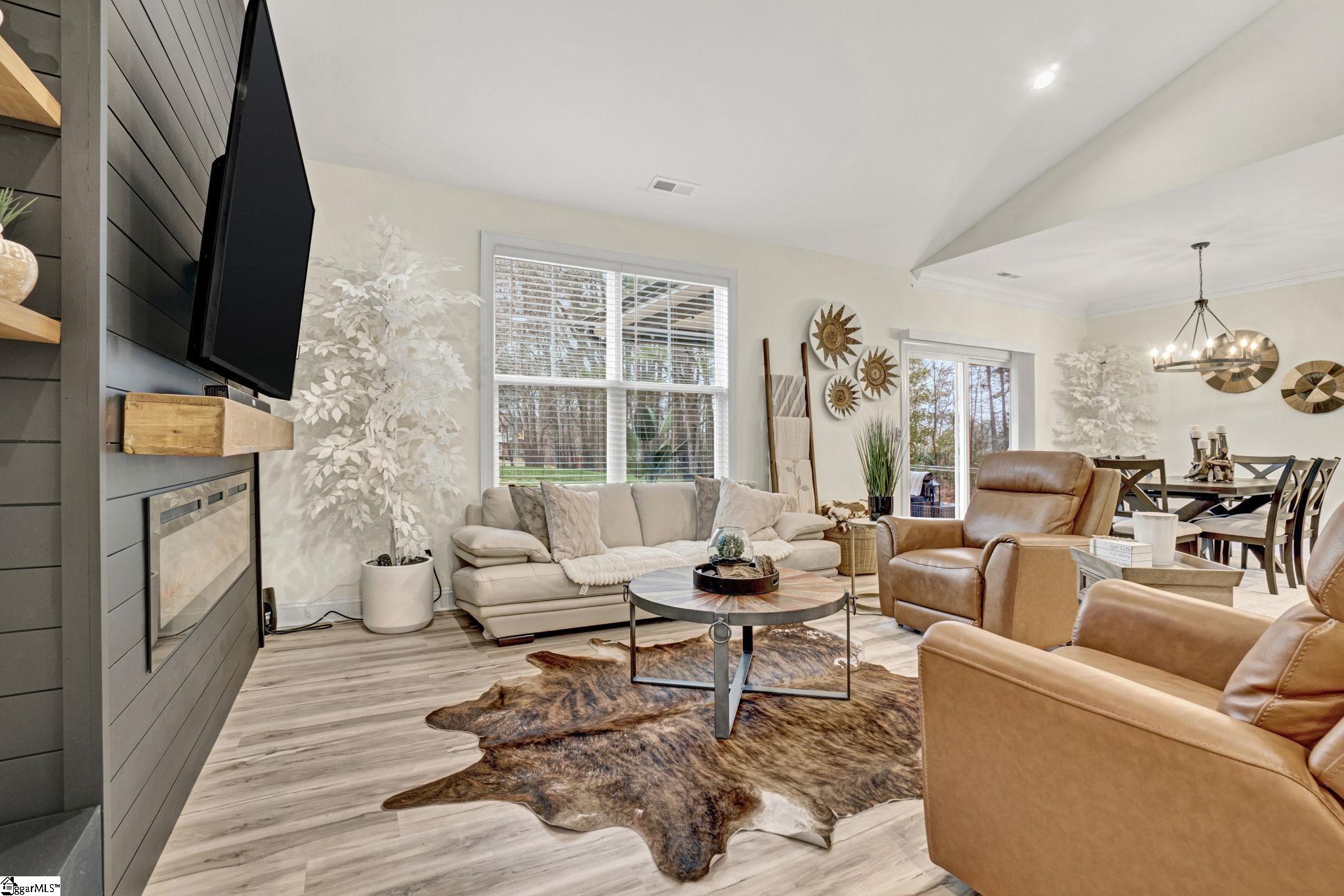 Built in 2025, this gorgeous Craftsman-style home offers the perfect blend of timeless curb appeal, modern upgrades, and flexible living space in a highly desirable location. With 1,739 square feet, 3 spacious bedrooms, and 2 full baths, this thoughtfully designed home provides comfortable everyday living and beautiful spaces for entertaining. Since purchase, the sellers have invested in exceptional upgrades throughout. The kitchen and bathrooms feature stunning Cambria Calacatta quartz countertops, while the impressive 9-foot quartz waterfall island serves as a true centerpiece. GE appliances elevate both style and function, including a slide-in smart gas range and added stove vent, complemented by a large-format porcelain backsplash and Delta plumbing fixtures for a cohesive, high-end finish. The open living area is warm and inviting, anchored by a dramatic floor-to-ceiling electric fireplace and enhanced by upgraded waterproof luxury vinyl plank flooring that runs throughout the entire home. Upgraded lighting and oversized 72-inch ceiling fans in both guest bedrooms, the living room, primary suite, and both front and back porches provide comfort and style in every space. The primary bedroom has a cozy electric fireplace, lots of natural light, and an ensuite bathroom with a spa quality soaker tub, separate shower, and double sinks. Outdoor living is just as appealing, with a welcoming rocking chair front porch, a covered back porch perfect for relaxing or entertaining, and a back yard ready for pets, play, or gardening. The extended driveway adds convenience, and the generator interlock switch allows the home to be powered by a generator. With an acceptable offer, the sellers are willing to include their whole-home generator for added peace of mind. A washer and dryer bundle is also included, making this home truly move-in ready. Ideally located just minutes from Main Street festivals, shopping, and dining, and only 30 minutes to Greenville or Anderson, this home also offers easy access to I-85 and all the outdoor recreation the area is known for—lakes, hiking, and exciting Clemson game days. This is more than just a home—it’s an incredible opportunity to start making lasting memories in a nearly new, beautifully built Craftsman. Preferred lender offers assistance towards closing costs!
