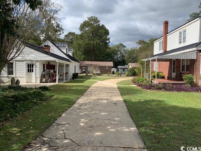 For sale-brick home with 4 bedrooms and 2 baths in downtown Tabor City, NC. Upon inspection by other builders, this home, built in 1949 by Venoy Stephens, was often stated to be the most strongly built home in Tabor City. This traditional home still features some of its original character like the hardwood floors throughout the house, (except for the bathrooms and kitchen), brass doorknobs, built in upstairs storage cabinetry with cedar lining, bookshelves and window sitting nooks with storage. The bedrooms have cedar lined closets and the kitchen was updated some years back. All the windows have been replaced and a stand and seam metal roof was installed on the home and detached building. New A/C just installed. There is a back den, a living room with a fireplace/gas logs and bay window. The formal dining room has floor to ceiling bookshelves on one wall. The house has a light airy feel due to its many windows. Nearly every room has 3 windows and all the bedrooms have double windows on two walls. There is a large attic room off of one of the upstairs bedrooms. There is an enclosed porch laundry room near the kitchen. The property features 2 downstairs bedrooms and a full bath. There are 2 large upstairs bedrooms and bath. Outside you can enjoy lazy evenings on the back covered porch and watch the many birds that frequent the feeders. The men will love the detached storage and workshop building with a roll up door, it also has electricity and an attic. The yard has many mature flowers throughout with a circular driveway in the back of the home. Located only a few blocks from downtown, you can walk to area restaurants, banks and shops. Small town living but close to NC Brunswick County beaches and Calabash, NC. Only 30 minutes from Little River and North Myrtle Beach, SC. I-95 and Wilmington, NC are less than an hour's drive.