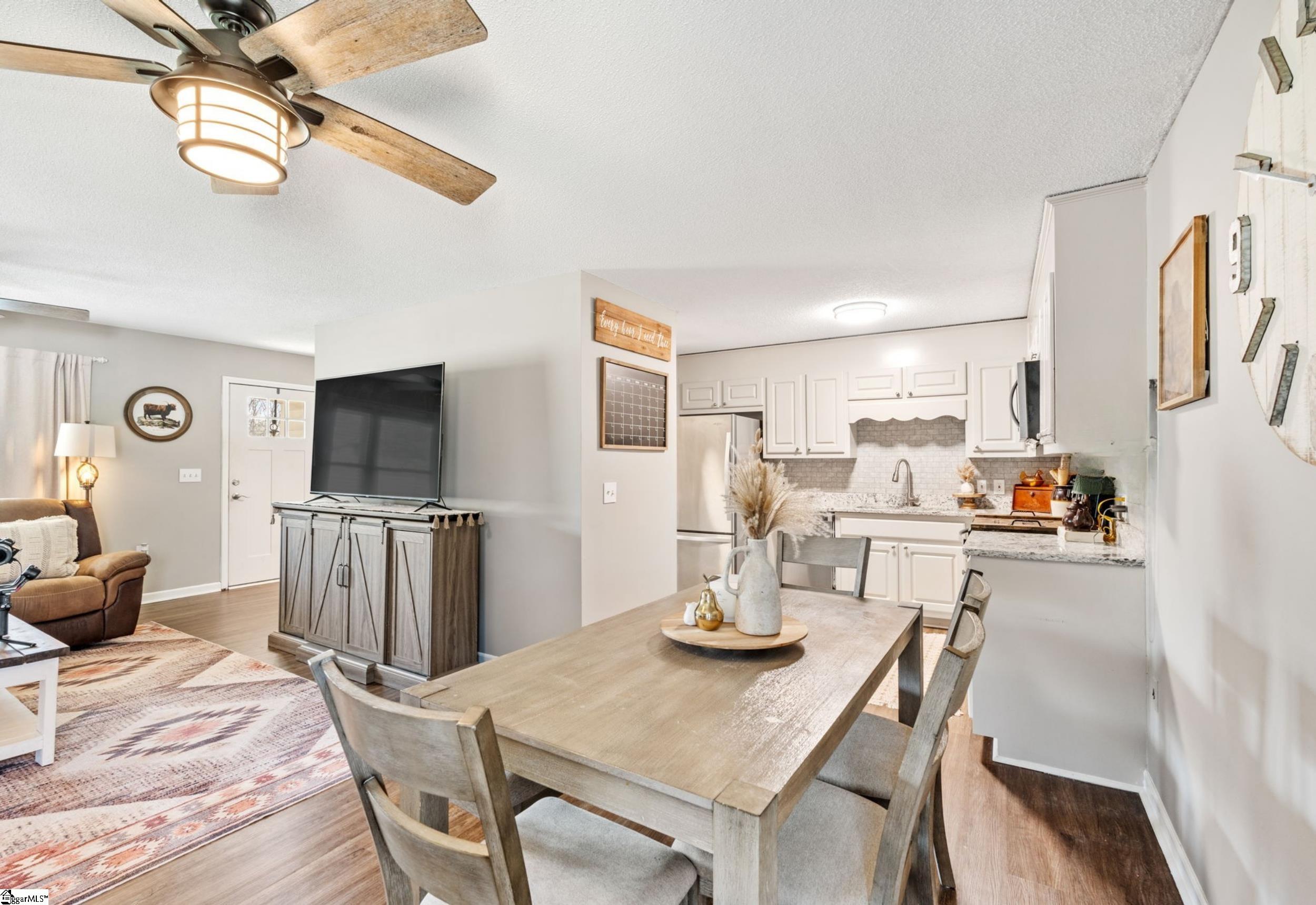 Welcome to 110 N Blue Ridge Circle, a charming updated ranch home situated on 0.76 spacious acres in highly desirable Pickens, South Carolina- just minutes from outdoor recreation, downtown shops, and restaurants. This 3-bedroom, 1.5-bathroom home is a must-see, offering comfort, updates, and a setting that truly captures the beauty of the Upstate. Nestled in the foothills of the Blue Ridge Mountains, this property is just 15 minutes from Table Rock State Park, known for its breathtaking hiking trails and waterfalls. You’ll also enjoy being less than 7 minutes from Downtown Pickens with shops, restaurants, and the small-town USA feel, and close to the beloved Doodle Trail. Situated on a quiet street with NO HOA, this well-maintained home offers plenty of space to spread. As you arrive, you’ll be welcomed by a charming front porch, perfect for sipping your morning coffee or relaxing in the evenings. Inside, the spacious living area features beautiful newer LVP flooring and an abundance of natural light. The living room flows into a generous dining area that connects seamlessly to the updated kitchen, creating a functional semi-open floor plan ideal for both everyday living and entertaining. The kitchen features stainless steel appliances, granite countertops, and a beautiful new backsplash. All appliances, including the refrigerator, washer, and dryer, convey with the home, making it truly move-in ready. The newly renovated laundry area is a standout feature, complete with stunning wallpaper and custom built-in cabinetry that provides additional storage and style. Down the hallway, you’ll find the spacious primary suite, featuring an updated ensuite half bathroom and two closets. Two additional bedrooms, each with generous closet space, share a full bathroom with a tub/shower combination. Step outside to your peaceful backyard oasis overlooking your private 0.76 acres, perfect for entertaining, relaxing, or enjoying warm spring and summer days. This property includes two outbuildings, one of which is a 12x16 workshop with electricity, offering endless possibilities for hobbies, storage, or workspace. The home is located less than 30 minutes from Greenville, just 2.5 miles from Pickens High School and highly sought after Hagood Elementary. With its updates, spacious lot, and fantastic location, 110 N Blue Ridge Circle truly has it all. Recent upgrades include new HVAC (2022), new flooring throughout, new ceiling fans in all rooms, fresh interior paint, and more - giving buyers peace of mind and making this home truly move-in ready. The sellers have taken excellent care of this beautiful home, and 110 N Blue Ridge Circle is ready for its next owner.