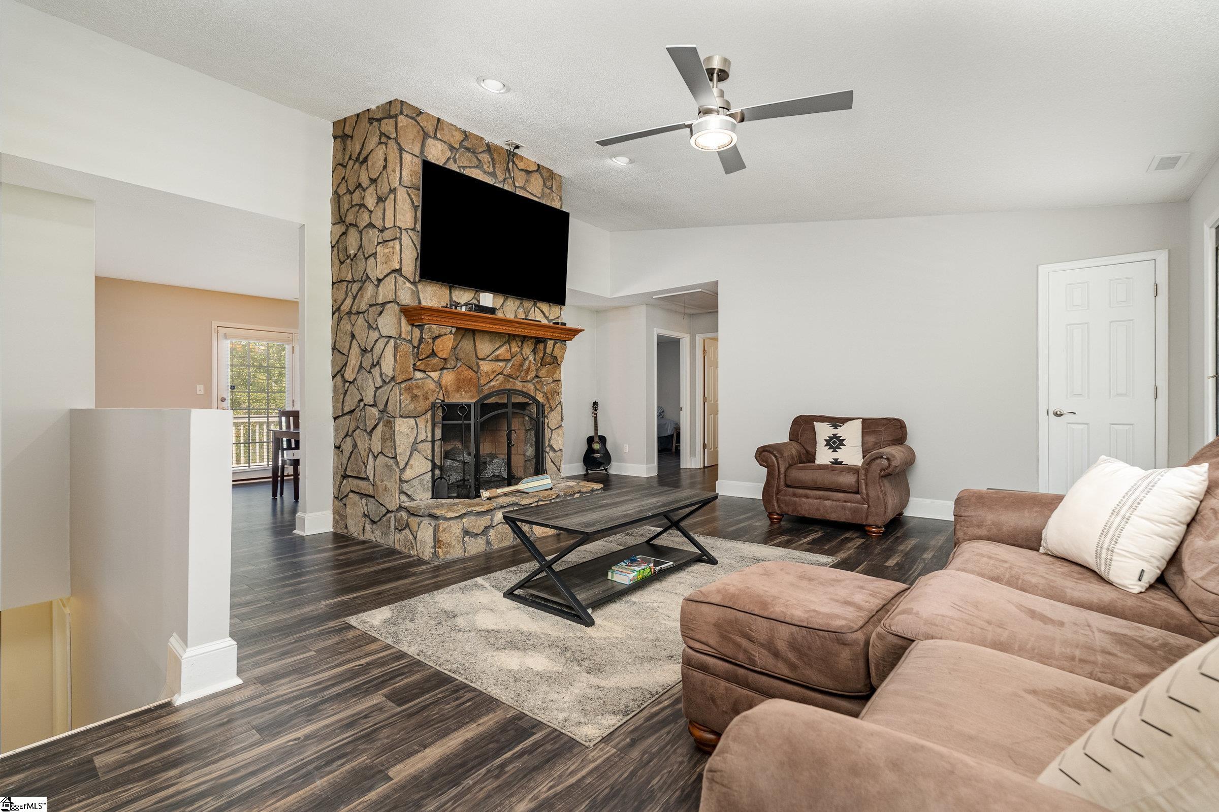 Discover peaceful lakefront living in this charming single-story home on beautiful Lake Blalock! Nestled on 2.85 wooded acres with approximately 100 feet of water frontage, this property offers both privacy and convenience—just minutes from all the amenities you need! Inside, you’ll find a freshly painted interior and a newly updated bathroom, creating a bright and welcoming feel throughout. The split-bedroom layout centers around a cozy living area with a stone fireplace, while the spacious kitchen and dining area open to a huge deck overlooking the wooded lot and tranquil waterfront. The walk-out unfinished basement offers endless potential for future living space—whether you envision a rec room, home gym, or guest suite. Outside, enjoy a breezeway connecting to the two-car garage, a rocking chair front porch, and multiple outbuildings providing abundant storage. Located in a desirable district, this Lake Blalock home combines natural beauty, comfort, and convenience in one inviting package!