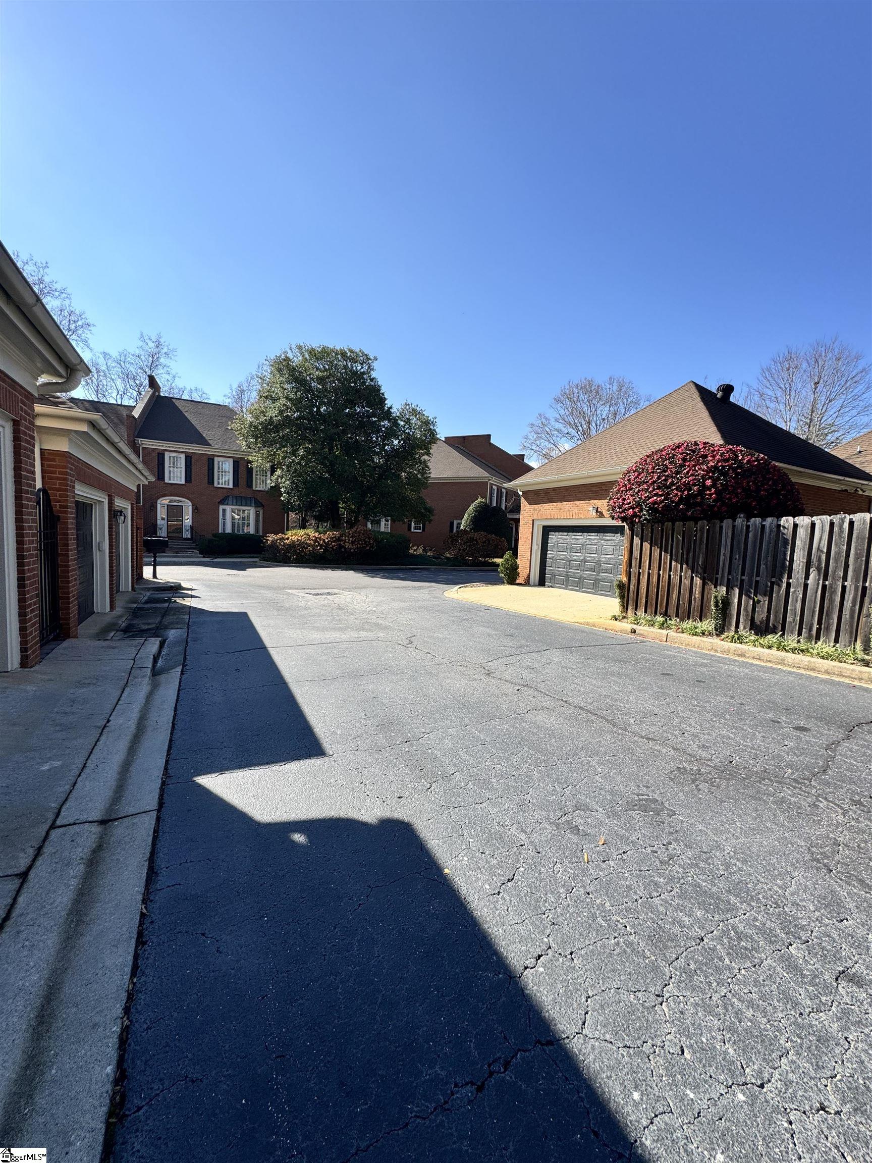 Well-maintained brick townhome located in the desirable Glenbrooke community, convenient to Pelham Road, Haywood Road, I-385, shopping, restaurants, and downtown Greenville. This 2-bedroom, 2.5-bath home offers approximately 2,160 sq ft of comfortable living space with a functional layout and generous room sizes. The main level features a two-story foyer, hardwood flooring, a spacious living room with masonry fireplace, formal dining room, and a wet bar for entertaining. The kitchen includes ample cabinet storage, built-in appliances, and a breakfast area. A private courtyard patio is located just off the main living area. Upstairs includes two large bedrooms, each with access to full bathrooms. The primary suite offers a walk-in closet, and the secondary bedroom provides excellent storage as well. A dedicated upstairs laundry area includes built-ins for added convenience. Additional features include a rear-entry two-car garage, plantation shutters, detailed moldings, and abundant storage throughout. Glenbrooke is a quiet, established community with maintained common areas and mature landscaping. This property offers low-maintenance living in a central location with convenient access to schools, medical facilities, and Greenville amenities.