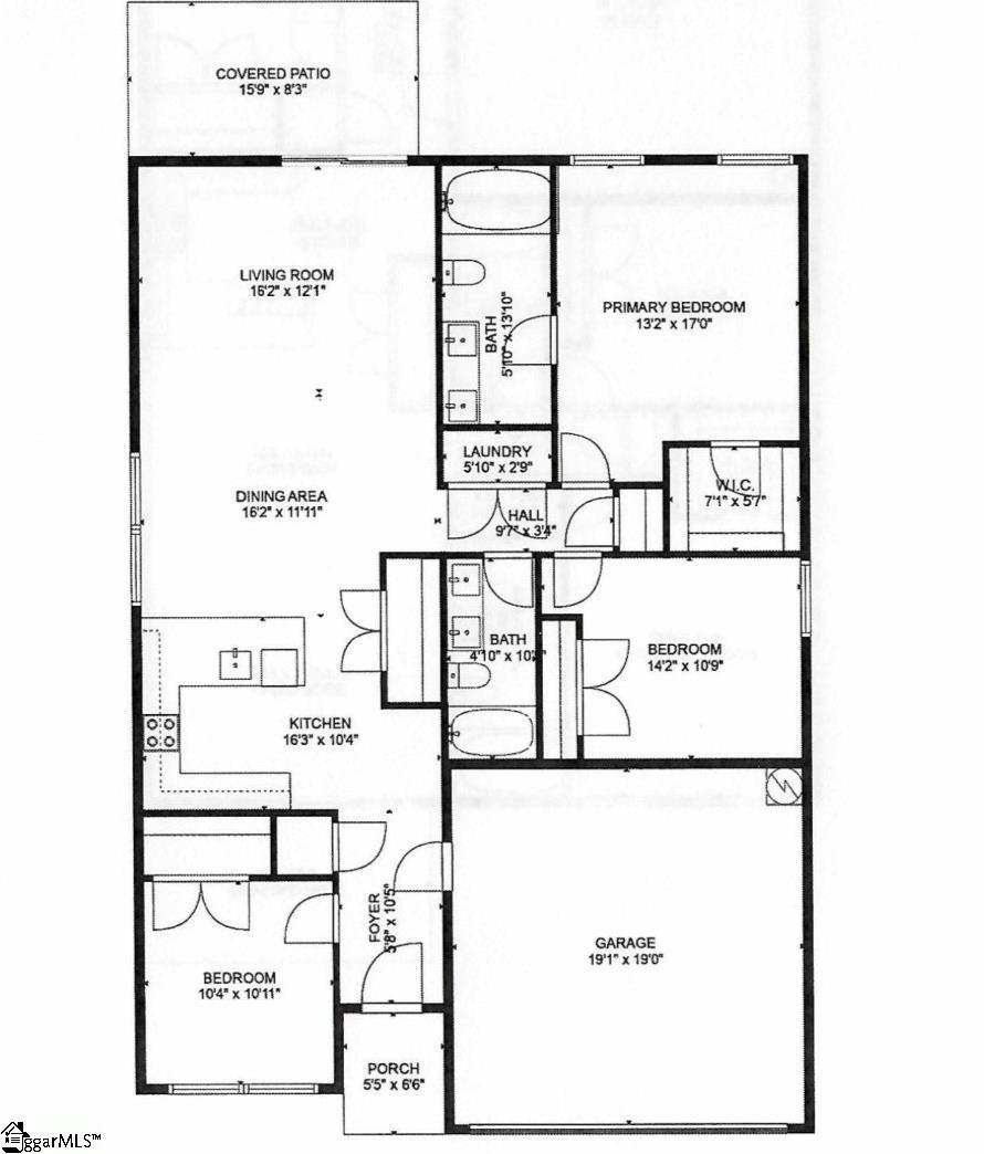 Welcome to 110 N 6th St in Easley — a beautifully updated Craftsman-style ranch with no HOA and move-in ready convenience. This single-level home offers 3 bedrooms, 2 bathrooms, and over 1,500 sq. ft. of thoughtfully designed living space. The open layout seamlessly connects the living room, dining area, and kitchen, creating a comfortable and functional flow for everyday living and entertaining. The kitchen features quartz countertops, stainless appliances, and durable white cabinetry, offering both style and practicality. Luxury plank vinyl flooring runs throughout the home, providing a modern look with easy maintenance. The primary suite includes a walk-in closet and a full bathroom, while two additional bedrooms share a well-appointed hall bath with a quartz vanity and tub/shower combination. Step outside to enjoy a covered concrete patio overlooking a tree-lined backyard, creating a peaceful outdoor space for relaxing or entertaining. Located just minutes from the heart of downtown Easley and very close to the Doodle Trail, you’ll enjoy convenient access to local restaurants, shopping, parks, and outdoor recreation while still having the comfort of a quiet residential setting. With modern finishes, energy efficient systems, professional landscaping, and no HOA restrictions, this home offers a great blend of convenience, comfort, and value. Note: Photos are renderings for illustrative purposes only. Final finishes, colors, flooring, and other details may vary and are subject to change.
