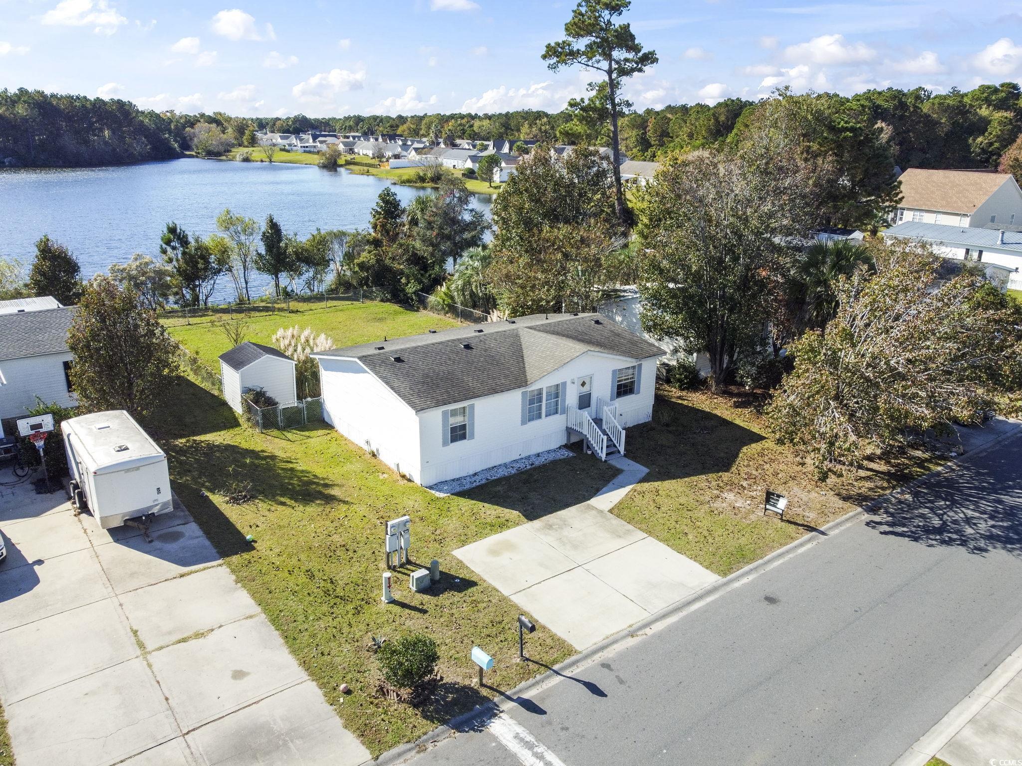 Welcome to this charming 3 bedroom, 2 full bath home located in the desirable Ashford subdivision. This split bedroom floorplan offers privacy for the master suite that boasts a walk-in closet, while the spacious living room is perfect for entertaining guests. Step outside to enjoy the fenced backyard with a deck overlooking a serene lake. The detached storage building provides ample space for all your storage needs. Conveniently located near the beach, shopping, and dining, this property offers the perfect combination of comfort and convenience. VA Mortgage may be assumable for qualified buyers. Don't miss out on this opportunity to make this house your new home!