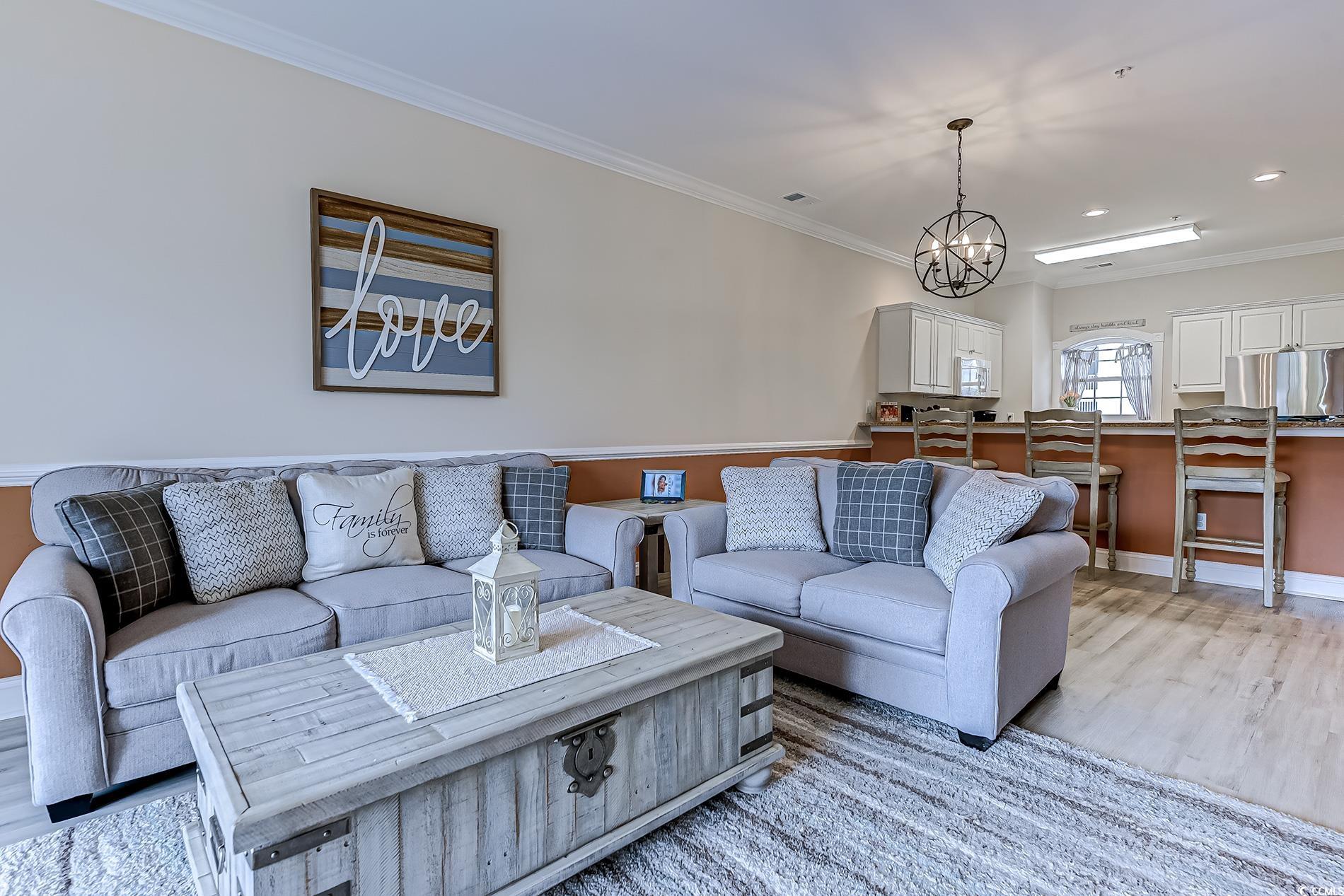 Welcome to this charming 2-bedroom condo in the desirable Tullamore Lakes community of Longs, SC—perfect as a primary residence or a relaxing beach getaway. Enjoy tranquil pond views from your private balcony, and appreciate high-end finishes throughout, including granite countertops, beautiful flooring, elegant crown molding, and chair rail molding in the living areas. The open layout offers comfort and functionality, with plenty of natural light and space to unwind or entertain. Located just 12 minutes from Cherry Grove Beach, and close to golf, shopping, and dining, this well-maintained condo delivers the best of coastal living in a quiet, convenient location. Don’t miss this opportunity to own a stylish, move-in ready condo in a peaceful setting near the shore!