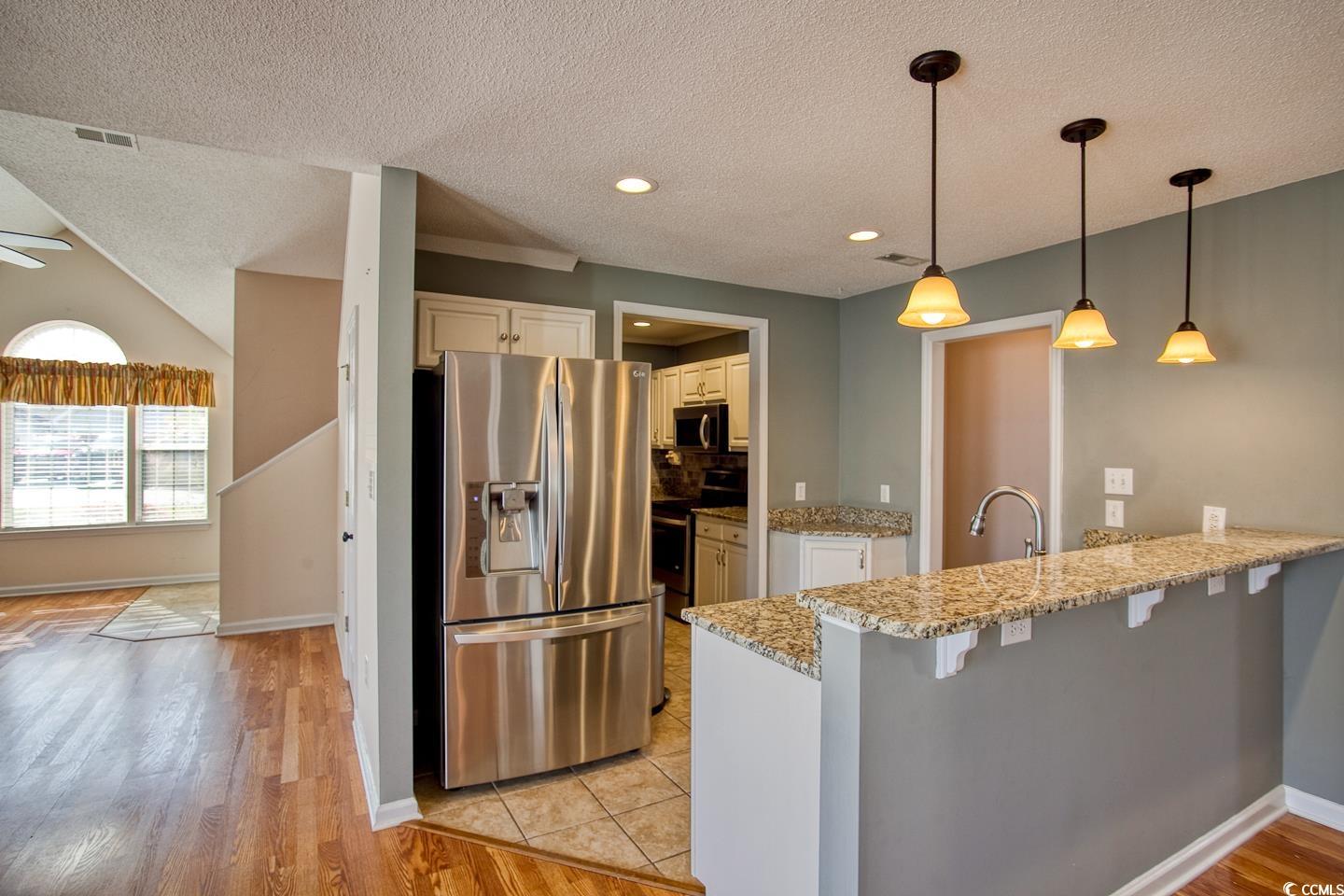 Welcome to coastal living at its finest—where comfort, convenience, and charm come together in this stunning single-family 4 bedroom, 3 bathroom home is just a golf cart ride from the beach. Designed with an open-concept floor plan, the main level features a spacious primary suite with a full bath, a welcoming guest bedroom with its own bathroom, and elegant finishes throughout. Upstairs, you'll find two additional bedrooms, a full bath, generous closet space, and a large walk-in attic for all your storage needs. The home conveys with thoughtful inclusions such as a kitchen refrigerator, garage refrigerator, washer and dryer, fireplace, and window treatments. Notable upgrades include granite countertops in every bathroom and the kitchen, a brand-new HVAC system installed in 2022, and a blend of tile and hardwood flooring downstairs with carpet and tile upstairs. With multiple walk-in closets, two kitchen pantries, and a huge backyard perfect for entertaining or relaxing, this home truly has it all. Nestled in the heart of Surfside Beach, you're just moments from local shops, grocery stores, hospitals, and some of the area's most beloved restaurants and seafood spots. Don’t miss your chance to own this exceptional property—schedule your showing today!