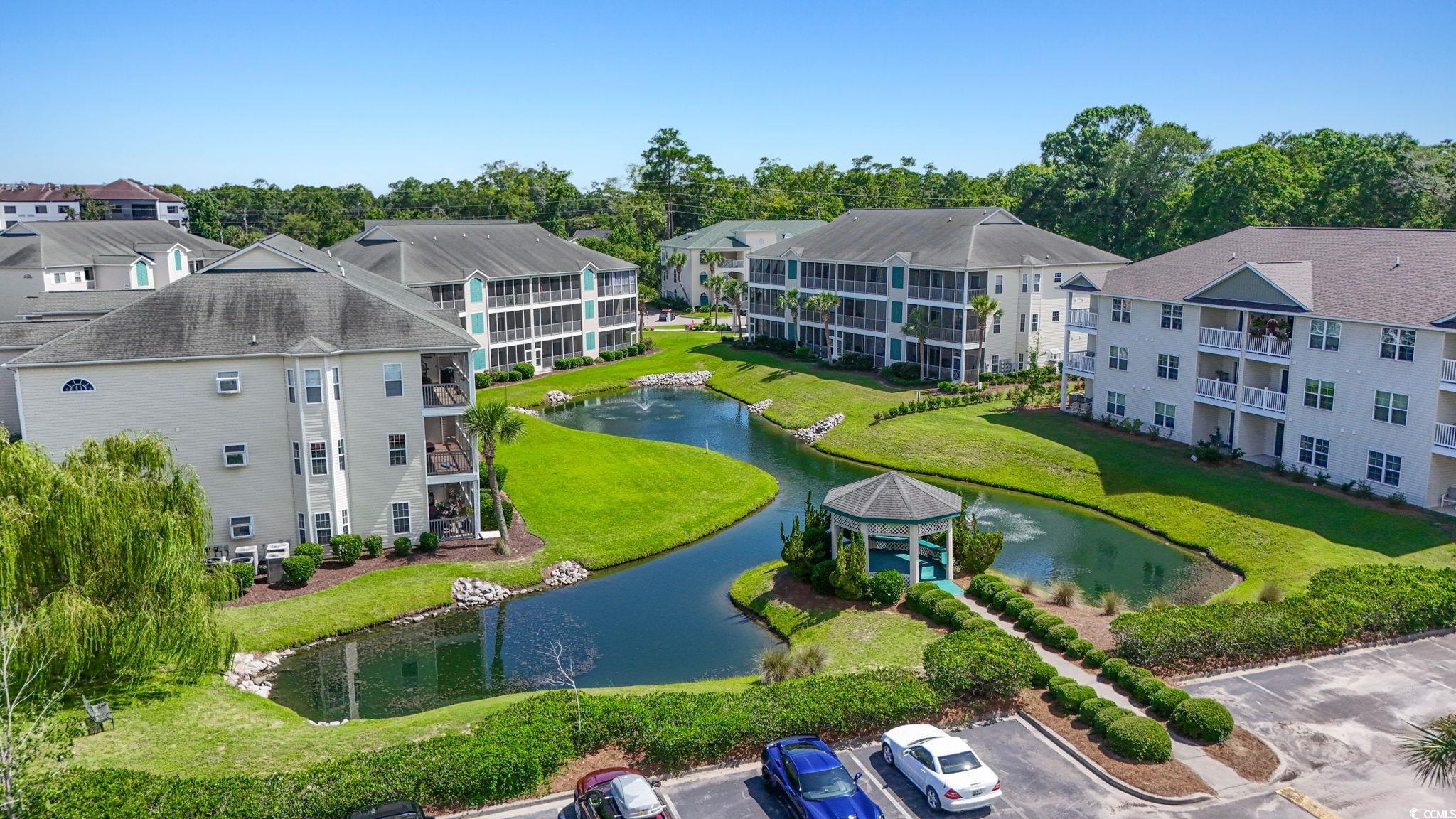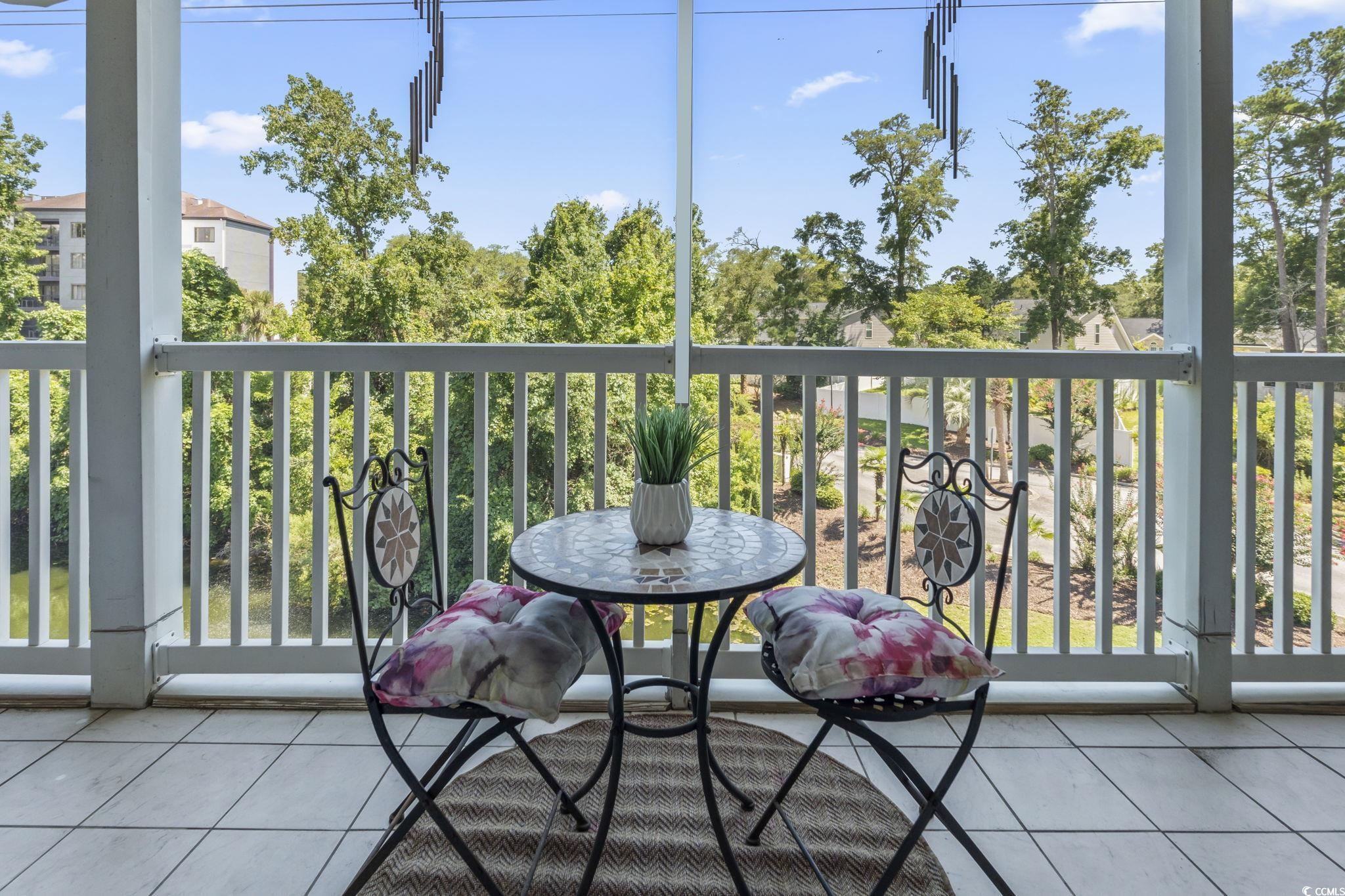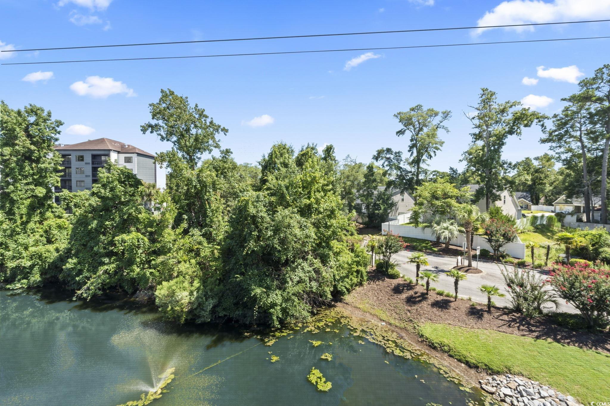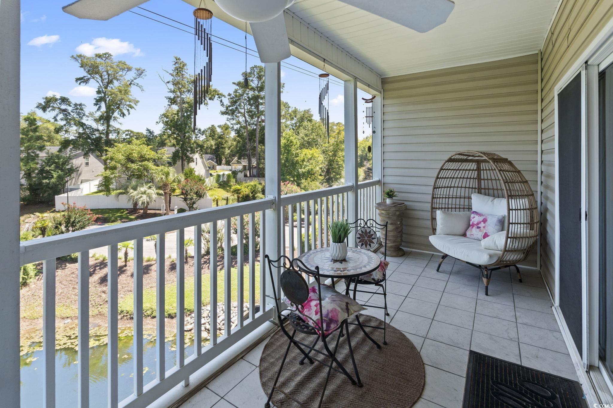 Spacious and beautifully furnished 3-bedroom, 2-bath top-floor villa offering 1,500 square feet of comfortable living space in an elevator building. Located in a quiet waterway community, this villa features vaulted ceilings and a large screened-in porch with peaceful pond views, accessible from both the living room and master bedroom. The open kitchen is equipped with granite countertops, a breakfast bar, a pantry, and upgraded finishes. The primary suite includes a spacious walk-in closet, an adjustable bed with head and foot elevation, and a private bath with dual vanities, and two additional closets for extra storage. The second bedroom offers an oversized closet, and the third bedroom features two closets, providing ample storage throughout. Additional highlights include tile flooring in the kitchen, bathrooms, laundry room, and porch, with laminate flooring throughout the remaining living spaces. Crown molding adds a touch of elegance in the kitchen, hallway, and bedrooms. Samsung washer and dryer, and HVAC system were replaced in 2018. Enjoy the community amenities, including a pool and hot tub overlooking the Intracoastal Waterway, a BBQ area, and beautifully landscaped grounds. All just one mile from the beach and conveniently located between Barefoot Landing and the Myrtle Beach Mall and Tanger Outlets. Easy access to Hwy 22 and Hwy 31 places you minutes from golf, dining, entertainment, and everything the Grand Strand has to offer. This is coastal living at its best!