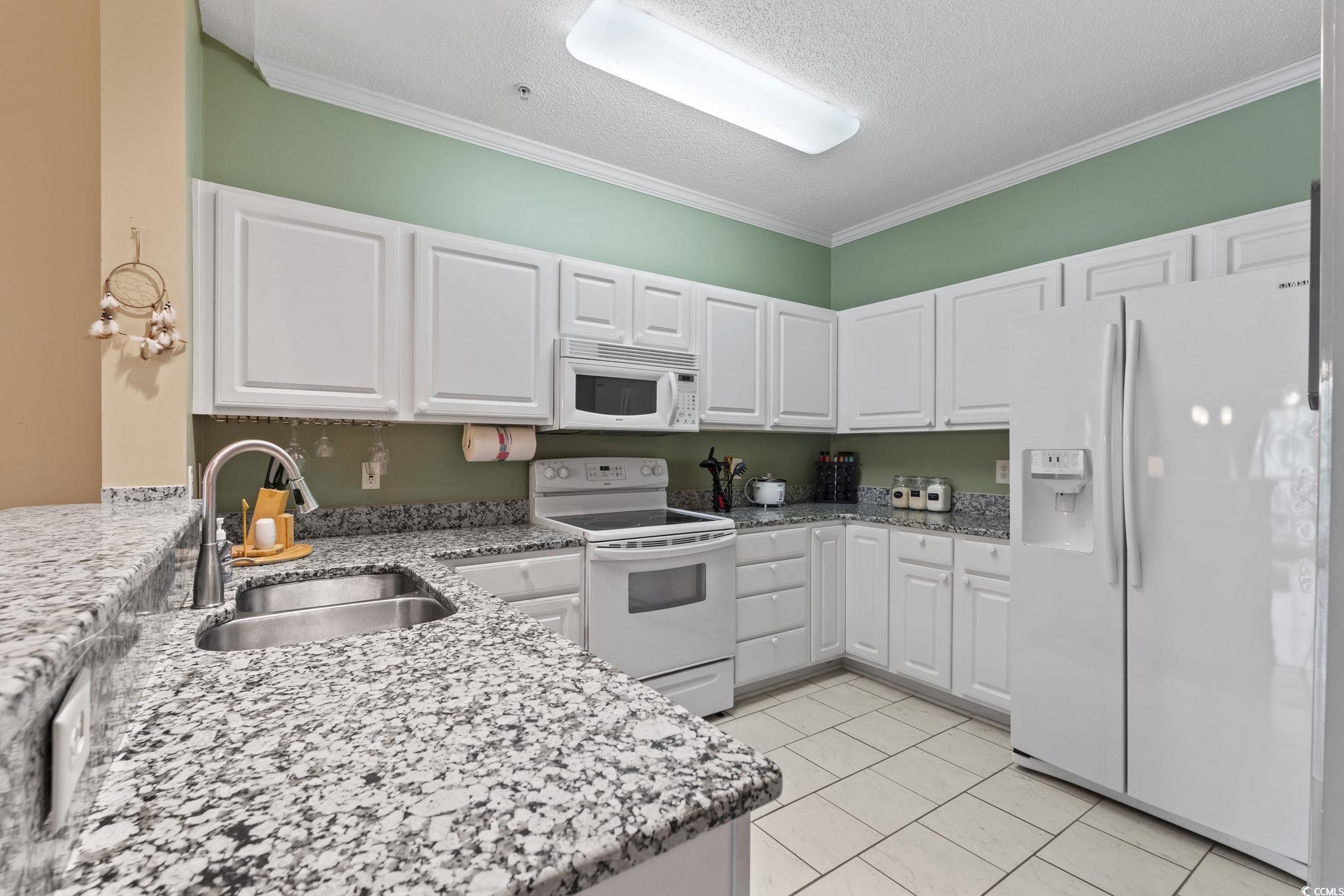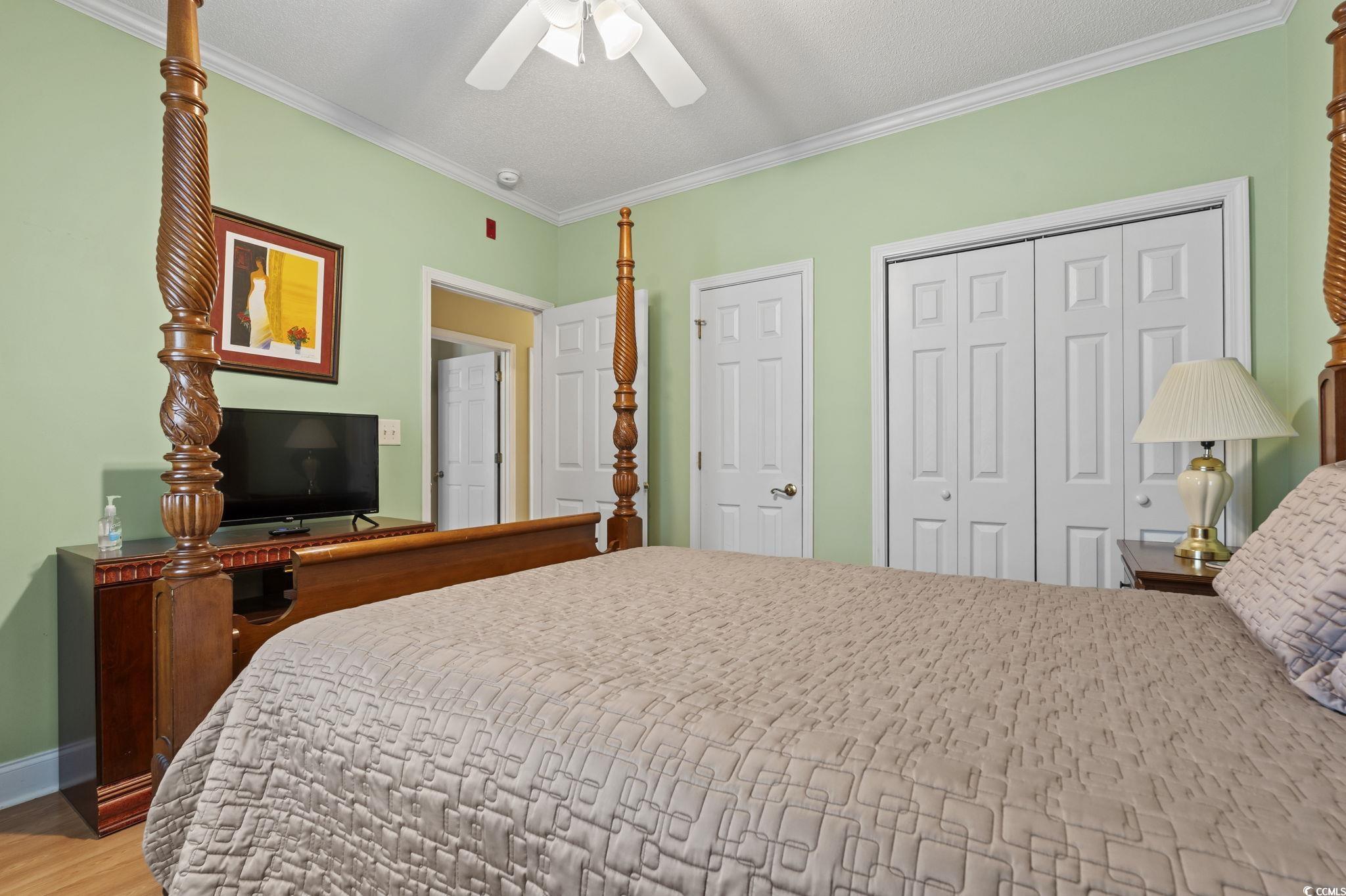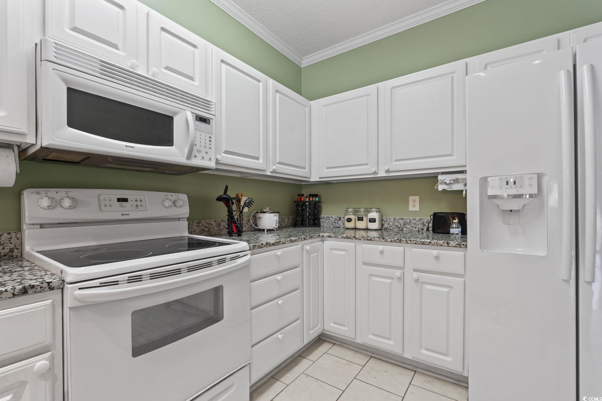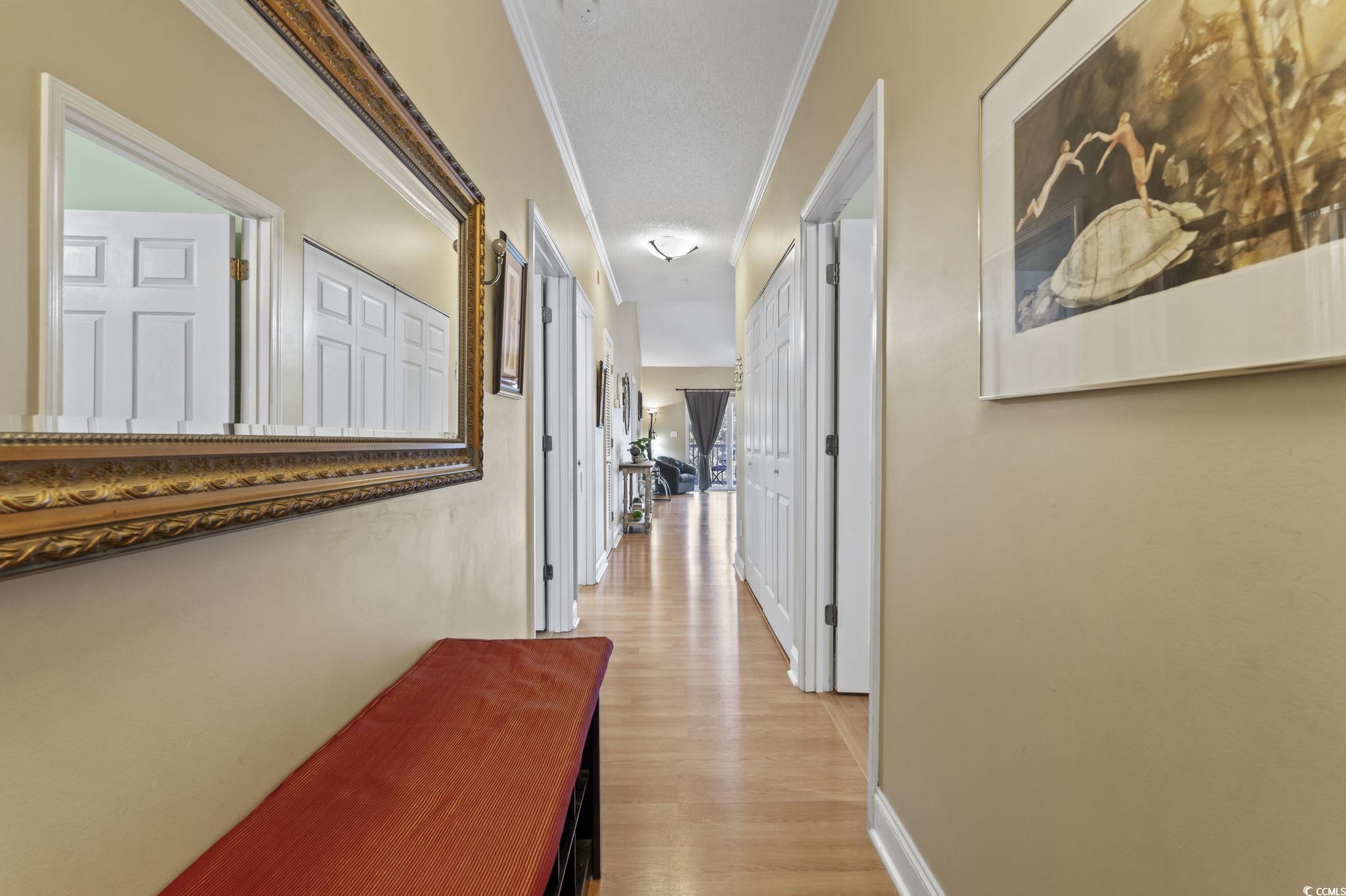Spacious and beautifully furnished 3-bedroom, 2-bath top-floor villa offering 1,500 square feet of comfortable living space in an elevator building. Located in a quiet waterway community, this villa features vaulted ceilings and a large screened-in porch with peaceful pond views, accessible from both the living room and master bedroom. The open kitchen is equipped with granite countertops, a breakfast bar, a pantry, and upgraded finishes. The primary suite includes a spacious walk-in closet, an adjustable bed with head and foot elevation, and a private bath with dual vanities, and two additional closets for extra storage. The second bedroom offers an oversized closet, and the third bedroom features two closets, providing ample storage throughout. Additional highlights include tile flooring in the kitchen, bathrooms, laundry room, and porch, with laminate flooring throughout the remaining living spaces. Crown molding adds a touch of elegance in the kitchen, hallway, and bedrooms. Samsung washer and dryer, and HVAC system were replaced in 2018. Enjoy the community amenities, including a pool and hot tub overlooking the Intracoastal Waterway, a BBQ area, and beautifully landscaped grounds. All just one mile from the beach and conveniently located between Barefoot Landing and the Myrtle Beach Mall and Tanger Outlets. Easy access to Hwy 22 and Hwy 31 places you minutes from golf, dining, entertainment, and everything the Grand Strand has to offer. This is coastal living at its best!