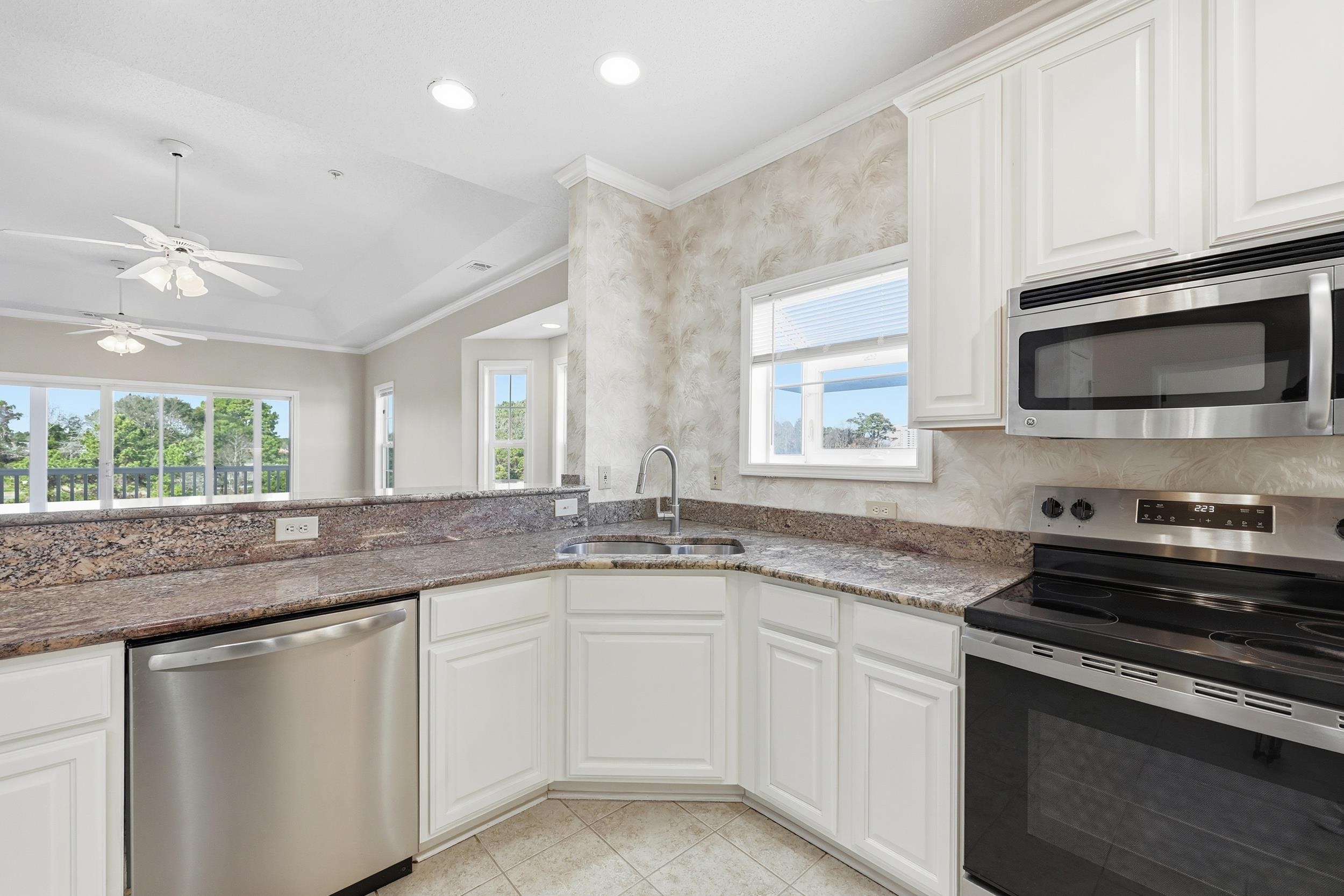waterfront Living at Its Finest. This beautifully updated 4th-floor corner penthouse at The waterfront at Briarcliffe offers rare, sweeping views of the Intracoastal Waterway, Barefoot Marina, and Greg Norman’s golf course—among the best in the community. Recent updates include luxury vinyl plank flooring, fresh interior paint, and updated bathroom vanities. The open-concept layout connects the living, dining, and kitchen areas and opens to a screened-in balcony, perfect for enjoying passing boats, coastal breezes, and seasonal fireworks from Barefoot Landing. The primary suite features an en-suite bath and generous closet space, with additional bedrooms offering flexibility for guests or rental use. Community amenities include a pool, hot tub, and water access. Ideally located across from Barefoot Golf Course and Barefoot Marina, and minutes to Barefoot Landing dining, shopping, and entertainment—ideal as a primary residence, second home, or investment opportunity in Myrtle Beach.