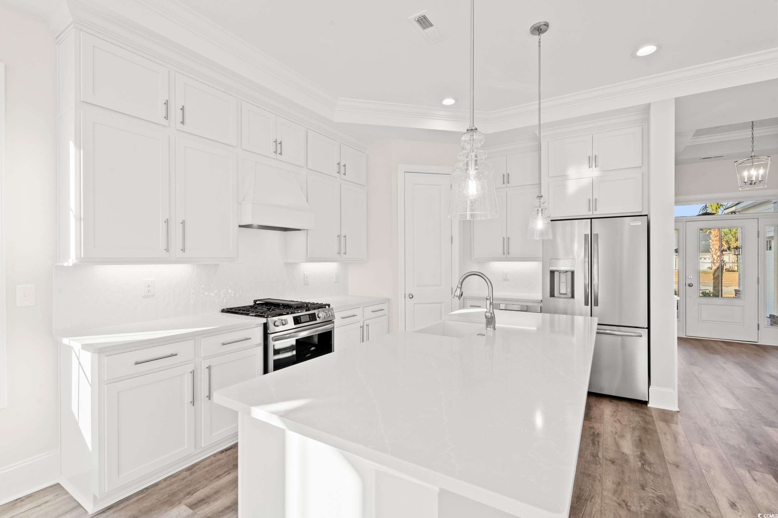 Custom home at the beautiful Wild Wing Plantation community! Traditional floor plan with Master Bedroom, which has 2 walk-in closets and 1 additional bedroom on the first floor, 2 additional bedrooms and a full bathroom is upstairs. This home has an open floor plan with waterproof vinyl planking on entire first level, quartz countertops with shaker style white staggered cabinets in the kitchen and all bathrooms, stainless steel appliances with a gas stove. The master bathroom has a tiled shower with door and linen closet. The Living Room will have an electric fireplace surrounded by bookshelves, Crown Molding in main areas, wainscoting in Foyer and Dining, wood shelving in Master Closet and pantry and so much more. Exterior of the home is Hardie Plank with brick perimeter and a large covered rear porch with nicely landscaped flower beds, sodded yard and irrigation. Wild Wing Plantation offers Golf Courses, Clubhouse, 3 Pools, Splash Zone/Water Slide, Kid’s Playground, Picnic Area, Fitness Room, Lighted Tennis Courts, Basketball Court, Private Community Day Docks with Boat Ramp and Parking, and On-site Boat and RV Storage. Building lifestyles for over 40 years, we remain the premier home builder along the Grand Strand. We’re proud to be the 2021, 2022, 2023, 2024 and 2025 winners of both WMBF News' and The Sun News Best Home Builder award, 2023, 2024 and 2025 winners of the Myrtle Beach Herald's Best Residential Real Estate Developer award, 2025 and 2024 winners of The Horry Independent’s Best Residential Real Estate Developer and Best New Home Builder award. Welcome Home at Wild Wing Plantation!