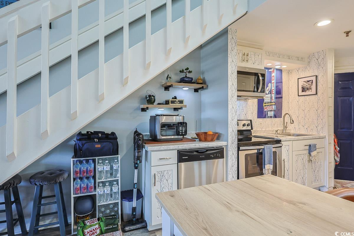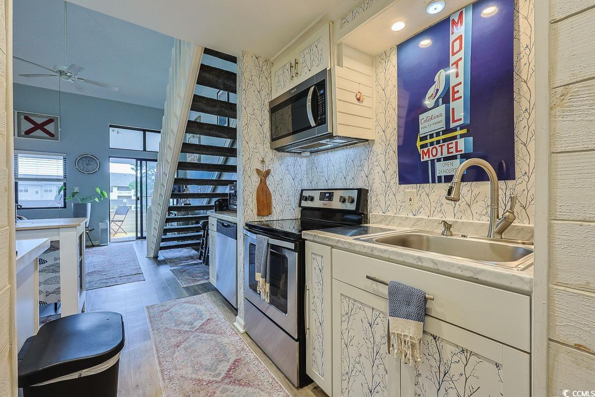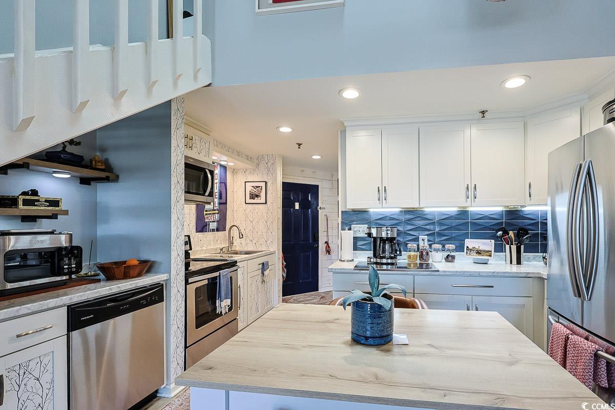 Discover a unique opportunity with this 1-bedroom, 1-bathroom loft-style condo at 1100 Possum Trot Rd Unit G324! Designed with creativity and comfort in mind, this unit features a charming floor plan with smooth ceilings, fresh paint, and an open living area filled with natural light. A set of stairs leads to the spacious upstairs bedroom, while the full bathroom is conveniently located on the main level for easy access for both you and your guests. The condo also includes a full-size stackable washer and dryer for added convenience and is being offered with some furnishings included, making it even easier to move right in or start enjoying immediately. Step out onto your private balcony with views of the community grounds, the perfect spot for morning coffee or evening relaxation. Recent updates to the building include a new fire suppression system, and the assessment for exterior trim painting and interior hallway remodeling has already been paid, giving you peace of mind and added value. Residents of this community enjoy access to a sparkling outdoor pool, tennis courts, and well-maintained common areas, perfect for soaking up the coastal lifestyle. Located in the heart of North Myrtle Beach, you’ll be just minutes from the sandy shoreline, Cherry Grove and Ocean Drive beaches, championship golf courses, shopping, dining, and entertainment at Barefoot Landing. With easy access to Hwy 17 and Hwy 31, commuting or exploring the Grand Strand is a breeze. Whether you’re searching for a primary home, vacation getaway, or income-producing investment property, this condo offers the perfect blend of comfort, convenience, and coastal charm.