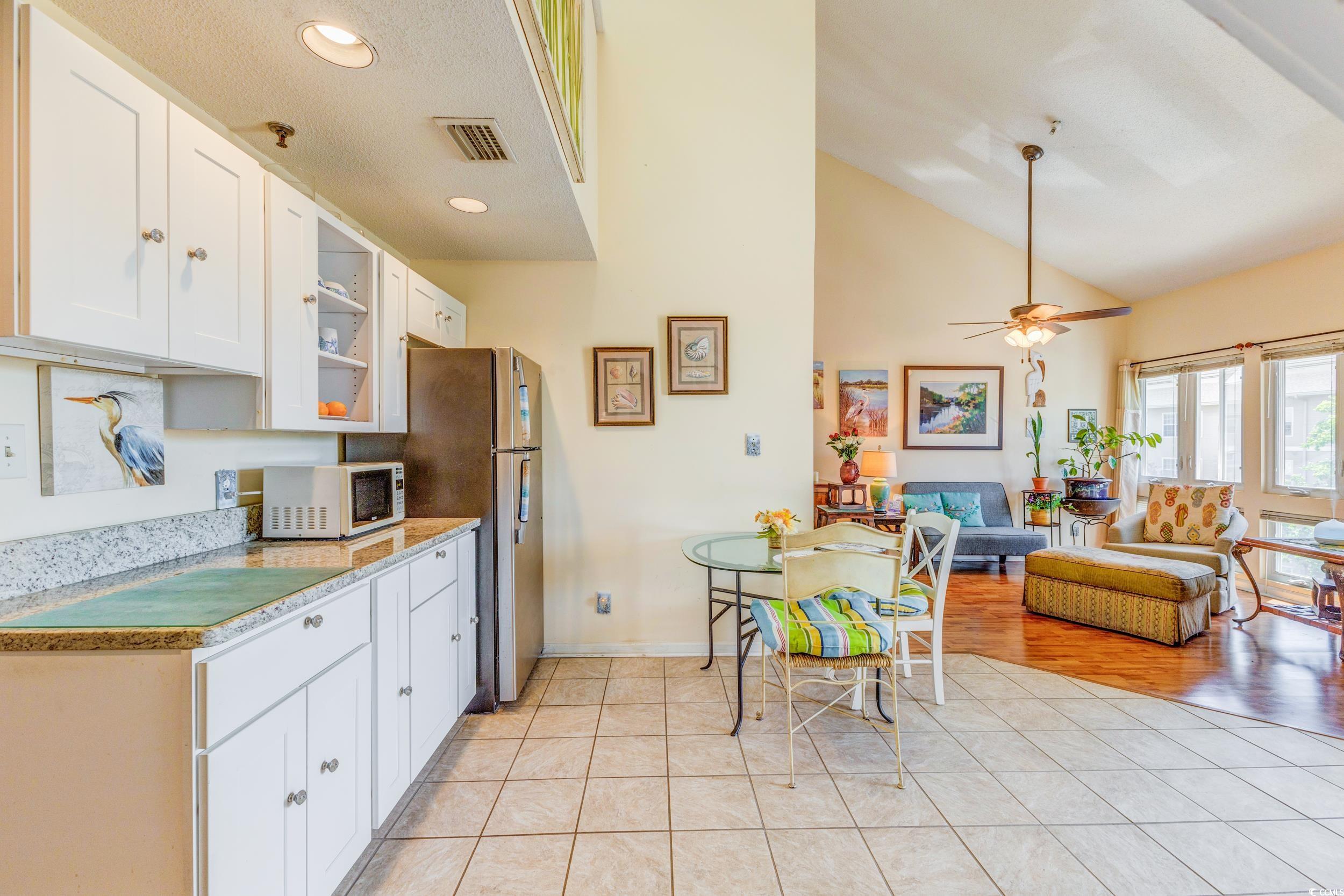 Discover your peaceful coastal escape at 1100 Possum Trot Rd.! Perched on the 3rd floor, this energy-efficient, fully furnished 1-bedroom, 1-bathroom condo offers stunning views of North Myrtle Beach. Inside, you'll find central heating and air, dramatic cathedral ceilings, and an abundance of natural light that seamlessly blends the indoors with the serene outdoors, perfect for embracing that laid-back beach lifestyle. The spacious loft-style bedroom, complete with a skylight, provides generous closet space and a bright, breezy ambiance. Step out onto your private balcony to sip your morning coffee or unwind with a glass of wine as you take in the peaceful surroundings. Just a short 5-minute golf cart ride or a leisurely 10-minute stroll brings you to the sandy shoreline. Nestled in a quiet yet convenient neighborhood in the heart of North Myrtle Beach, you're only moments away from beautiful beaches, lively restaurants, boutique shopping, and top-notch entertainment. Right next door is the Bryan Floyd Community Center, offering a wide range of recreational activities including basketball, soccer, tennis, pickleball, baseball, and softball. You're also just minutes from Barefoot Landing, the Atlantic Ocean, and so much more. Renovated in 2021, the condo boasts modern upgrades such as granite countertops, soft-close cabinetry, stainless steel appliances (refrigerator, stove, and dishwasher), and stylish new flooring. The HVAC system was refurbished in 2024, and laundry facilities are conveniently located just steps from your door. Whether you're looking for a full-time residence, a vacation retreat, or a smart investment opportunity, this condo checks all the boxes. Pet-friendly and golf cart-friendly, with a dedicated community parking area nearby—this is coastal living made easy. Come see how comfort and convenience come together in this charming beachside haven!