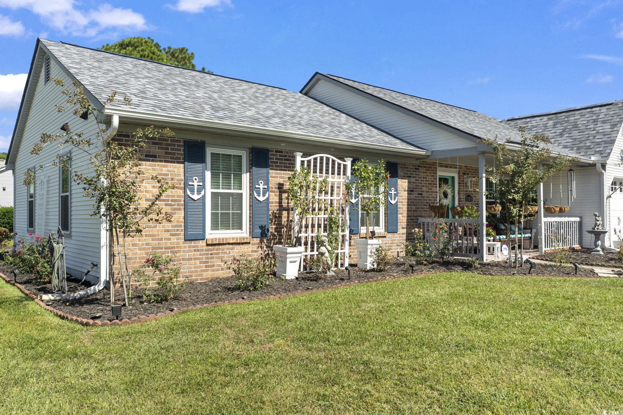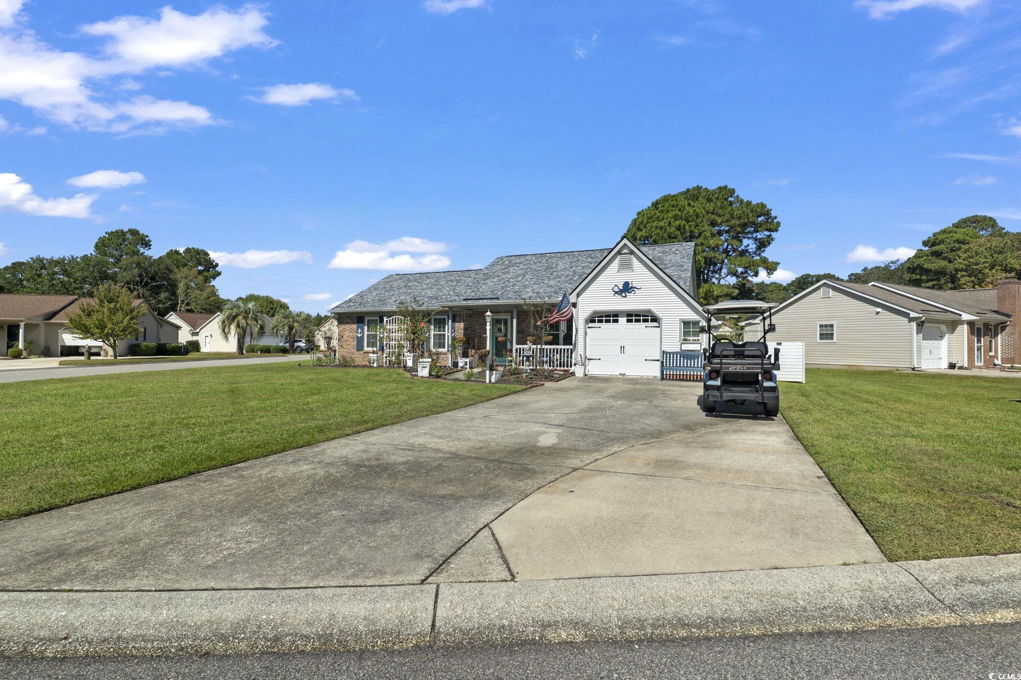 This Updated 3 Bedroom 2 Bath located in Murrells Inlet East of 17 Bypass is a golf cart ride to Garden City Beach. The home is located in Very Popular Woodlake Village. Woodlake Village is a Vibrant 55+ community that offers a variety of amenities including an outdoor pool, clubhouse, shuffle-board and pickle ball courts. The home boasts a spacious living area featuring high vaulted ceilings and sky lights offering natural light. The bright and airy kitchen boasts stainless steel appliances, 42" wood cabinets, corian counters and plenty of storage space for cooking and entertaining. One of the highlights of this home is the Carolina room providing great views offered from this corner lot location. Many of the upgrades include: NEW HVAC, 2024 NEW ROOF, Hot Water Heater, Irrigation pump,Storm door, Garage door, Garage Door Motor, Mini-Split in Garage, New Window Shutters, dishwasher, stove,All plugs and light switches, window blinds, light fixtures and ceiling fans. So Many upgrades and improvements!! Located in Murrells Inlet close to all Restaurants, Shopping, and BEACH!