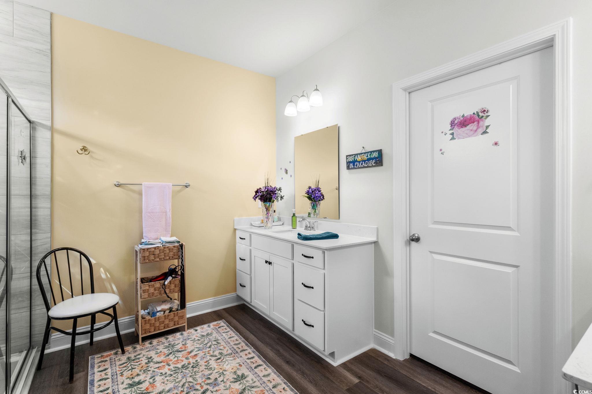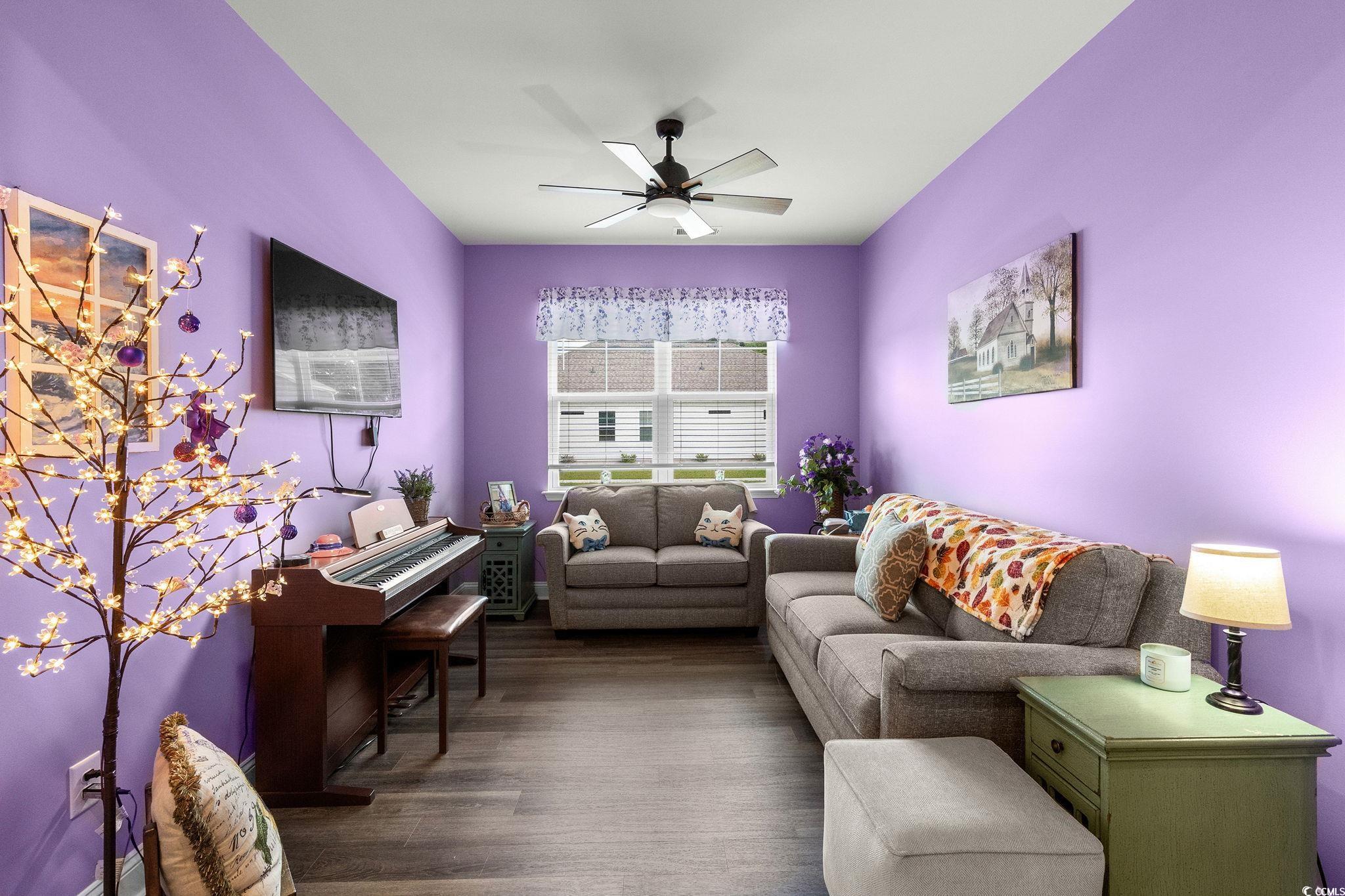 This thoughtfully designed home in The Retreat at Wild Wing offers a split bedroom layout, giving the owner’s suite added privacy at the rear of the home. The open-concept kitchen, living, and dining areas are perfect for entertaining. This home features crown molding, a chef’s dream kitchen with 36" painted cabinetry, sleek quartz countertops, and stainless steel Whirlpool appliances. A flexible front room on the main level is ideal for a home office, study, or formal dining space. The owner’s bath is sure to impress with dual vanities, a 5' walk-in shower with stability bars added, and a massive walk-in closet with custom shelving. Enjoy the outdoors with a fenced-in backyard and a screened-in rear porch—perfect for relaxing or entertaining. Home is under one year builder warranty until March 2026. Electrical, Heating & Cooling, and plumbing systems have a 2 year transferrable warranty. Home also has a 10-year structural warranty that is transferrable. Appliances are also registered with the manufacture extended warranty that is transferrable. Seller is open to repainting the purple flex room if requested.