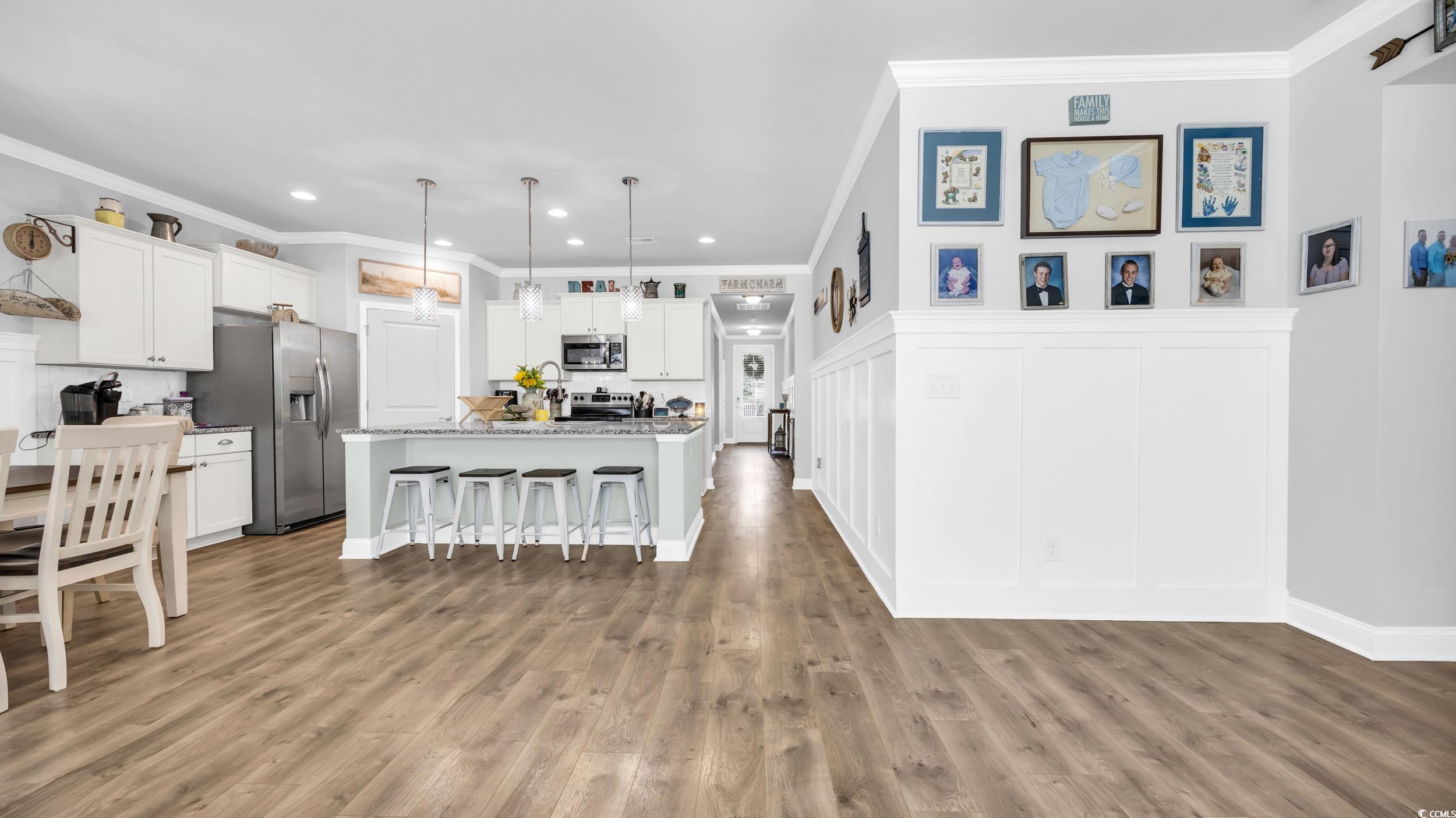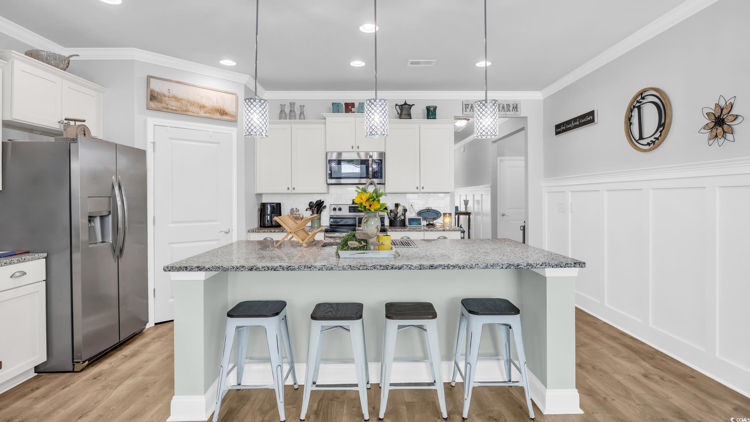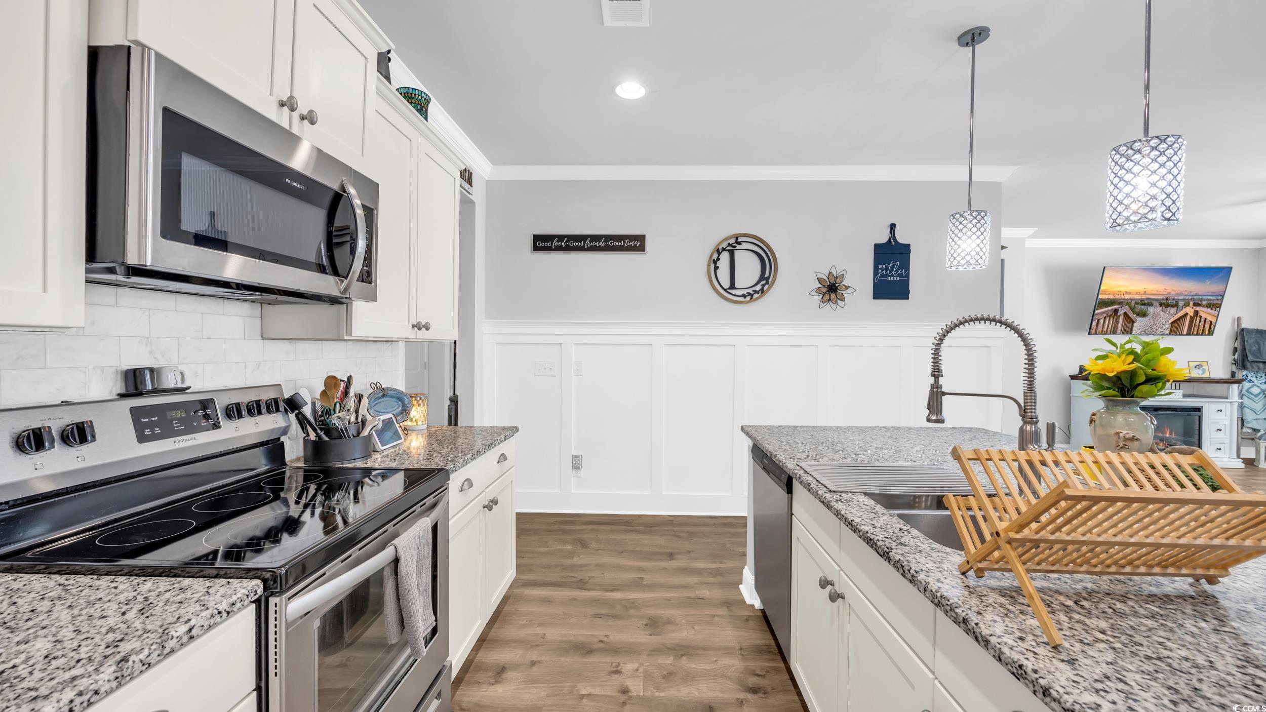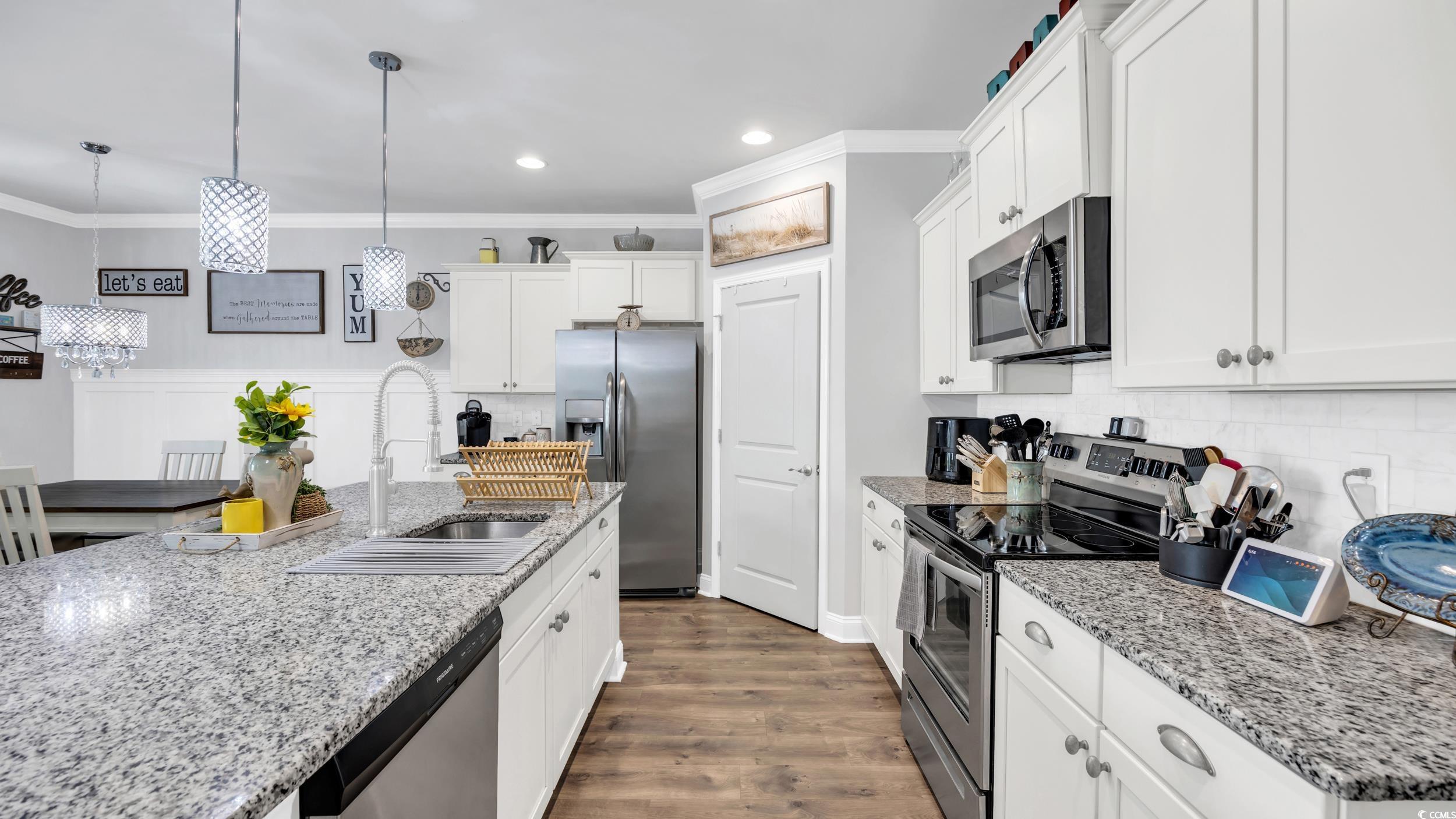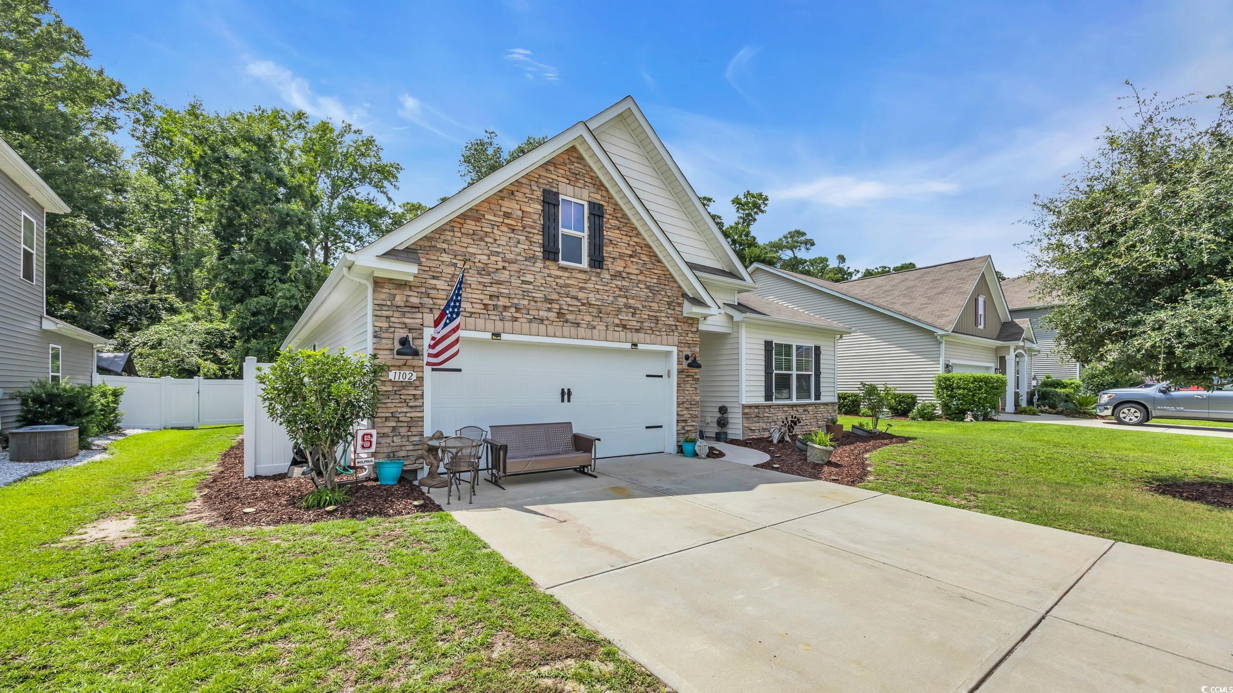 Ranch Home in highly desirable community of Water's Edge in North Myrtle Beach. Just a golf cart ride down the path to Cherry Grove Beach. This home backs up to Woods, has a fenced in back yard and features 4 full bedrooms, 2 full baths and a 2 car garage. It's an open concept layout with Granite counters, recessed and pendant lighting, Stainless Steel Appliances. New Paint throughout. The Screened-in porch is one of the best features. The closets in this home are huge! Pantry Closet, Custom Shelving in Owner's closet, and more! Water's edge community features irrigation and mowing included in the HOA, community center, Pool, and fitness area. You are just minutes away from Barefoot landing shopping and dining, and the intracoastal waterway.