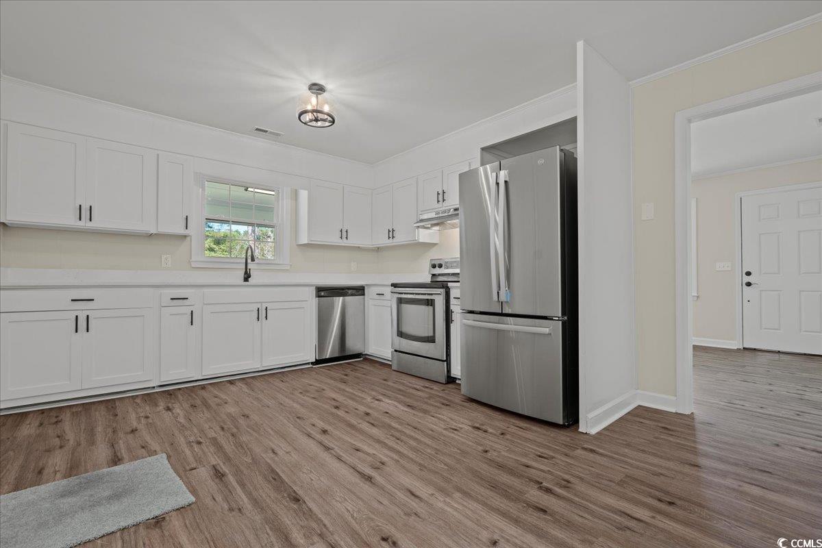 Welcome to 1103 Penderboro Road, Marion, SC—a beautifully renovated home situated on a spacious 0.92-acre lot offering true country living with modern updates. This charming 3-bedroom, 1-bath home features approximately 1,030 sq. ft., an attached carport, and a blend of fresh upgrades throughout. Enjoy stainless steel appliances, LVP flooring, fresh interior paint, a new roof, and an updated kitchen and bath. The property is on public water with a septic system, and also includes outside storage for added convenience. Located in a quiet rural area of Marion County with no HOA and no city taxes, this property is eligible for USDA, FHA, and VA financing. A rare opportunity to enjoy affordable, turnkey living in a peaceful setting—don’t miss it!