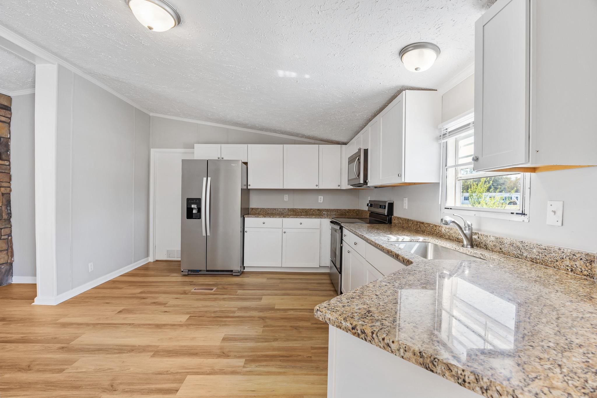 Spacious 4 bedroom 2 bath manufactured home on .30 acre lot with a large fenced back yard and 2 large porches with NO HOA fees! Nice curb appeal with a large drive way and metal roof! Split floor plan with a open concept family room featuring a stone fireplace and vaulted ceilings. Kitchen features stainless steel appliances and granite countertops. Owners suite features a 13x13 sitting room, ceiling fan and walk in closet. Owners bath features double sinks with quartz countertops, walk in shower and garden tub. Huge fended in back yard with a detached storage shed. This home is located just a short drive from downtown Conway. Do not pass up your chance to own this lovely home, call today to schedule your showing!