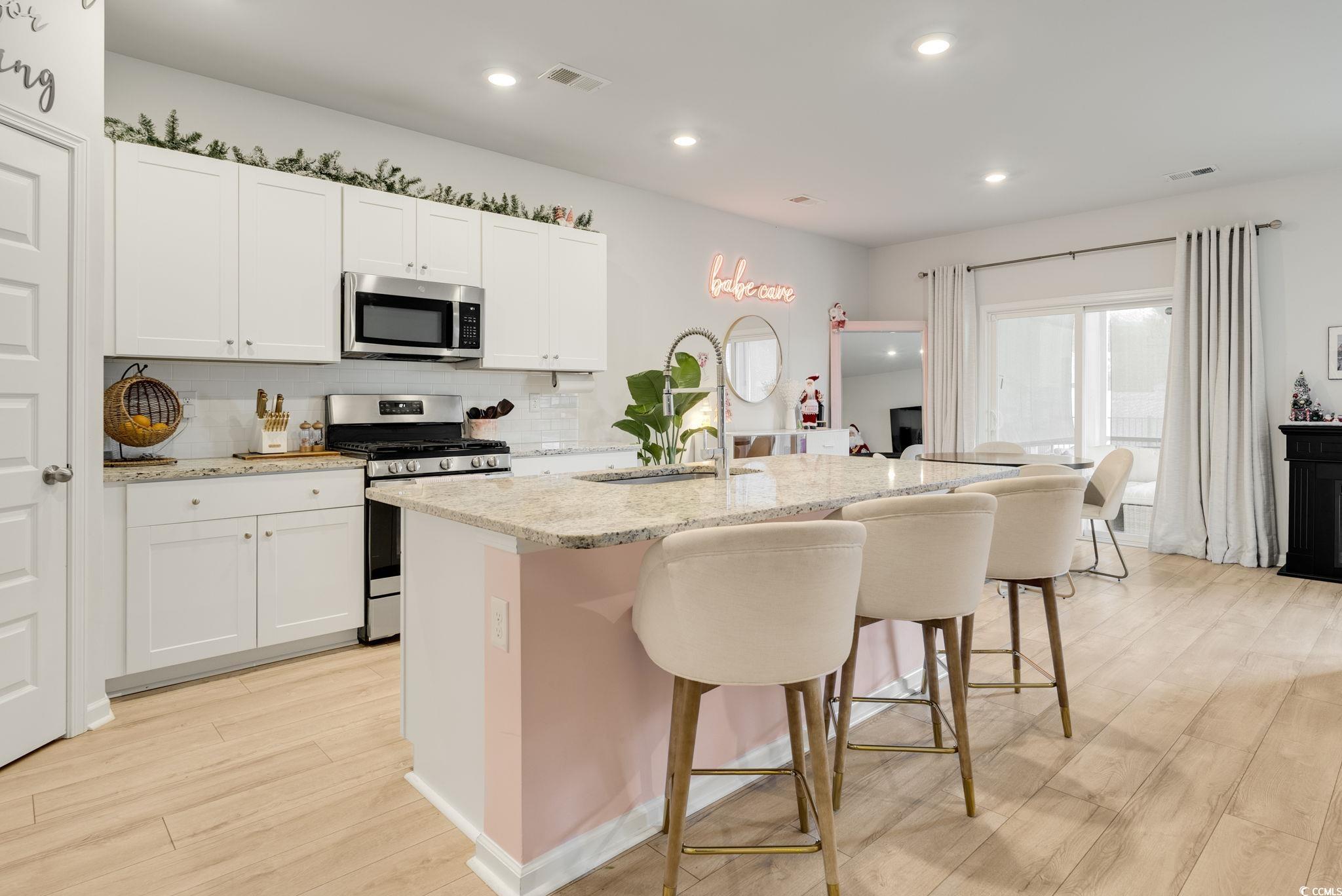 This beautiful 4 Bedroom, 2 Bath home located in Cooper's Bluff community is a must see! This newly constructed home was built in 2022 and is a spacious 2,265 square feet consisting of several UPGRADES! At 1104 Saltgrass Way you will be welcomed into an amazing Cooper's Bluff community that boasts new homes, community park and pool, and is secured by hired private security! This home located in the Socastee school district contains upgrades both outside and inside as the owners spared no expense! Outside you will enjoy a spacious fenced-in back yard with 4' aluminum fence upgrades! Within the fenced in area, you can enjoy time with friends and family in the added 10'x12' screen-in porch watching television from the mounted tv or grilling on the added 10'x20' concrete patio connecting to the porch! Other upgrades on the outside of this gorgeous home include river rock landscaping design with many added plants for decor. The home a smart home and also protected with ring doorbell and ring alarm systems. Inside the house you will be delighted to see stainless steel GE appliances in the kitchen and GE Washer/Dryer in the utility room! This cozy home comes with an added electric fireplace and blackout curtains for ultimate comfortability and privacy! The master bedroom is equipped with a huge walk-in closet and its own bathroom! The remaining 3 bedrooms and 1 Bath make this home great for families, those starting families, or anyone who has friends and family that frequent the beach! Whether it's enjoying the community pool or a short ride to the beach you won't be disappointed in this home or it's amazing location! Enjoy the virtual tour attached in this listing and schedule your viewing today to see 1104 Saltgrass Way!