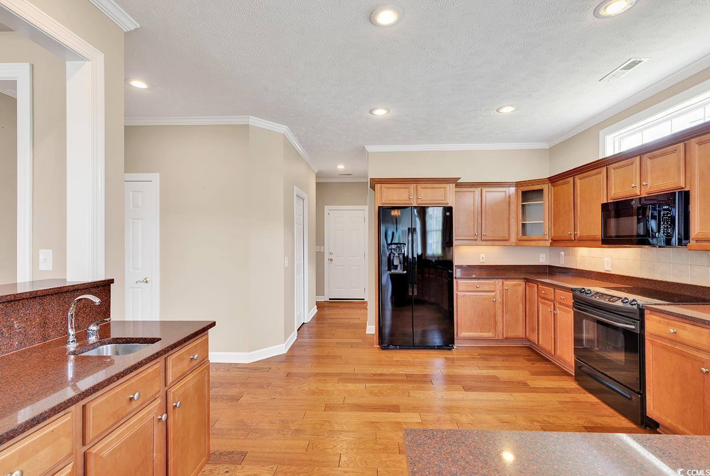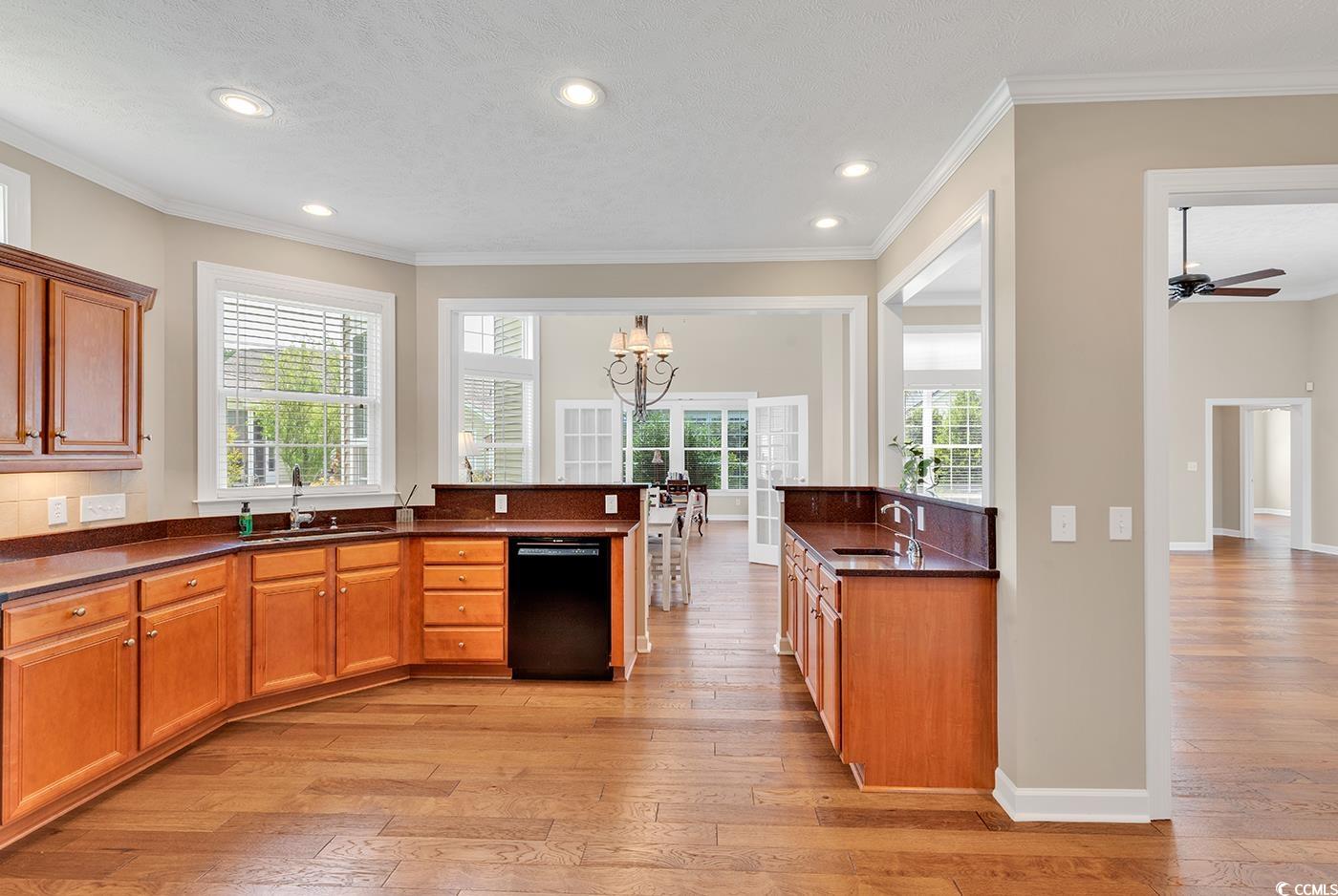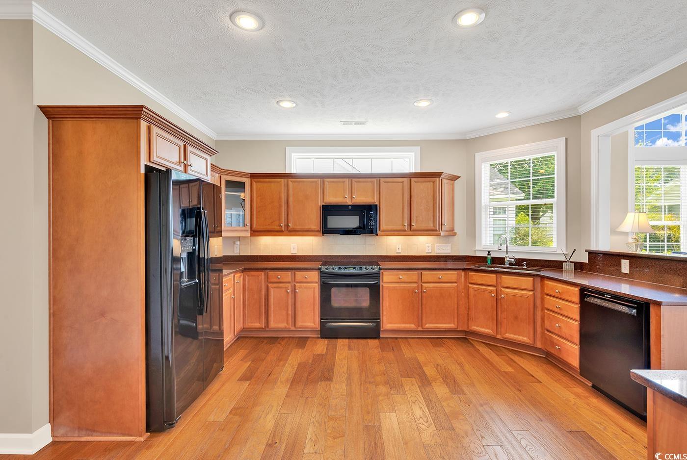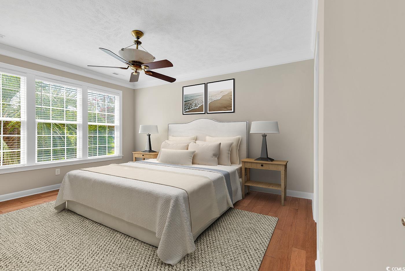 This spacious custom built home is located on a cul-de-sac in the Pebble Creek community of the International Club. Three spacious bedrooms are located on the first floor with a bonus room upstairs that could be a 4th bedroom, game room, or office. A new roof was installed in 2020 and 2 Trane HVAC units were installed in 2022. New windows, wood flooring, refrigerator, microwave, dishwasher, and exterior siding were installed within the last 4 years - plus a new irrigation controller in 2023 and a SunSetter patio awning in 2024! The home has beautiful floors, high ceilings, and lots of natural lighting. The large family room has a gas fireplace and plenty of space for family time or entertaining. The Carolina Room is the perfect place to relax and read or watch your favorite movie. The formal dining room area could also be used as an office area if you need 4 bedrooms and an office. The kitchen features lots of cabinets with slide-outs, a wet bar or food prep area, large pantry, and a storage closet. The spacious master bedroom has a large walk-in closet and the master bathroom has double sinks with a vanity, garden tub, shower, linen closet, and water closet. Relax on the private back patio or entertain family and friends while grilling your favorite meal and enjoying the mature landscaping. The home also has plenty of storage space, a Watts hot water recirculation pump, a 2-car garage with shelves and a utility sink, plus drop down stairs leading to floored attic space. You can also walk into the attic storage area from the upstairs bonus room. This community has a lot to offer with a large amenities center including a club house, children's playground, library, fitness center, and large walk-in pool. Located in the International Golf Club in Murrells Inlet, it’s a short drive to the ocean in Garden City Beach, the Murrells Inlet Marshwalk, shopping, dining, entertainment, and medical facilities. Schedule your showing today!
