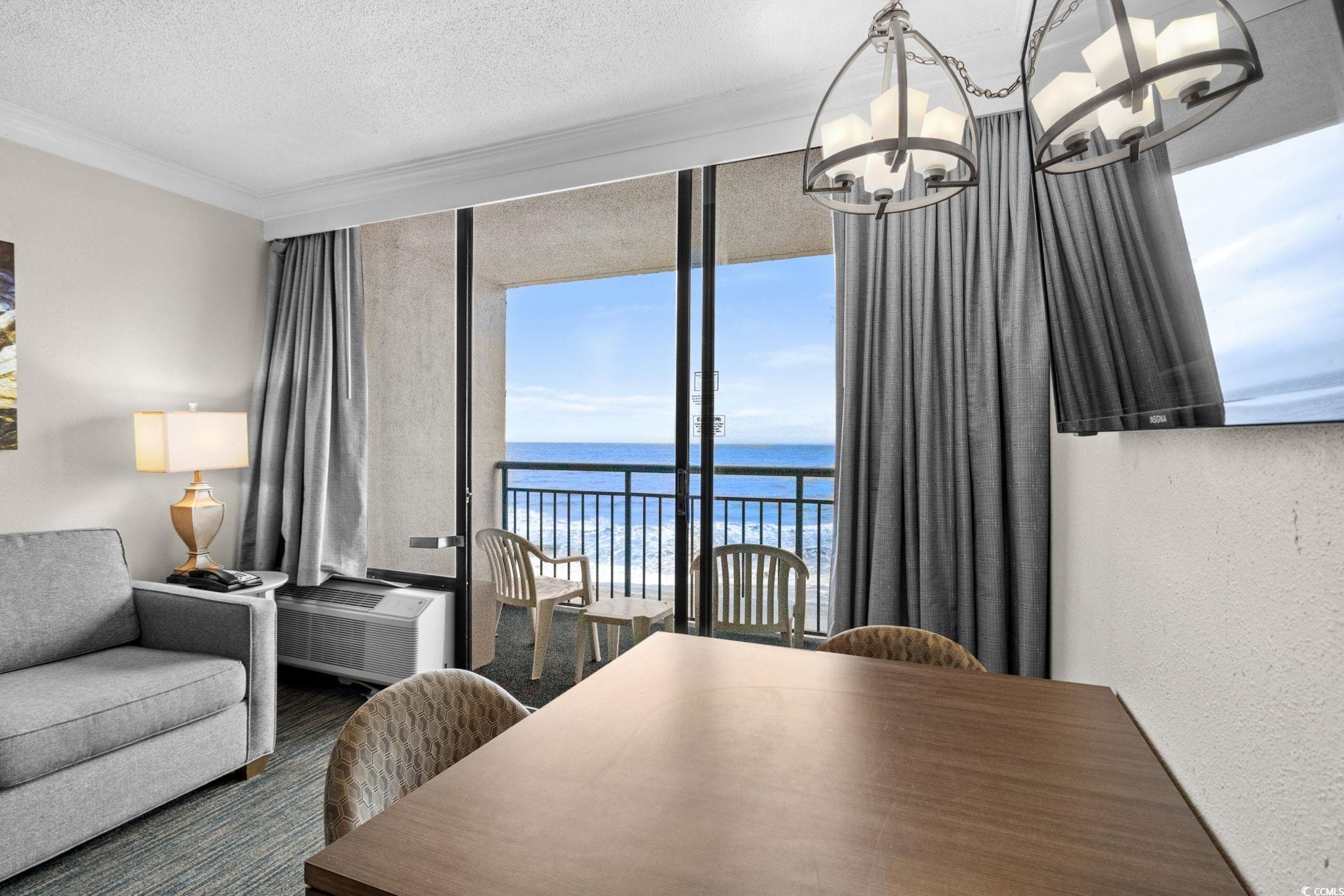 Welcome to your oceanfront getaway at Coral Beach Resort in Myrtle Beach, the perfect vacation retreat for owners and guests alike. This amenity-packed resort is designed for fun, relaxation, and lasting memories. Enjoy an entertainment zone complete with bowling, arcade games, a snack bar, and an ice cream shop. The resort also features a fitness room, business center, resort shop, and five on-site eateries, including a pool bar and café. With indoor and outdoor pools, a lazy river, hot tubs, and a children’s water park, Coral Beach offers something for everyone to enjoy. Located on the 5th floor, this beautifully decorated one-bedroom condo provides the ideal height for stunning ocean views without being too high or low. Take in breathtaking views of the ocean directly from the kitchen and living area or relax on your private balcony, which offers concrete privacy walls on both sides. Inside, you’ll find a full kitchen with warm brown cabinetry, granite countertops, and black appliances. The bedroom includes two queen beds and, unlike some other units, features a door that separates it from the living area for added privacy. The living room also includes a Murphy bed, offering flexible sleeping space for guests. Sold fully furnished and ready, this condo is an excellent opportunity to own a piece of one of Myrtle Beach’s most popular resorts. The homeowners association covers all utilities and building insurance. With its unbeatable amenities, prime oceanfront location, and proven guest appeal, this Coral Beach condo is the perfect place to create unforgettable vacation experiences. Located close to Market Commons Shopping and Dining District, Broadway at the Beach, and all the Grand Strand has to offer! Rest easy knowing you are only a short drive from wonderful dining, entertainment, and shopping options. HOA information has been provided to the best of our ability. All information should be verified and approved by the buyer. Square footage is approximate and not guaranteed. The buyer is responsible for verification.
