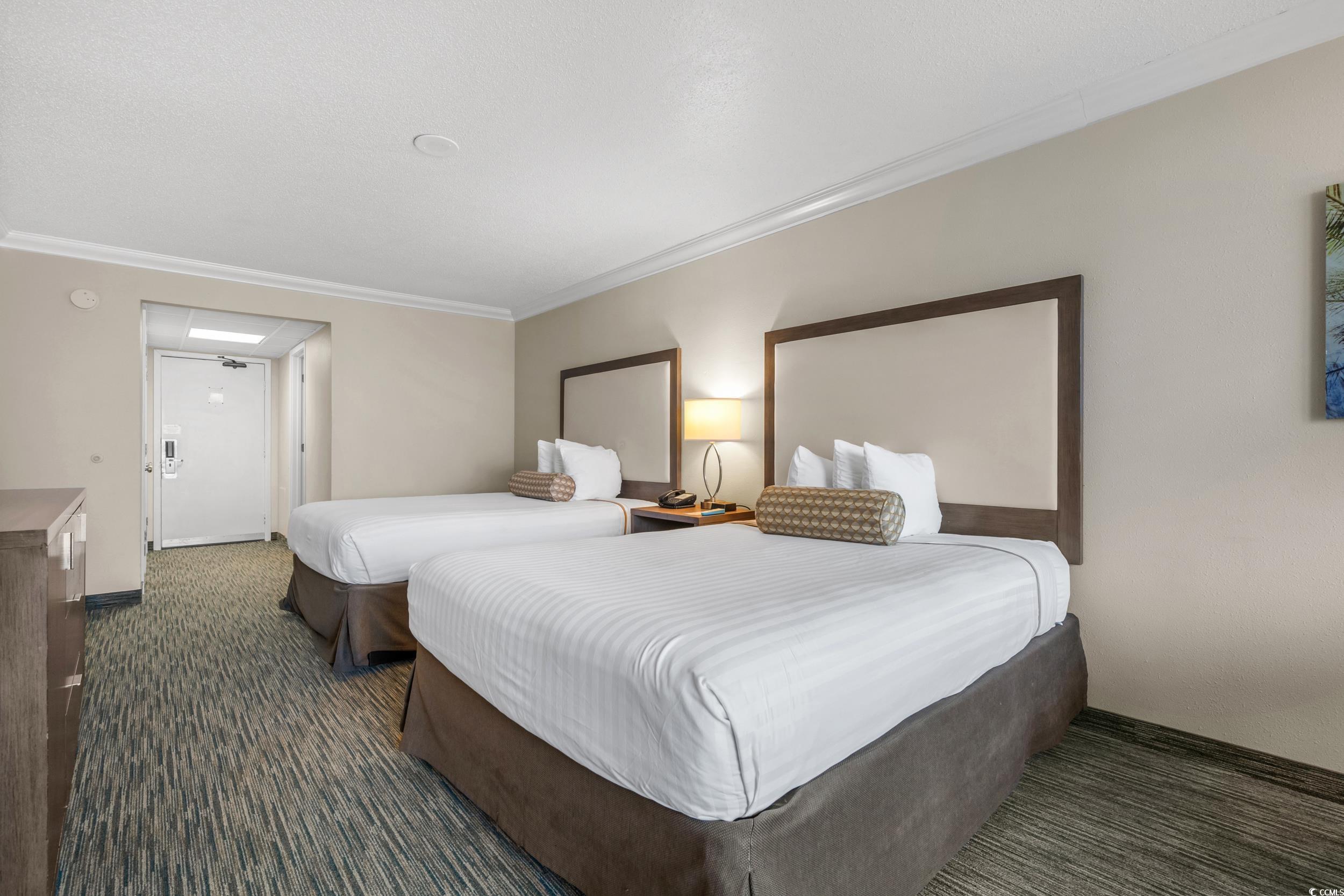 Welcome to beautiful Coral Beach Resort right on the oceanfront of Myrtle Beach! Wake up to ocean views and sounds in this furnished efficiency unit with a private balcony. This welcoming unit features two queen beds, a sitting area, a mini refrigerator, microwave, coffee maker and a bath tub with shower. This is a wonderful get away haven that is sought after for vacation rentals or to enjoy for yourself. There is no shortage of resort amenities with outdoor pools, and indoor pool, gym, lazy rivers, bars, restaurant, hot tubs, arcade, laundry facility, shopping, and even a bowling alley. Coral Beach is located in the heart of Myrtle Beach with a large selection of entertainment routes from Broadway at the Beach, Market Common, Myrtle Beach State Park, the beautiful Atlantic Ocean itself, and the Boardwalk. A great opportunity to own your slice of paradise!
