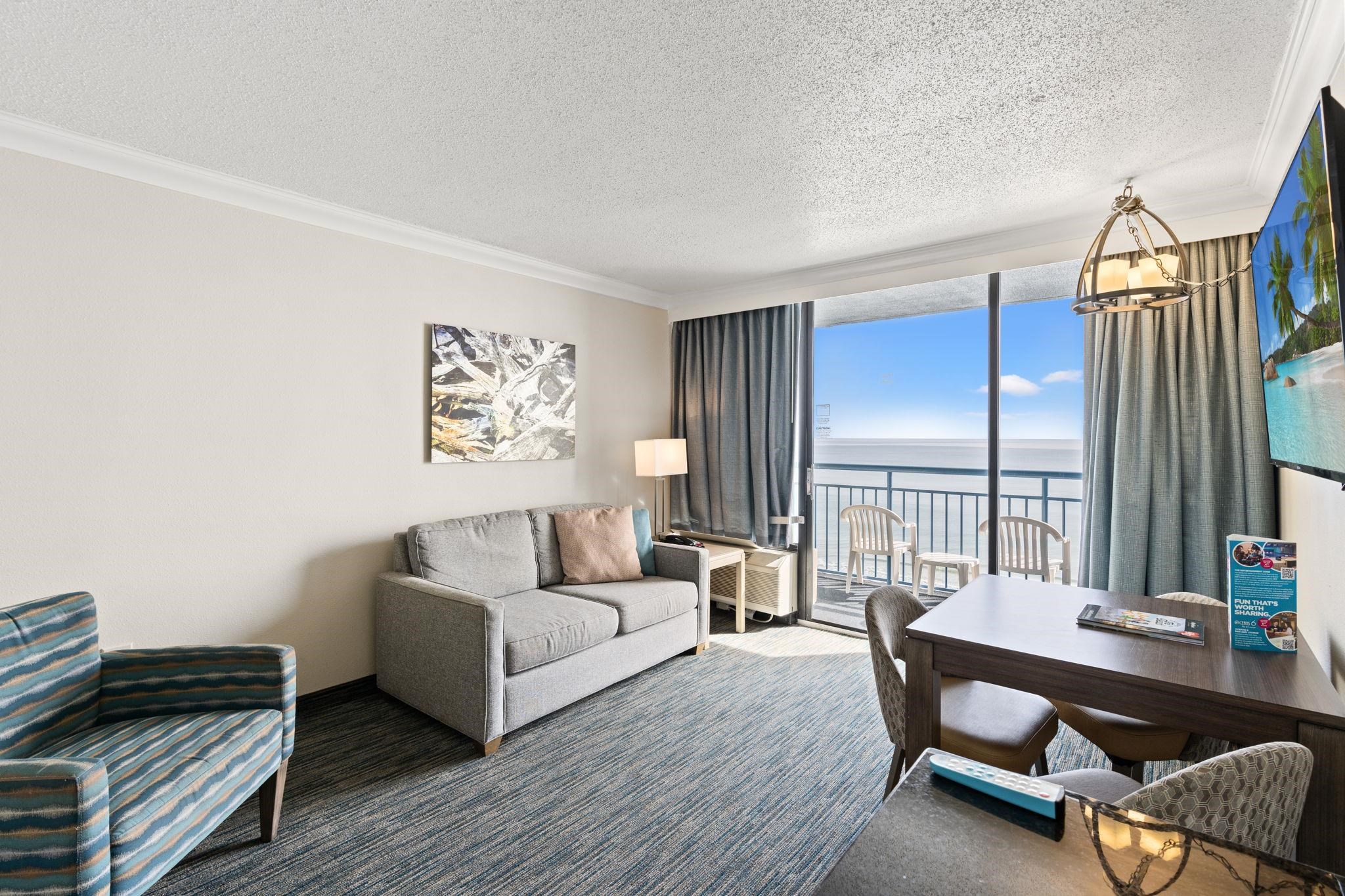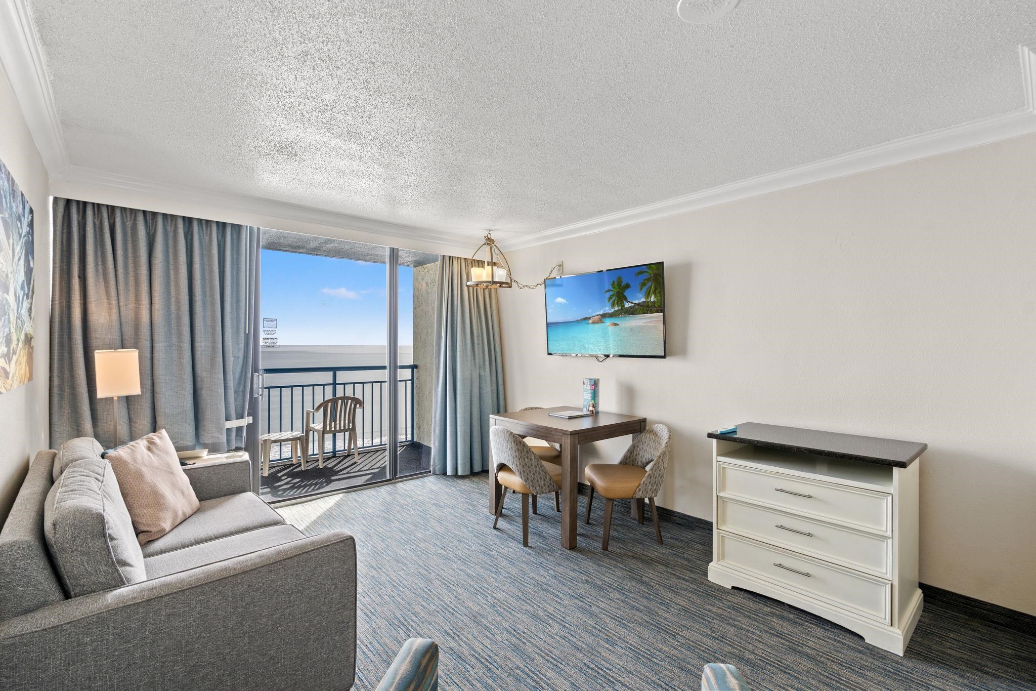 Spectacular 1 Bedroom ocean front condo on the 9th floor at Coral Beach. This unit is direct ocean front and is sold fully furnished. The resort's amenities are second to none. With ocean front indoor and outdoor pools, lazy river, hot tubs and the unique bonus of an on-site bowling alley! Coffee shop and Ice Cream all onsite. Located just minutes from The Boardwalk, Market Common, Broadway at the Beach, and an array of restaurants, shopping, and entertainment options.