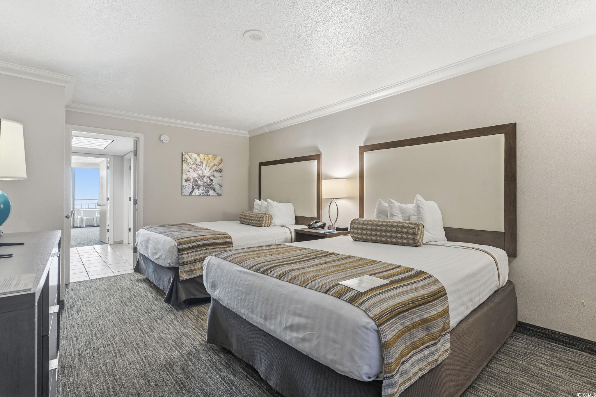 Wake up to breathtaking sunrises from your private oceanfront balcony in this charming 1-bedroom condo-Unit 324 at Coral Beach Resort. This direct oceanfront retreat features an inviting living and dining area with floor-to-ceiling windows that seamlessly blend indoor comfort with sweeping coastal views. Step onto the balcony to take in the sparkling ocean, pool, and sundeck below. Perfect for hosting family or guests, the spacious bedroom offers two queen beds, while the living room includes a convenient Murphy bed for additional sleeping space. The updated kitchen is equipped with Shaker-style cabinets, granite countertops, and full-size appliances, making meal prep effortless. Coral Beach Resort provides an unbeatable lineup of amenities, including an oceanfront pool, spa, sundeck, water park, and kiddie pool, along with a bowling alley, arcade, fitness center, Coral Bean Café, Bar & Lounge, and an on-site gift shop. Ideally located just a short walk from the Myrtle Beach Boardwalk and SkyWheel, you'll be close to top-rated dining, shopping, entertainment, and attractions. Whether you're searching for a primary residence, vacation escape, or proven investment opportunity, this oceanfront gem has it all. Don't miss your chance to own a piece of paradise!