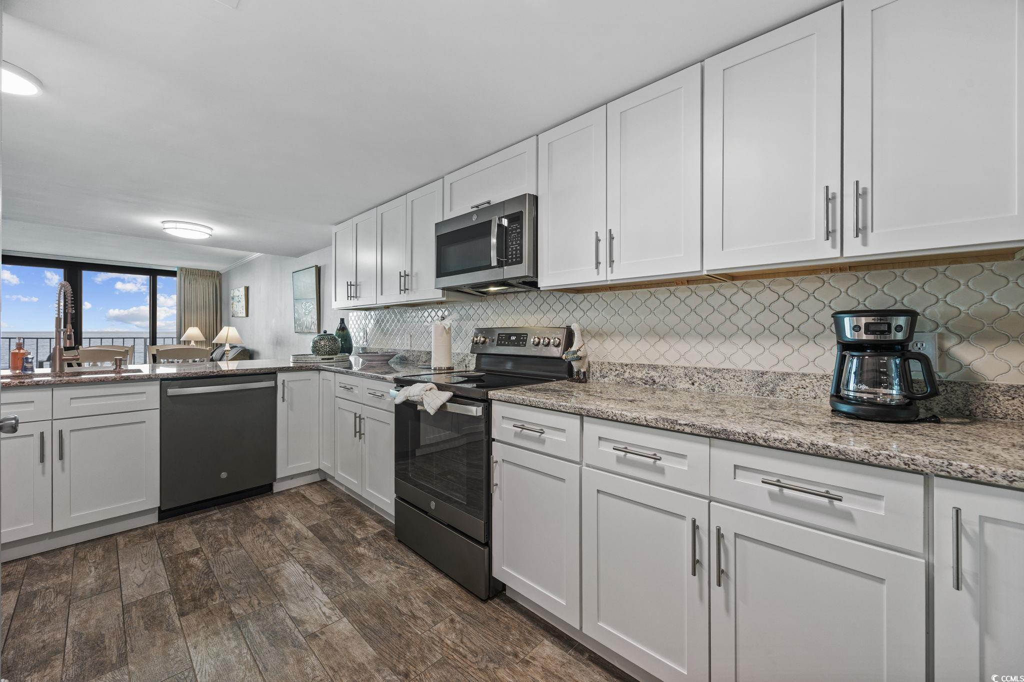 This stunning 2 bedroom, 2 bathroom condo at Horizon East in Garden City Beach, offers the ultimate turn-key oceanfront experience. Step inside this fully updated and upgraded retreat where you'll find beautiful views, an open floor plan, and an abundance of natural light. The heart of the home, the kitchen, boasts new countertops and sleek stainless steel appliances, both bathrooms have been refreshed with new vanities, and the primary suite is a true sanctuary with a modern walk-in shower, while the second bath offers a convenient shower/tub combo. You'll wake up to direct ocean views from the primary bedroom and can enjoy the coastal breeze from your large, private oceanfront balcony. Being sold fully furnished, this condo is ready for immediate enjoyment, making it an ideal personal getaway or a high-demand rental investment!
