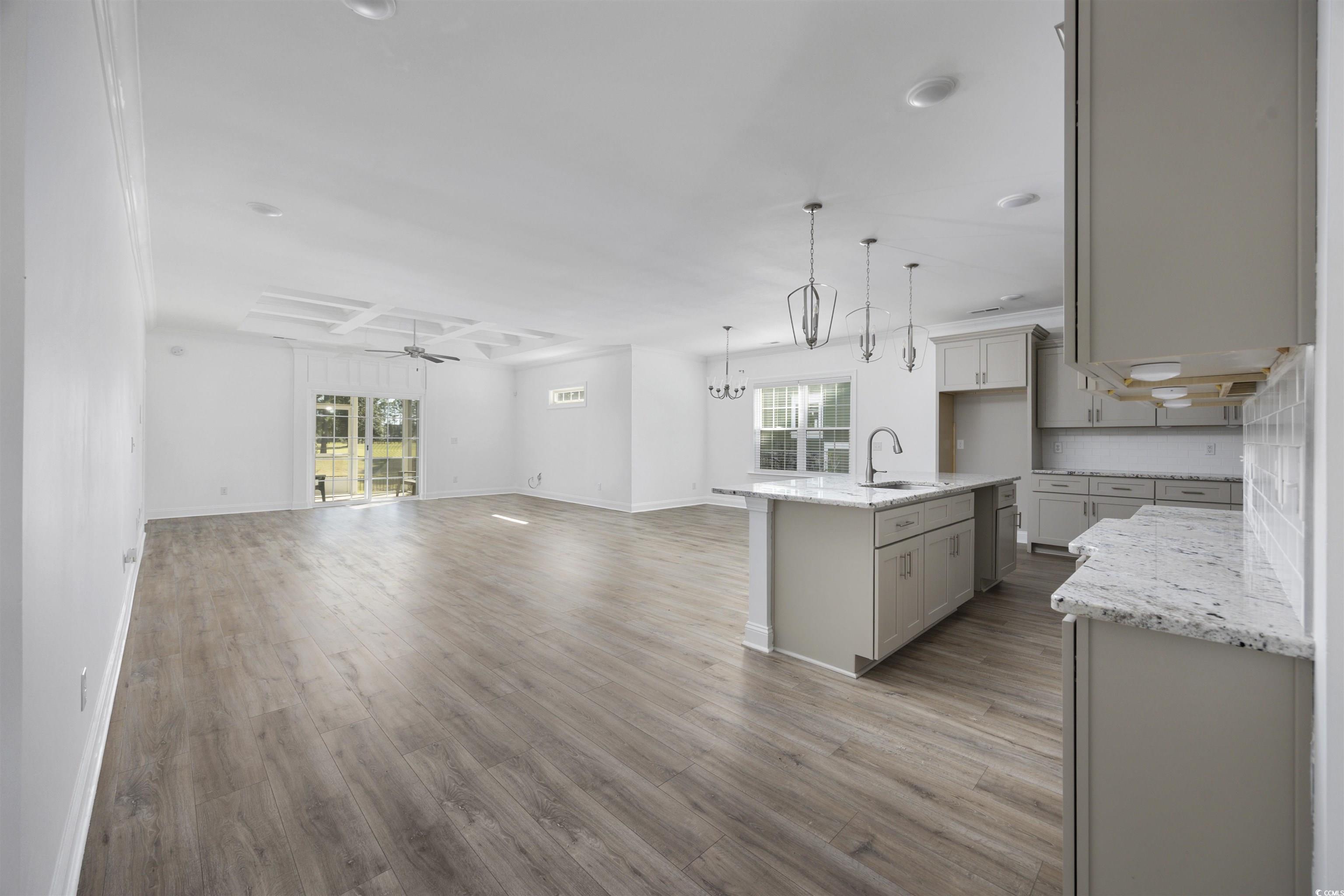 Enjoy custom home living and golf course views in this 3-bedroom 2-bath home in the prestigious Wild Wing Plantation Community! You'll step into an open-concept living space that is designed for seamless entertaining with stunning laminate flooring, elegant finishes, and natural light throughout. The kitchen features gleaming granite countertops, a generous center island, and a large pantry with plenty of storage. The split bedroom plan allows you to escape to the privacy of your primary suite, complete with a spa-inspired bath, a tiled walk-in shower, and dual vanities. The two additional bedrooms offer your guests plenty of space, storage, and a separate bathroom. You can enjoy your morning coffee on the screened porch or host a barbecue on the patio in your private, beautifully landscaped, and fenced in backyard. The serene views of the water and the 1st hole on the Wild Wing golf course is truly stunning! Storage is also no issue with an oversized 2-car garage with dedicated golf cart parking. The Wild Wing Plantation community also makes your daily life feel like resort life, with access to the pools, clubhouse, fitness center, tennis courts and Golf Course! You are also conveniently located close to all that Myrtle Beach and Downtown Conway have to offer. This home truly has it all!