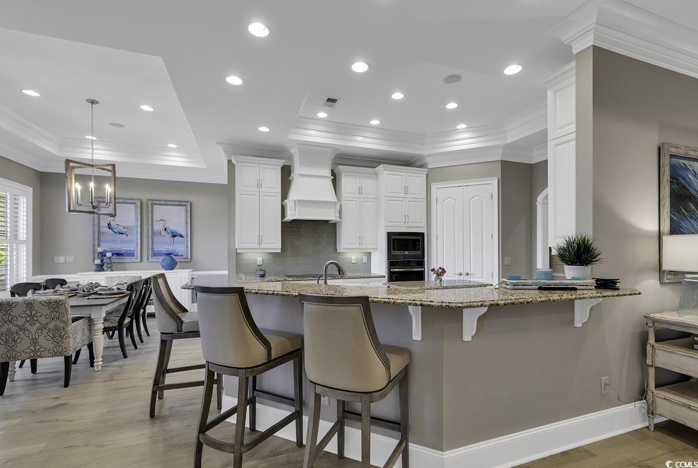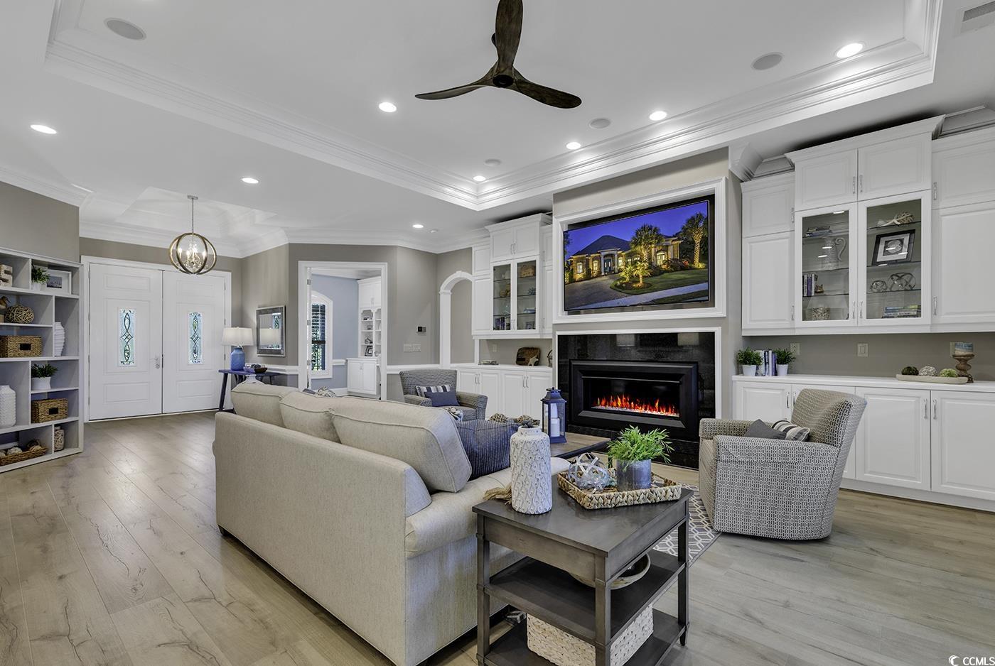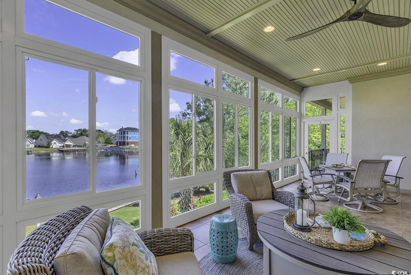 Impressive Custom Home. Welcome to your dream home in the highly desirable Surf Estates of North Myrtle Beach. This stunning custom-built residence offers exceptional craftsmanship, thoughtful design, and a serene lakefront setting. Step into a spacious open-concept family room with expansive views of the lake, perfect for relaxing or entertaining. The adjacent Carolina room invites you to enjoy gentle afternoon breezes and abundant natural light year-round. The beautifully appointed kitchen features premium finishes and flows seamlessly into the family room and large dining area—ideal for gatherings both casual and formal. The main level includes a luxurious primary suite, plus a second master suite for added flexibility. A private office on the main floor provides the perfect space for working from home. Throughout the home, you’ll find gorgeous hardwood floors and classic plantation shutters that add timeless elegance. The lower level offers a generous recreation room, a dedicated craft room, expansive storage, and a spacious guest bedroom and bath with direct backyard access and a separate living area—ideal for multigenerational living or long-term guests. Set in a peaceful and private location, this home truly has it all—space, style, and sought-after amenities—all just minutes from the beach, golf, shopping and dining.