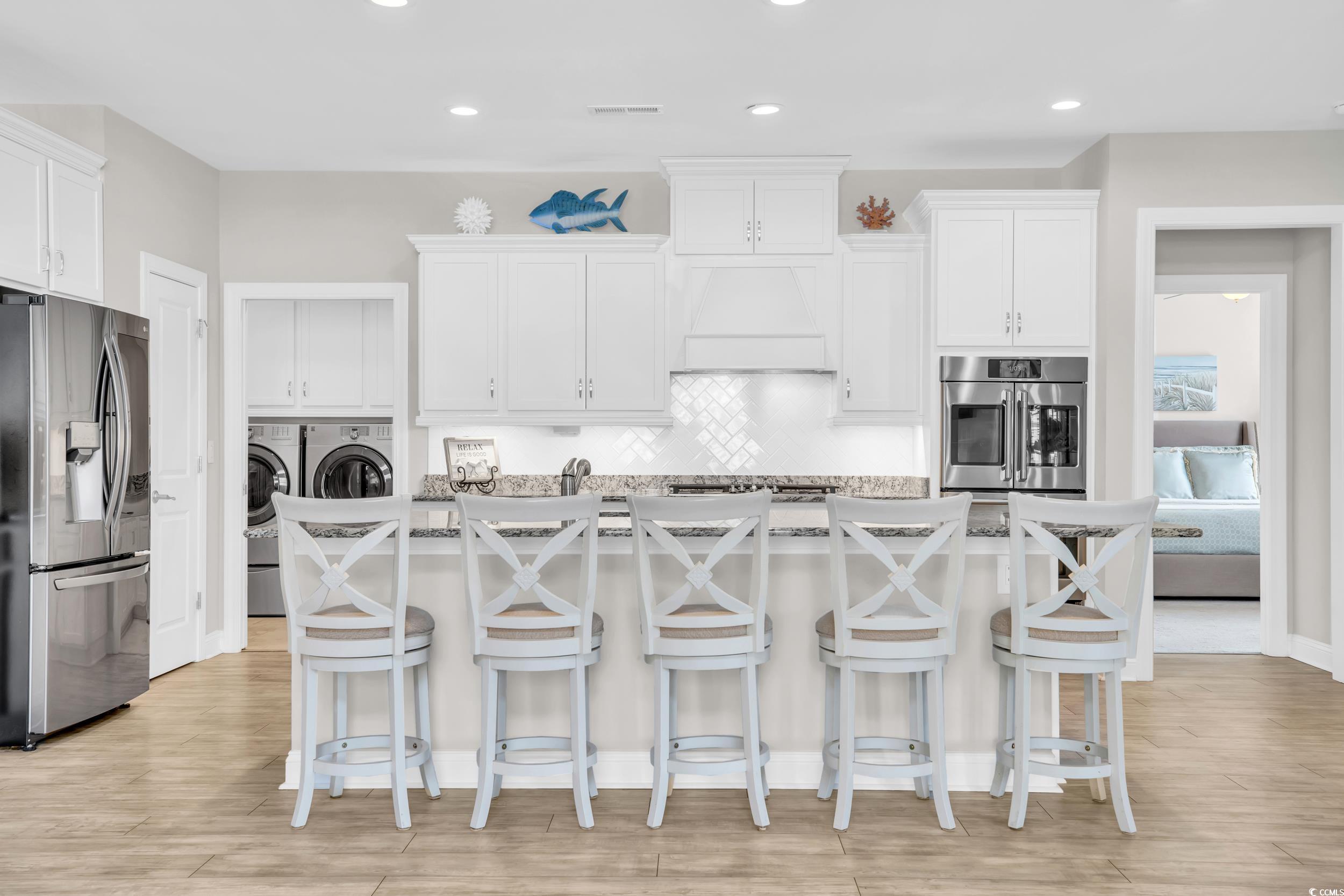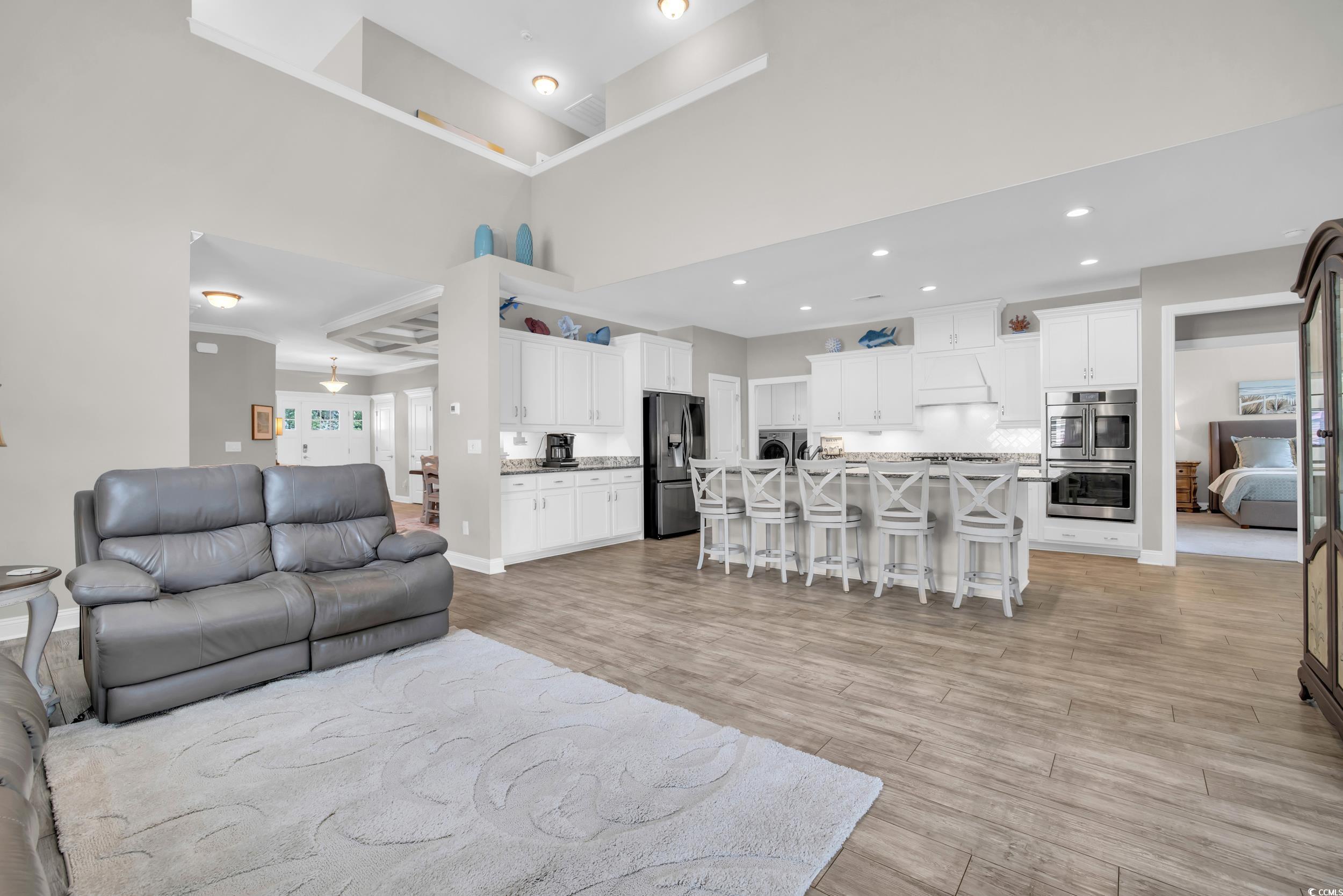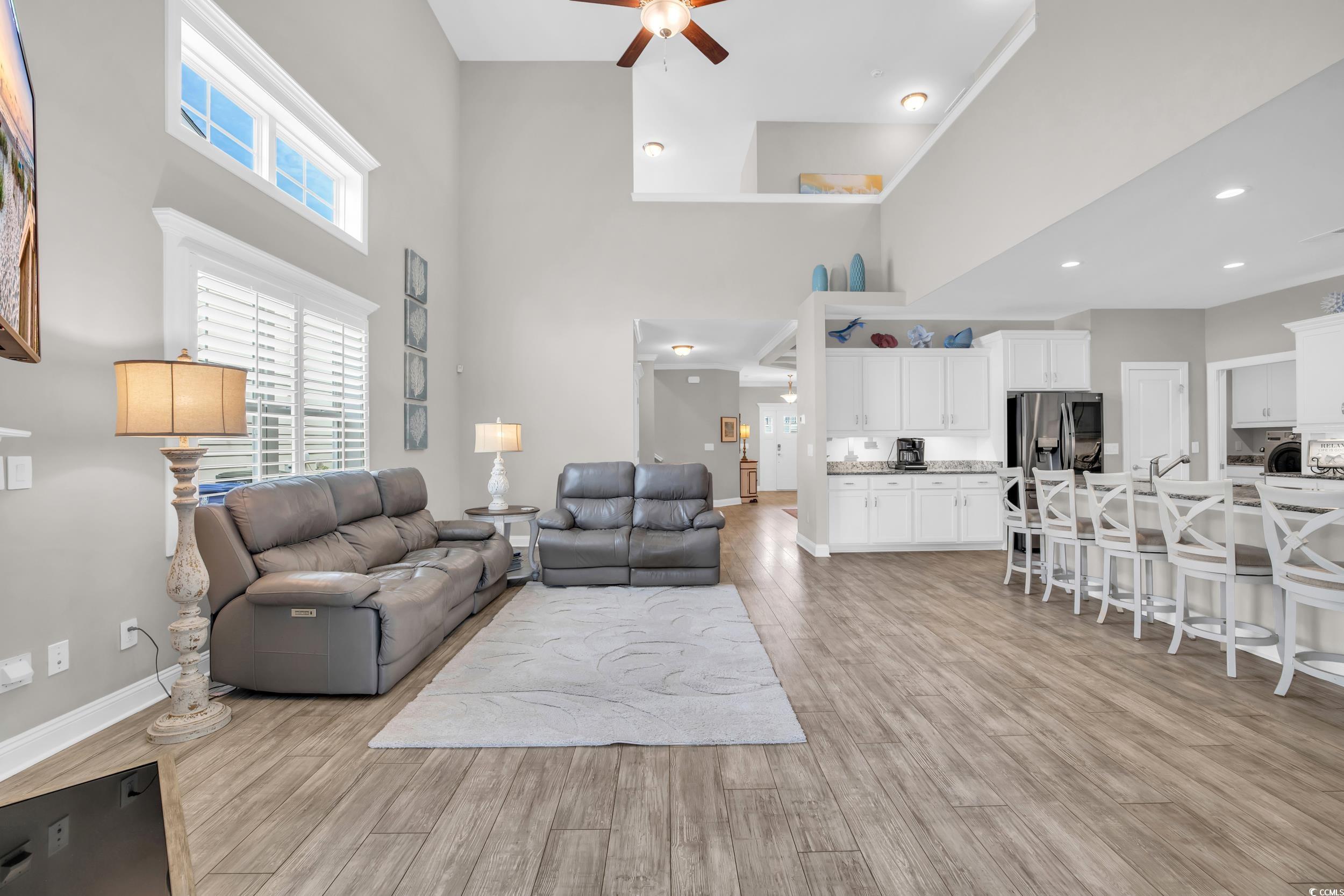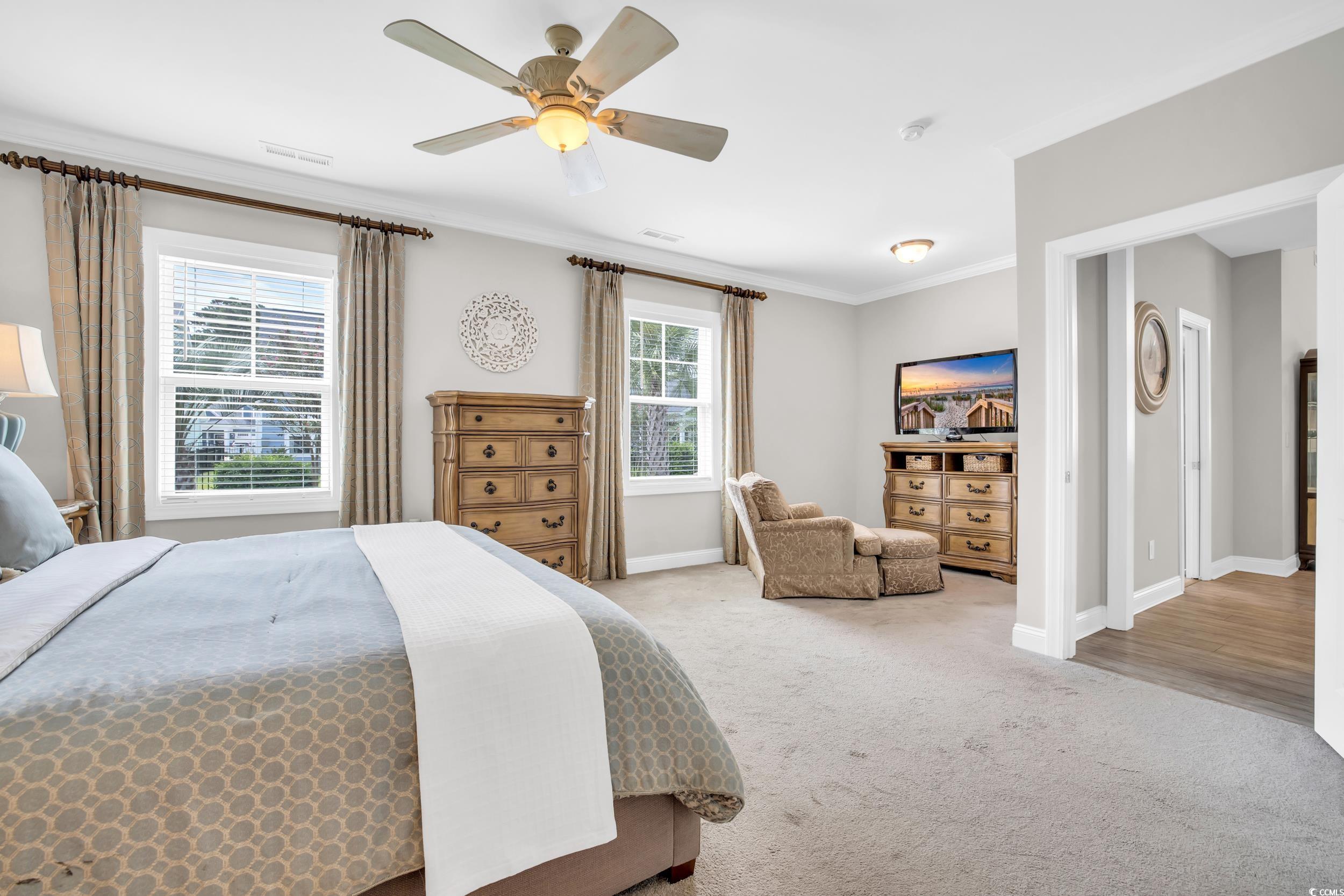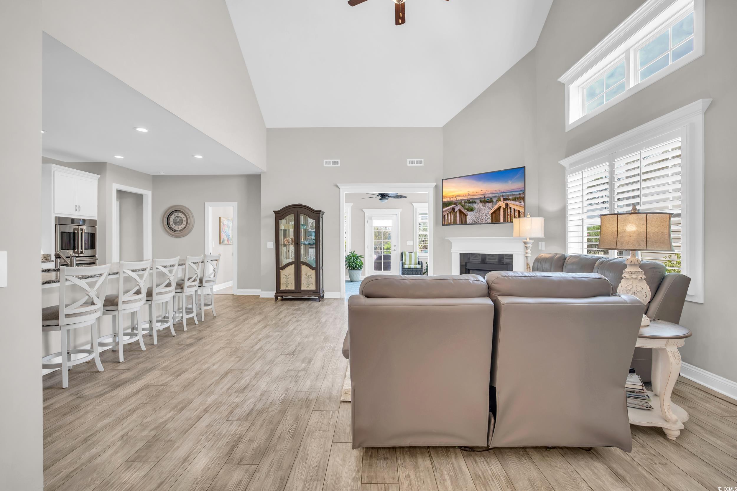 Discover this stunning 1.5-story craftsman-style home, thoughtfully designed for comfort, elegance, and functionality. Upon entry, you are welcomed by a spacious foyer adorned with wide-plank luxury vinyl flooring, setting an inviting tone that flows throughout the main living areas. The formal dining room features an elegant, coffered ceiling, perfect for memorable meals and entertaining guests. Step into the family room and enjoy the warmth of a cozy fireplace and a dramatic cathedral ceiling that enhances the sense of openness and space. Plantation shutters on the main floor. The gourmet kitchen is a chef’s dream, boasting a large center island and multiple bar countertops finished in beautiful granite. Accentuated by a stylish tile backsplash, this kitchen is equipped with stainless steel gas stove, double ovens, and a generous walk-in pantry, ensuring all your culinary needs are met with ease and sophistication. French cafe style wall oven door. Built in microwave drawer. Under Counter Lighting in the kitchen. Designed for everyday convenience, the main level offers everything you require for seamless living. There are two bedrooms conveniently located downstairs, including an expansive primary suite complete with a dedicated sitting area for relaxation and unwinding. Custom California closet in the primary. The secondary bedroom on this floor is ideal for guests or family, featuring its own private en suite bath for maximum comfort and privacy. A versatile Carolina flex room provides a tranquil retreat where you can enjoy peaceful views of the outdoors while experiencing the comfort of indoor living—making it an instant favorite space for work, leisure, or creative pursuits. Additional thoughtful features on the main level include a guest half-bath and a large laundry room outfitted with custom cabinetry for organization and efficiency and a stainless steel sink. Upstairs, a spacious loft awaits, perfect for a home office, media room, or play area. Two sizeable guest bedrooms and an additional bonus room (which can serve as a fifth bedroom or multi-purpose space) offer flexibility for your lifestyle needs. A third full bathroom on this level easily accommodates visitors and family. Two walk in and lighted attics provide the perfect storage for all your holiday decorations and more. Outdoor living is just as impressive, with a generous rear patio ideal for lounging, dining, or hosting gatherings. Gas connection and outside porch is wired for lighting at the top. The fenced backyard provides both privacy and security, complemented by a full irrigation system for effortless lawn maintenance. Modern amenities include a tankless hot water heater for energy efficiency. For vehicle and storage needs, the property boasts a three car garage spaces (2 side by by side plus a tandem third space)—perfect for storing a golf cart, especially in this golf cart-friendly neighborhood. Located in the sought-after Ocean Drive (OD) section of North Myrtle Beach, this residence is just a short walk or bike ride away from the sandy beach. Residents enjoy access to a community pool complete with bath facilities. This is truly a comprehensive package for those seeking comfort, convenience, and vibrancy in their next home. Seize the opportunity to explore this exceptional property—motivated seller is ready to make a deal!