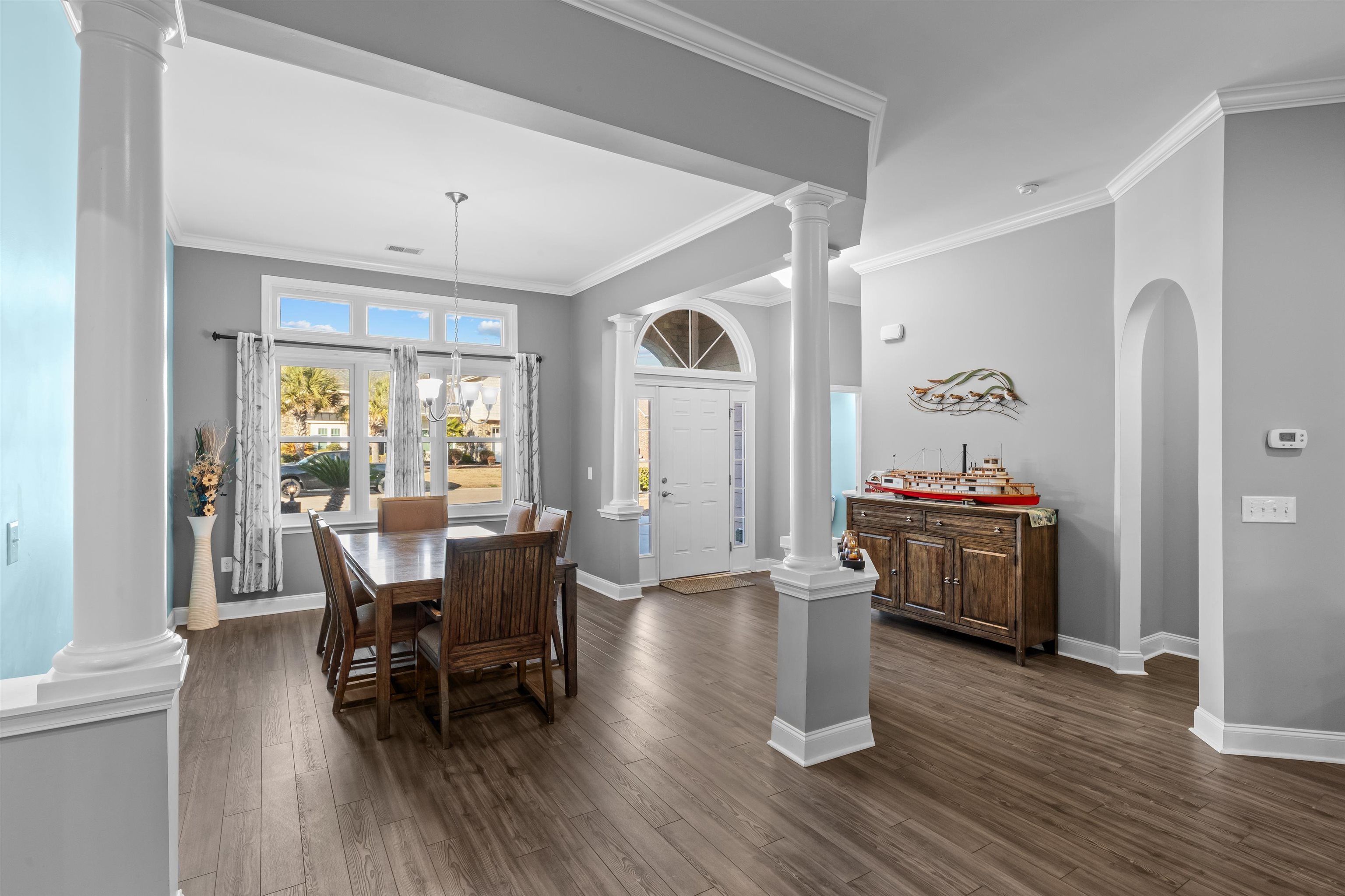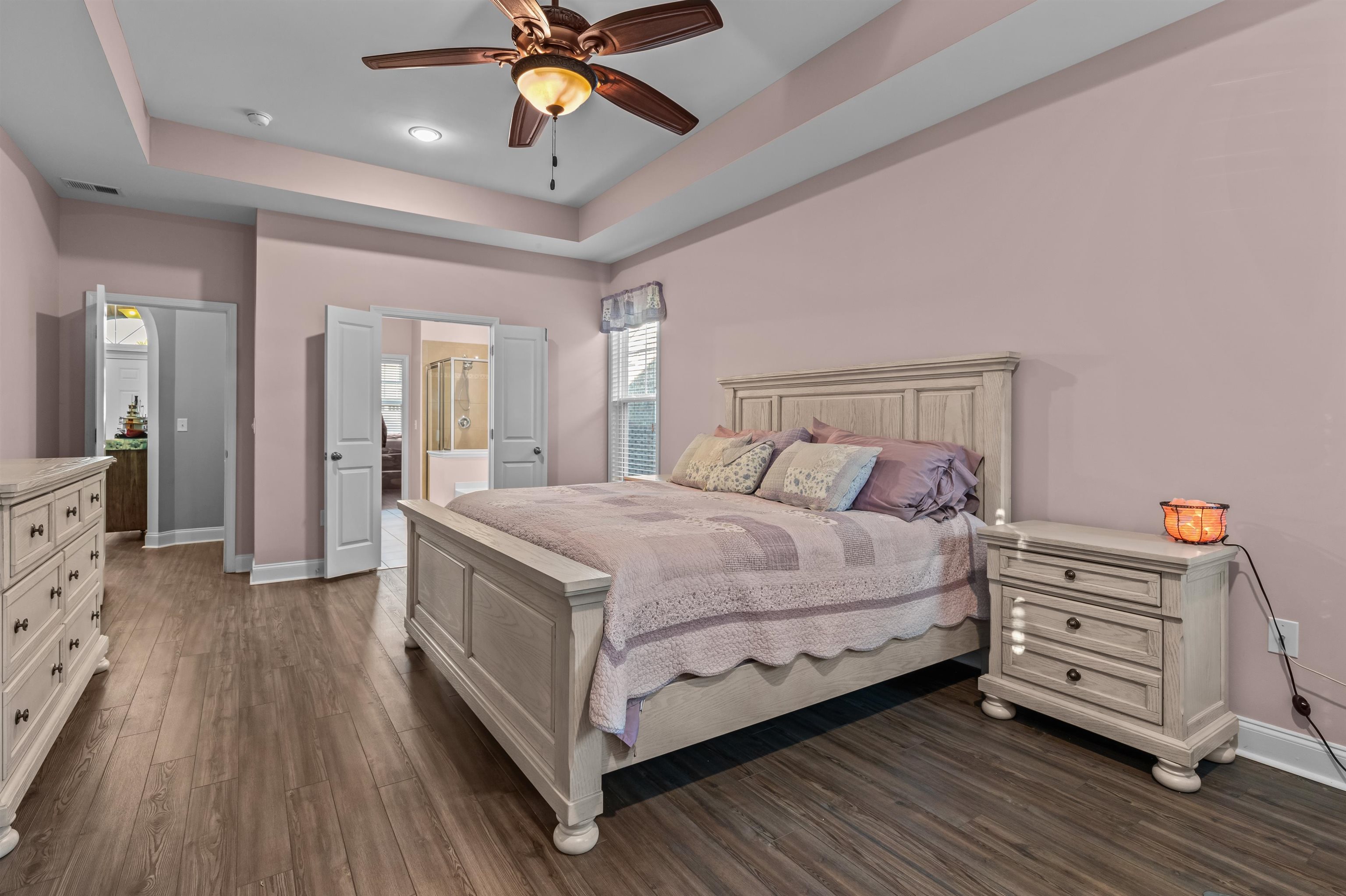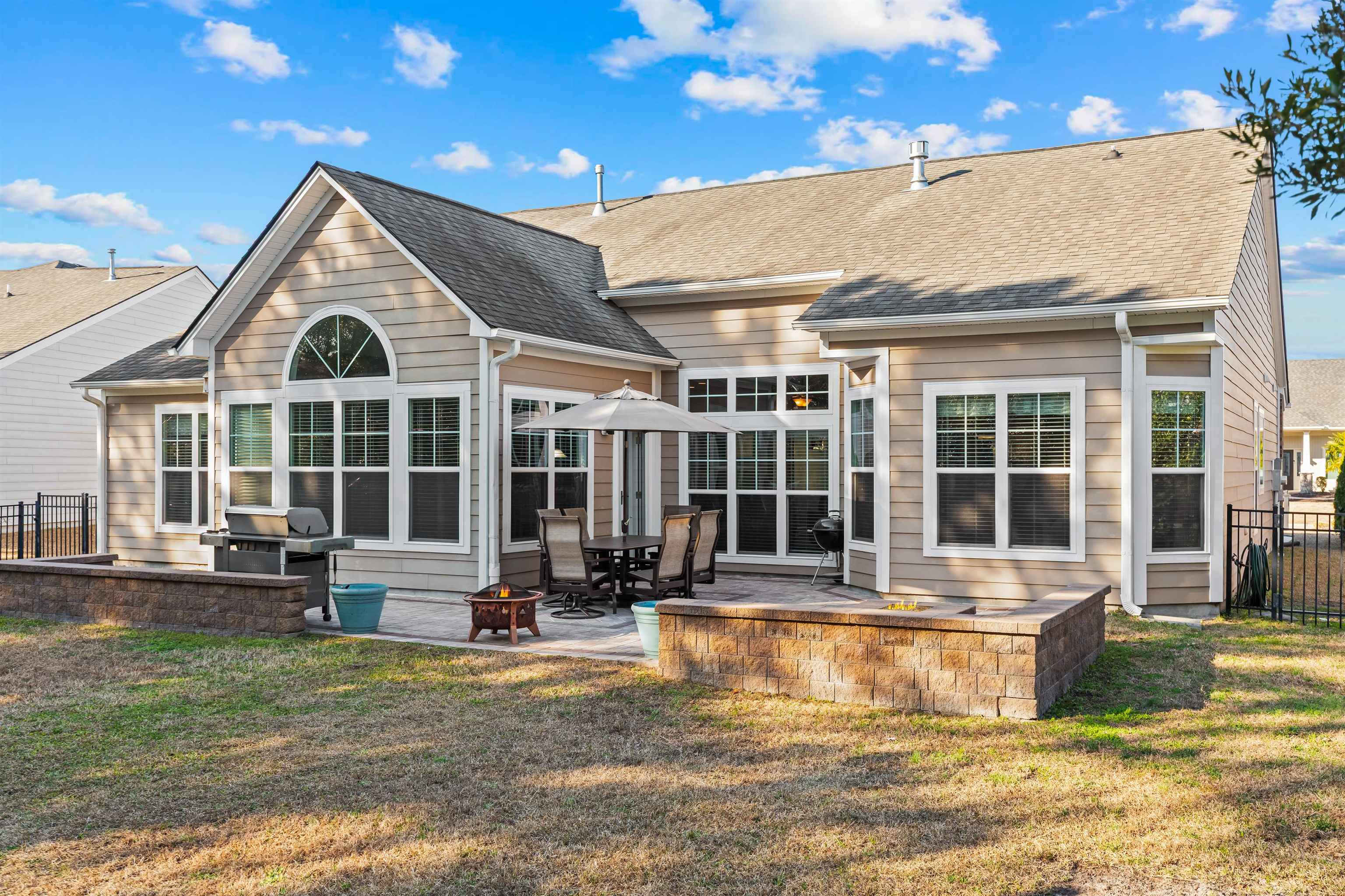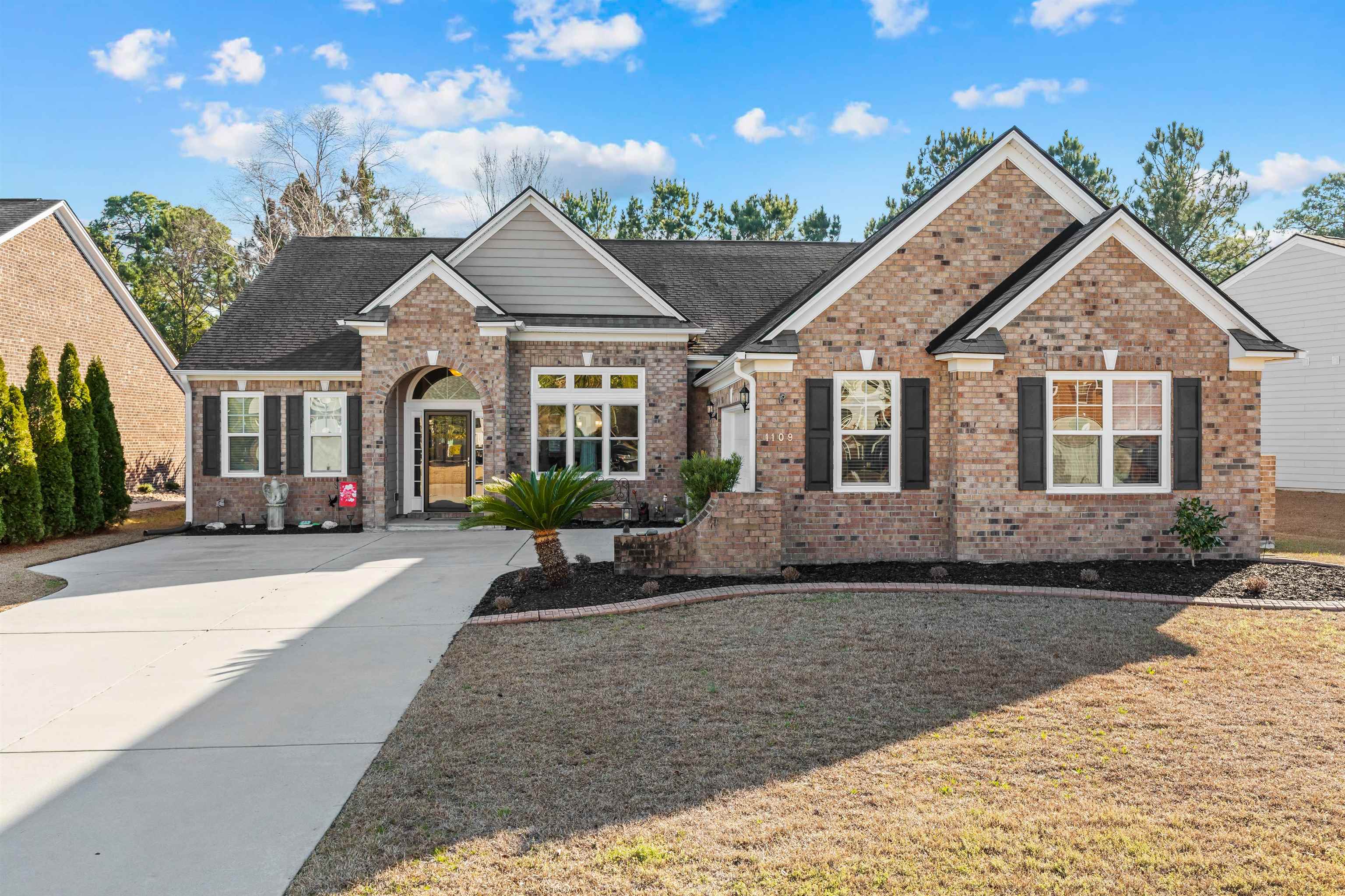 OPEN HOUSE SUN 4/19, 12p-2p. Experience elevated living in the prestigious gated Amherst section of Berkshire Forest, where privacy, natural beauty, and resort-style amenities create an exceptional coastal lifestyle. This meticulously maintained 4-bedroom, 2.5-bath single-story ranch residence offers timeless design, thoughtful upgrades, and an ideal wooded homesite that provides both tranquility and curb appeal. The elegant all-brick front façade, manicured landscaping, and welcoming entry set the tone for what awaits inside. Upon entry, you are immediately greeted by a light-filled interior showcasing soaring 10-foot ceilings throughout the main living areas, expansive windows, and an open-concept layout designed for both comfortable everyday living and effortless entertaining. The spacious great room anchors the home with a cozy gas fireplace and seamless connection to the formal dining area, creating a natural flow perfect for hosting gatherings or relaxing evenings at home. Recent upgrades include beautiful luxury vinyl plank flooring throughout the entire residence, offering a modern aesthetic paired with durability and easy maintenance. The highly desirable split-bedroom floor plan enhances privacy, positioning the guest bedrooms on the opposite side of the home from the owner’s suite. The kitchen is thoughtfully designed with abundant cabinetry, expansive granite countertops, black stainless steel appliances, and a generous breakfast bar ideal for entertaining. A sunlit breakfast nook provides the perfect setting for casual dining while enjoying peaceful wooded views. The owner’s suite is a true retreat, featuring a tray ceiling, spacious sitting area surrounded by windows, and an abundance of natural light. The en-suite bath offers a soaking tub, tiled walk-in shower, dual vanity sinks, and a custom walk-in closet complete with built-in shelving and organization. Adding to the home’s versatility is the impressive cathedral-ceiling sunroom, surrounded by windows and offering endless possibilities as a secondary living space, reading lounge, home office, or entertaining area while seamlessly blending indoor and outdoor living. Step outside to a private backyard oasis where mature wooded surroundings create a serene backdrop. The outdoor living space is truly exceptional, highlighted by a paver patio that spans almost the entire width of the home, featuring custom inlays, a built-in fireplace, and integrated seating — perfect for entertaining, outdoor dining, or peaceful evenings under the Carolina sky. Residents of the Amherst section enjoy exclusive gated access along with an impressive collection of resort-style amenities, including a beautifully appointed clubhouse with full kitchen, fitness center, two sparkling community pools, and a relaxing lazy river. Outdoor recreation abounds with tennis, pickleball, basketball, and bocce ball courts, along with a playground, picnic and grilling areas, and scenic walking trails designed for an active coastal lifestyle. Conveniently located near shopping, dining, golf, and the beach, this exceptional property offers the perfect blend of luxury, comfort, privacy, and lifestyle in one of the area’s most desirable communities. Square footage is deemed reliable, buyer responsible for verification.