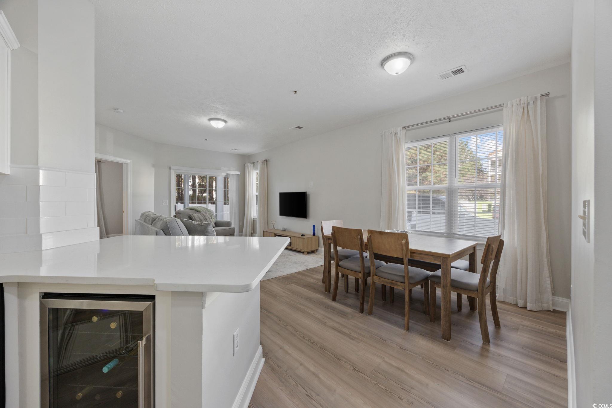 This immaculate, fully renovated, first-floor end unit condo located in the Fountain Pointe community could be the perfect home or investment opportunity for you. The unit boasts a generous floor plan featuring three bedrooms and two full bathrooms, with no detail missed in the stunning, turn-key renovation. As you enter through the foyer, a hallway provides access to two spacious guest bedrooms, a full bathroom, and a laundry closet. Past that, you'll find a comfortable galley-style kitchen that offers extra seating at the breakfast bar and flows effortlessly into the main living space and dining area for open concept entertaining. The living room features direct access to a private screened-in patio, ensuring an abundance of natural light and a peaceful outdoor retreat. Tucked away for privacy off the living area is the expansive primary bedroom suite, complete with its own walk in closet and en-suite bath. Fountain Point has a low HOA fee that covers common electric, water & sewer, trash pickup, landscaping, pest control, common maintenance/repairs, master cable antenna and a community green space and gazebo that is perfect for pets and enjoying the beautifully maintained community. It is also located in a prime location that allows you to easily access all that Grand Strand has to offer. This is a rare opportunity to own a maintenance-free, fully updated coastal home or long term rental property! Book your showing today as you will not be dissapointed!