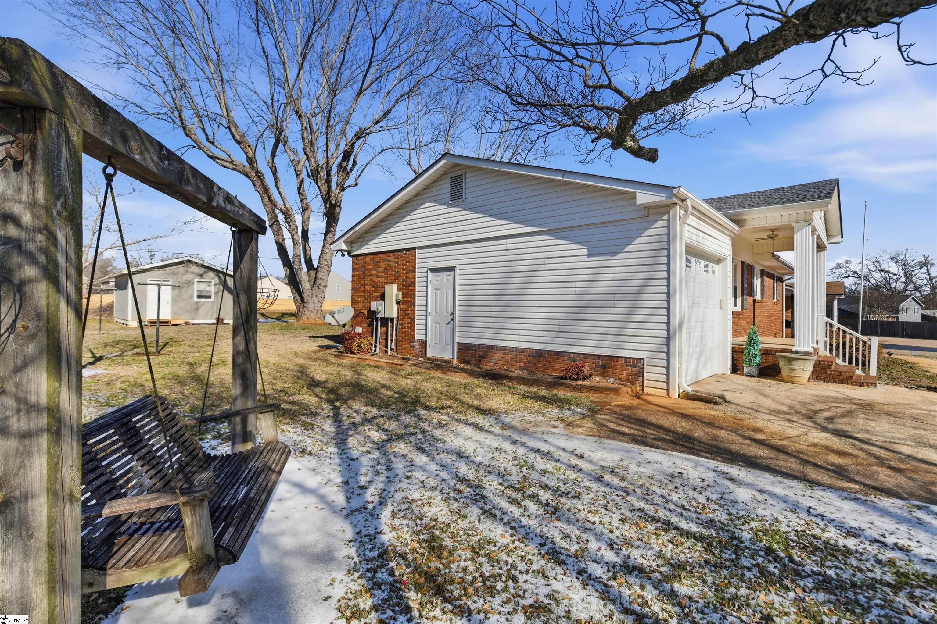 Cozy, open-concept ranch with major upgrades already done — in a prime Boiling Springs location! This open layout is filled with natural light and features newer Pergo flooring throughout the main living areas and bedrooms, along with fresh neutral paint and crisp white trim. The big-ticket improvements are complete: new roof - 2025, HVAC/heat pump and double pane windows just 2 years old. Providing energy efficiency and long-term peace of mind. The master bedroom en-suite includes a bathroom and large walk in closet. A second bedroom has built in shelving units and a walk in closet. All appliances convey, including a 1-year-old refrigerator and washer and dryer, making this home truly move-in ready! Step outside to enjoy a newer back deck, a level backyard with a powered and insulated shed ready for extra storage or work space. The front yard features a flagpole, adding classic curb appeal. Enjoy relaxing on the covered front porch with a ceiling fan or the garden swing bench! An in-ground sprinkler system helps keep the property looking its best. This home even has a propane backup heater assures warmth during possible power outages! The one-car attached garage adds everyday convenience. Located just off Boiling Springs Road, you’re minutes from shopping, dining, and daily essentials in an established neighborhood. A well kept home that combines reliability, comfort, and location! About 1 mile from both Boiling Springs Elementary and Boiling Springs High School. Don't miss your chance, book your showing today!